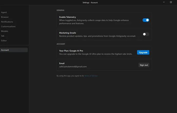 - Sign out of Antigravity.