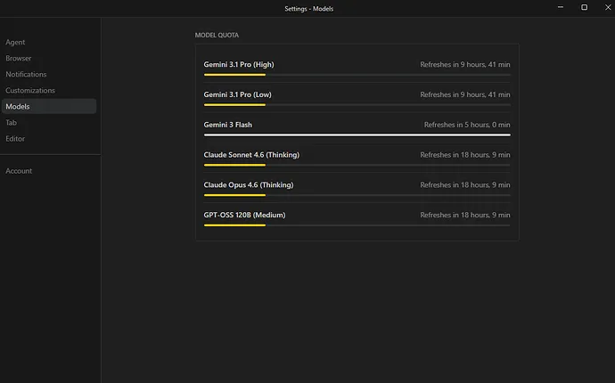 - • Switch model family or tier temporarily If Claude or GPT‑OSS shows long timers, switch to Gemini 3.1 Pro or Gemini 3 Flash to continue work. Often only one family is capped.