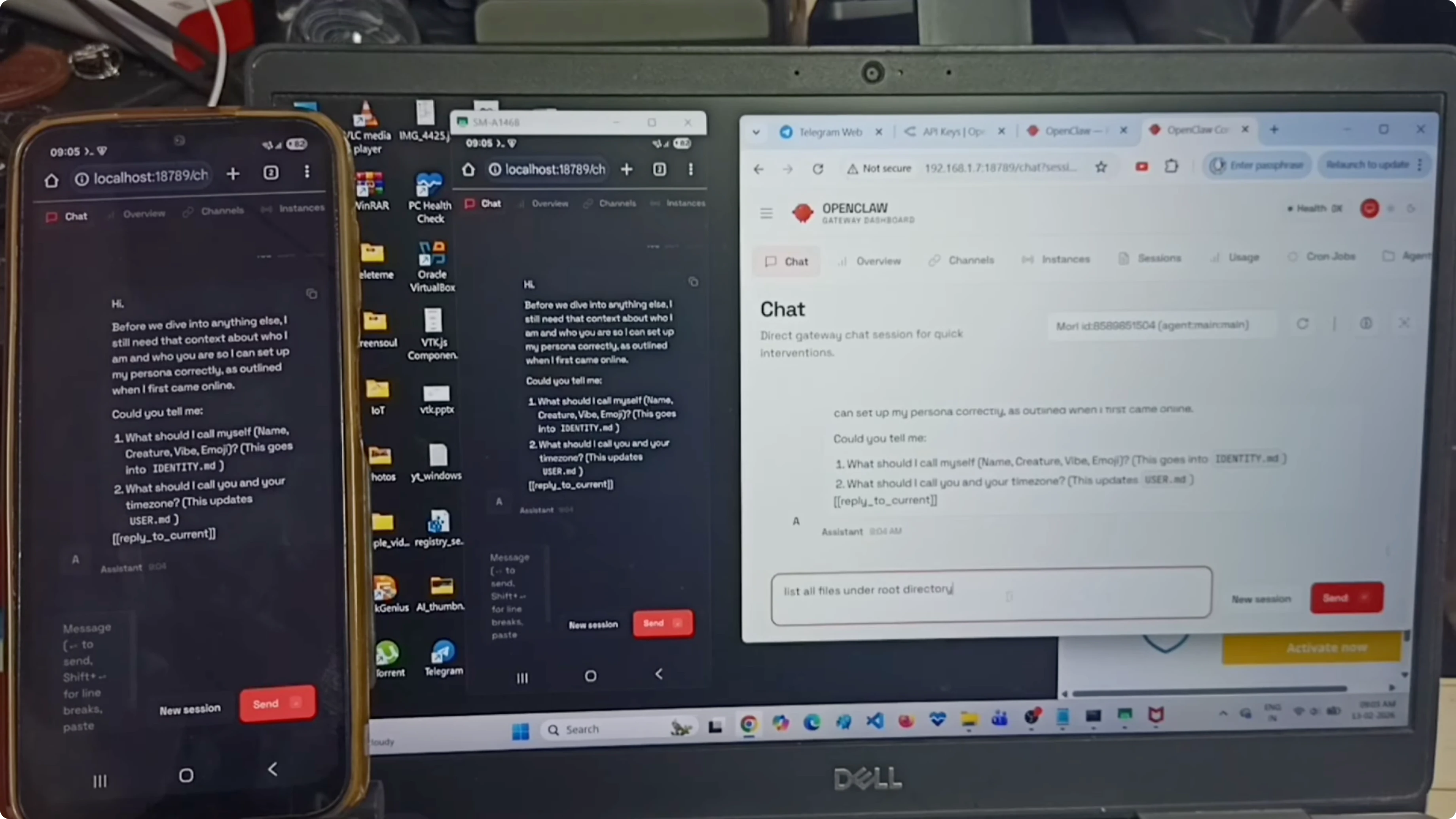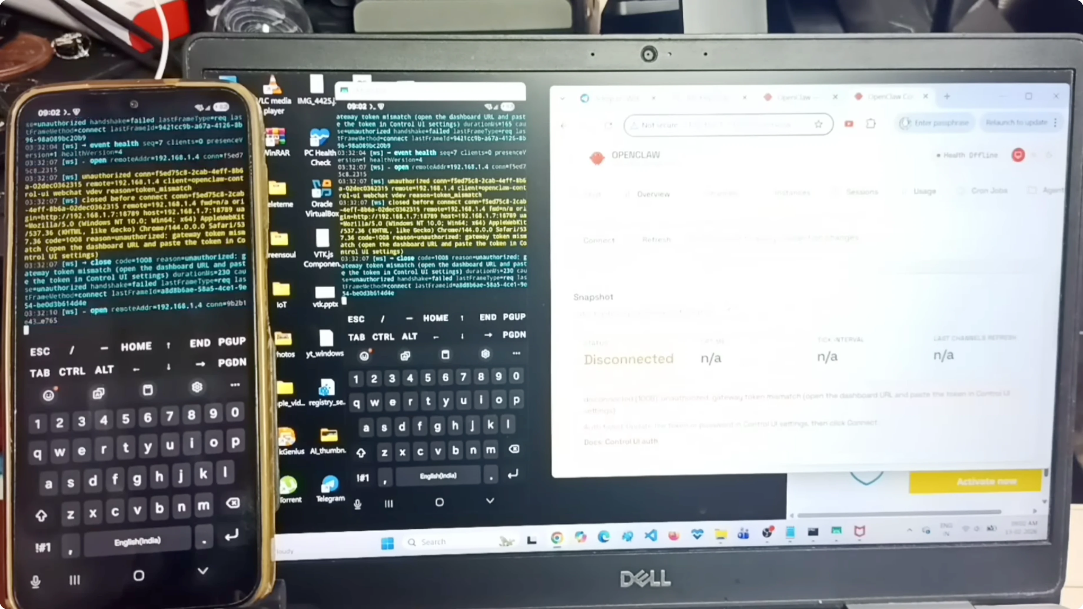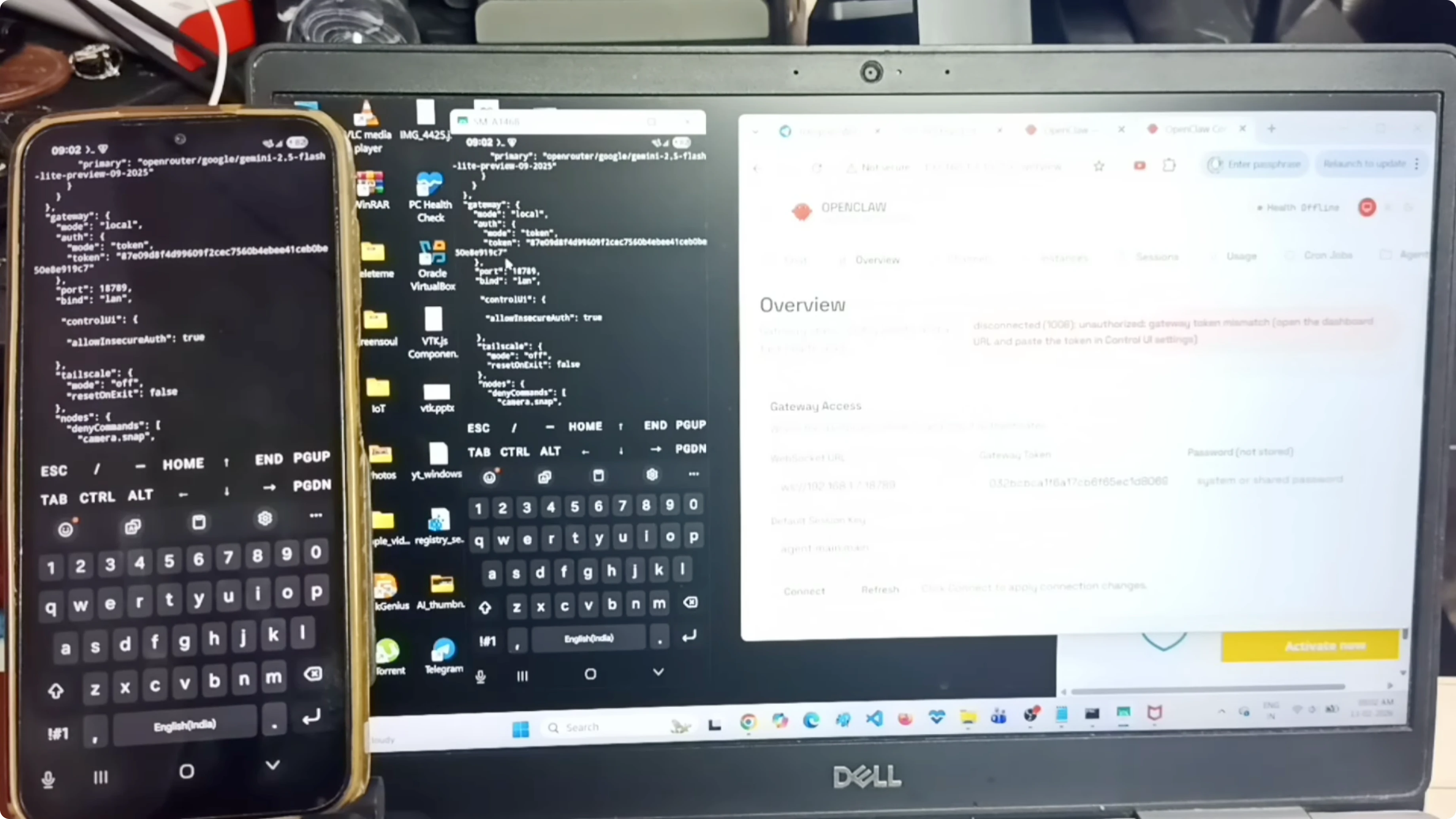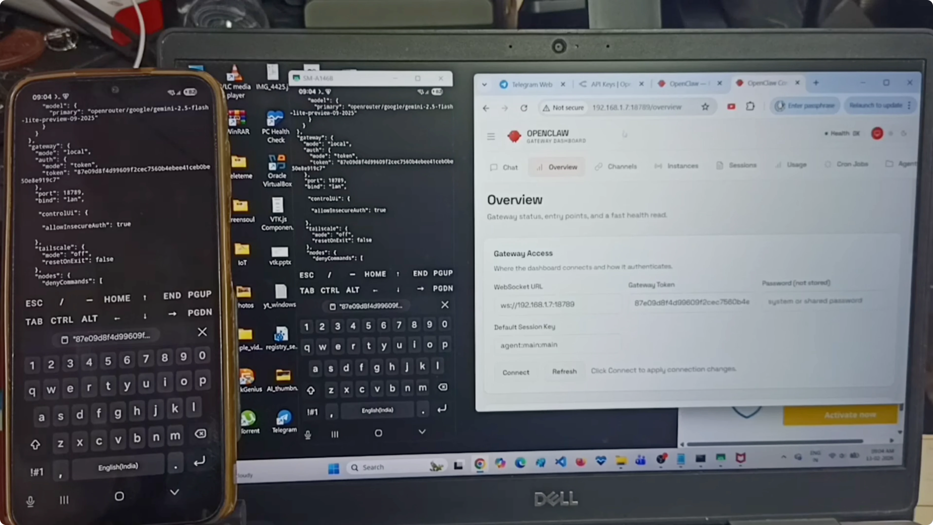 Now it is connected, and I can access the OpenClaw gateway dashboard from the Windows laptop. The gateway dashboard is running on the Android phone but accessible on the laptop.