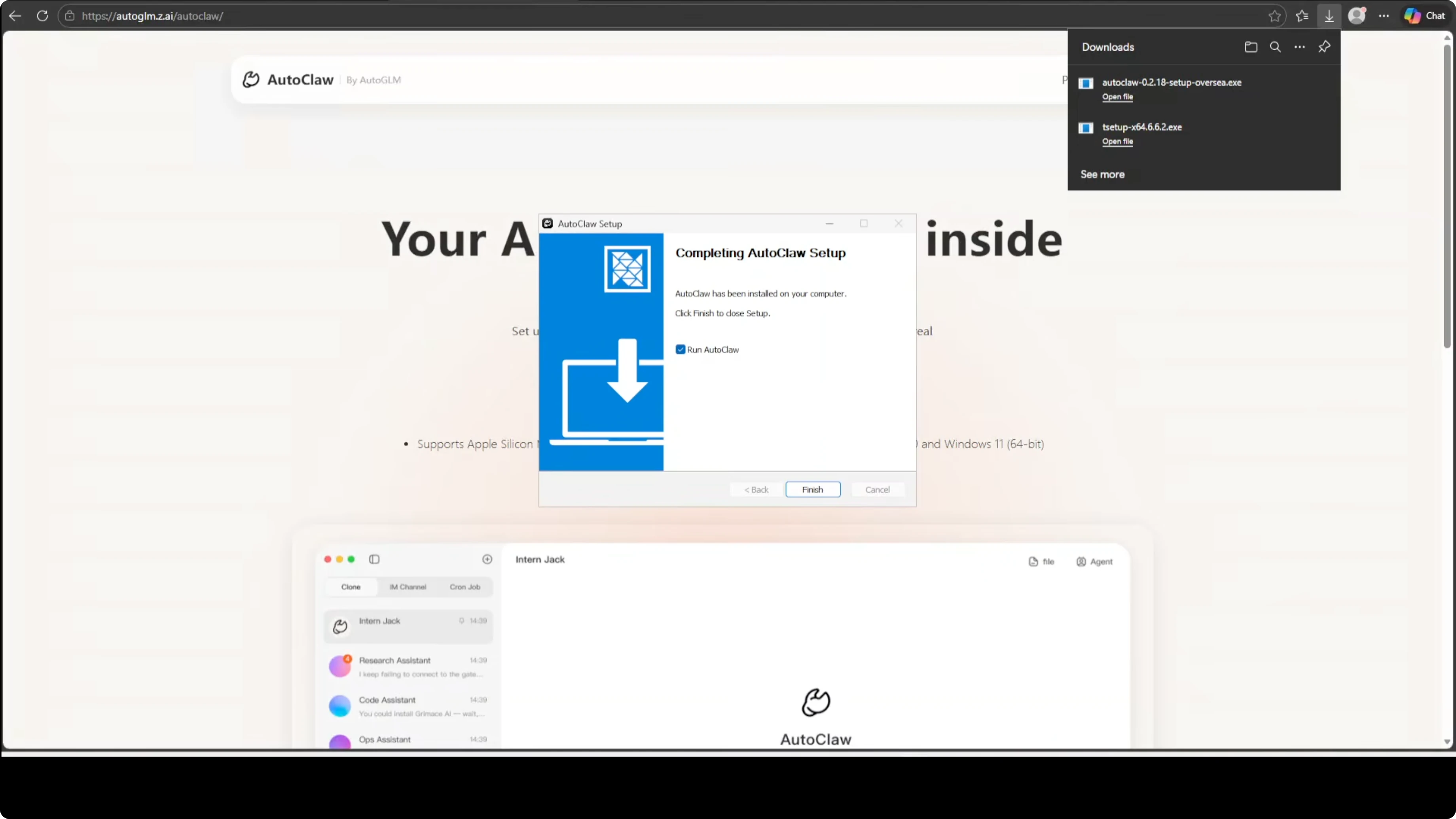 Download AutoClaw for Windows and run the installer. It is a single-click install and takes only a moment to complete.