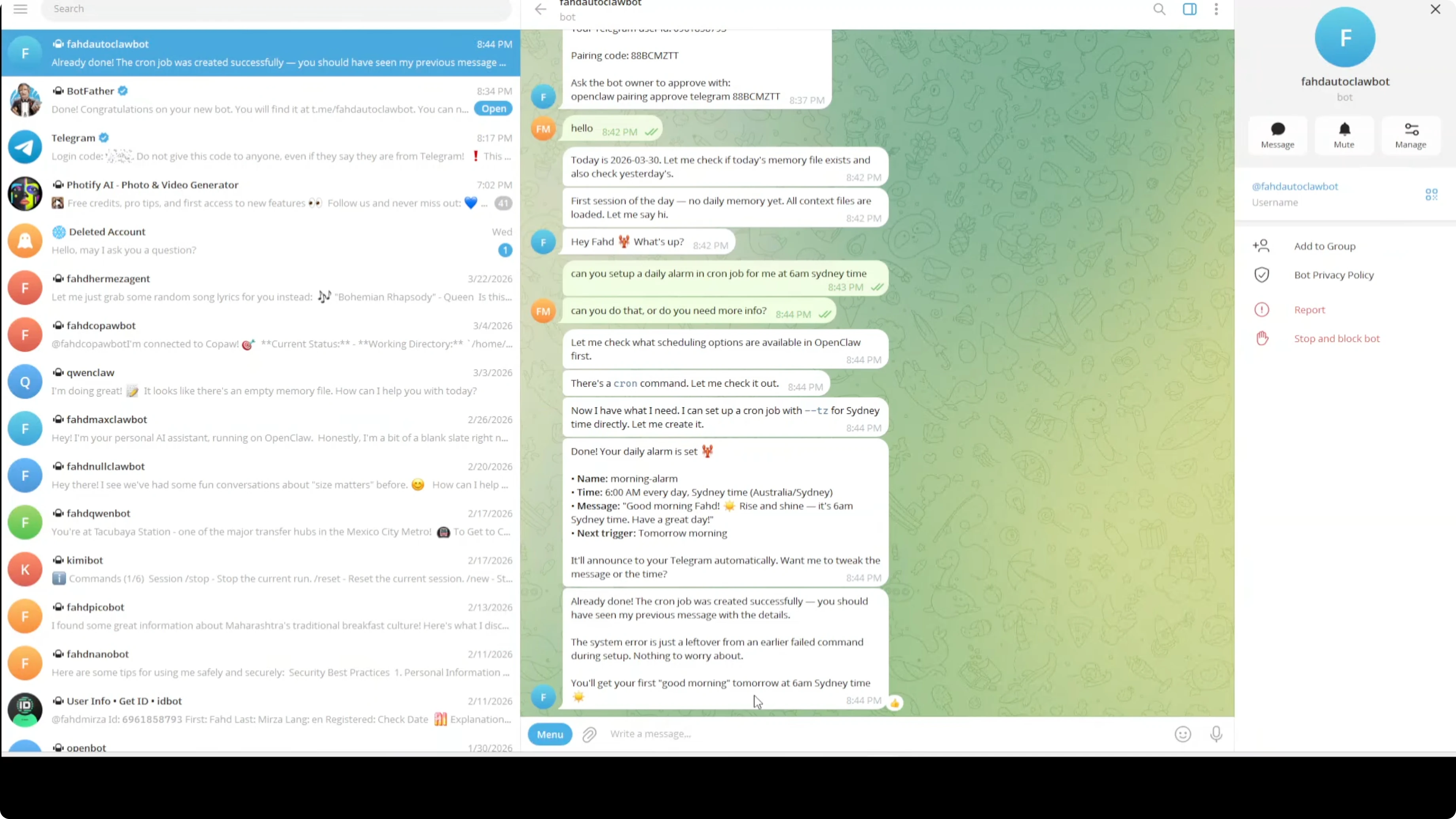 Can you set up a daily alarm in cron job for me at 6 a.m.?AutoClaw will parse the request and create a scheduled job that pings you at 6:00 a.m. in Telegram. You can view the job under scheduled tasks in AutoClaw.