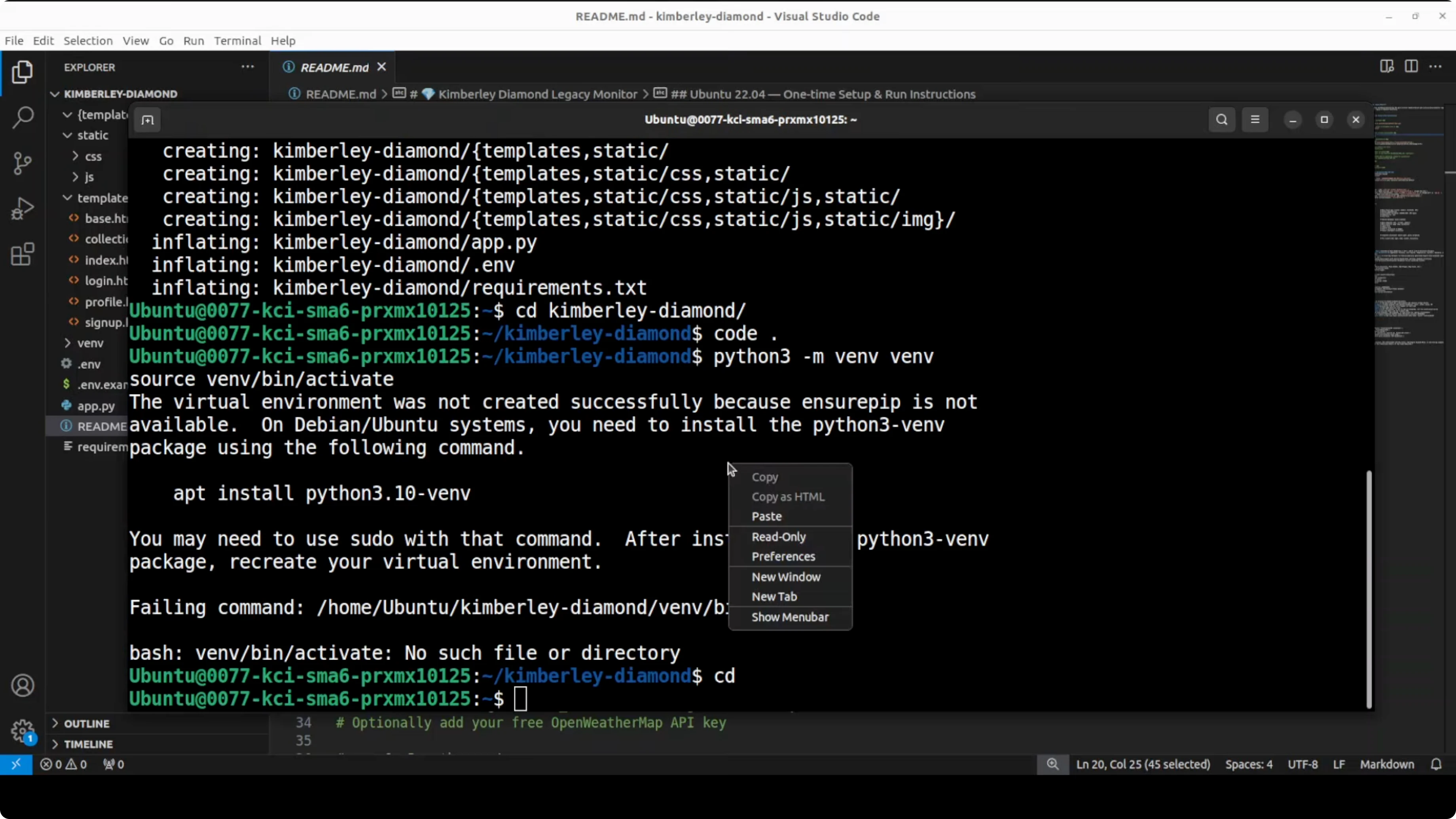 - I initially hit an issue because the venv package wasn't installed on my system.