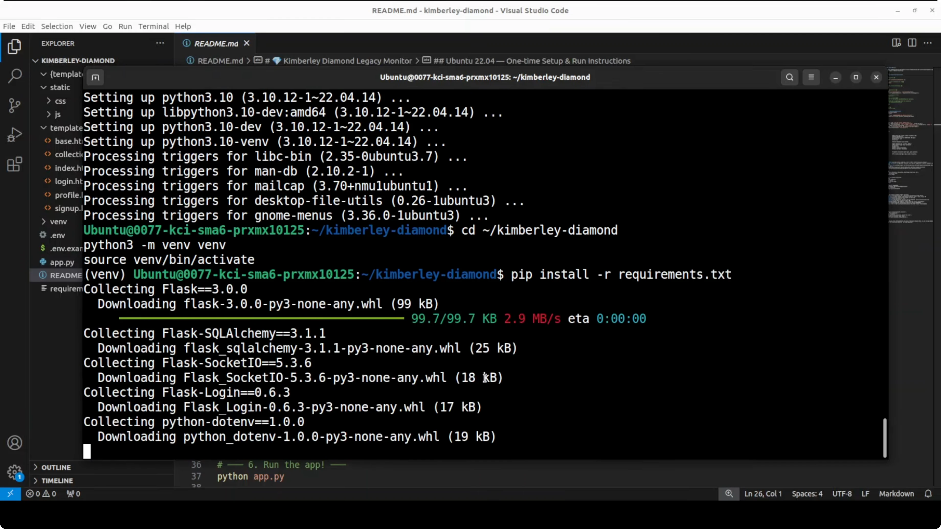 I copied the generated archive to my Ubuntu machine and unzipped it. Here is how the setup went.