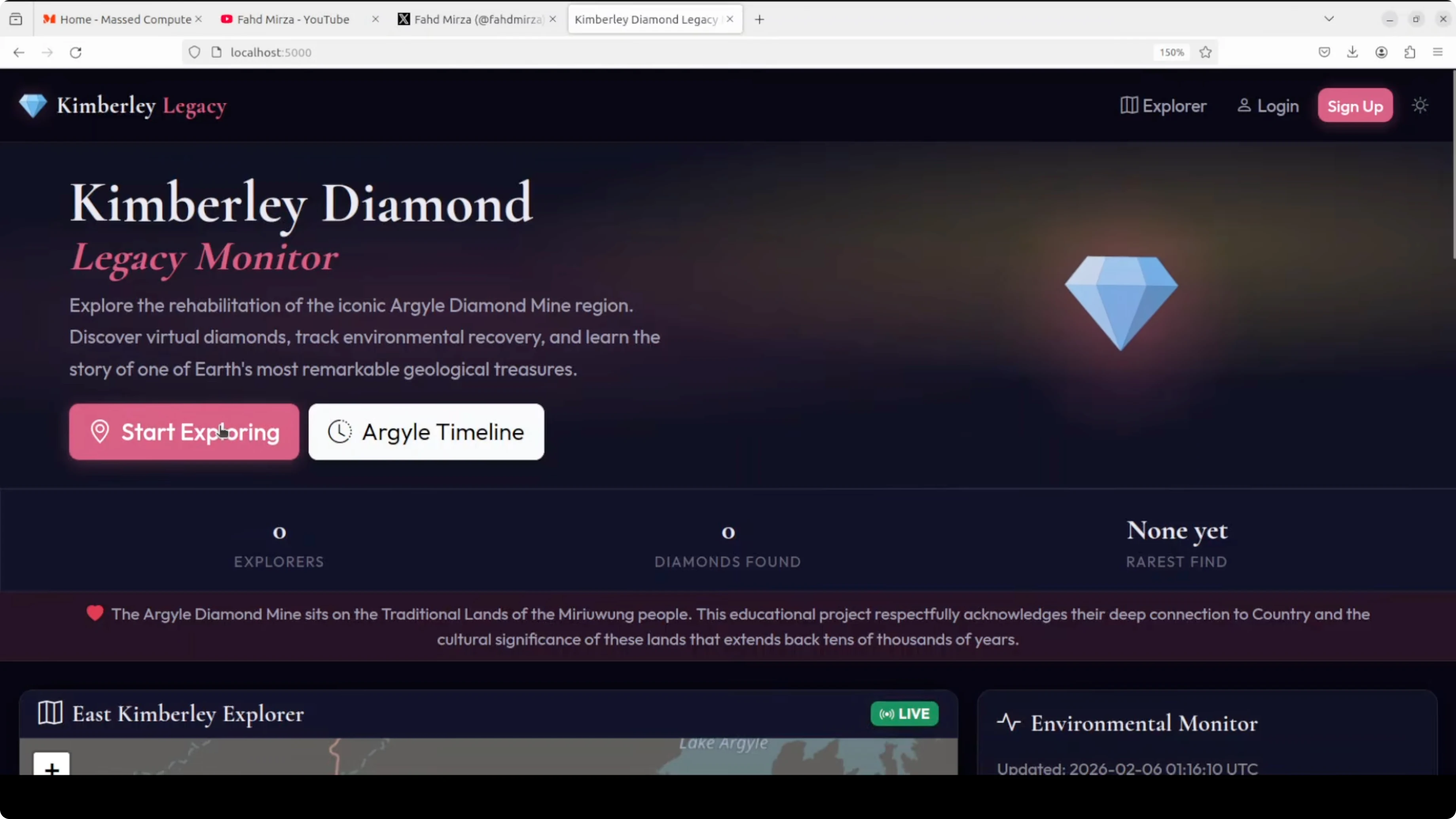I asked Opus 4.6 to build me a full stack web application. This was an ultimate test: create the Kimberly Diamond Legacy Monitor, a cool interactive dashboard that explores the history and ongoing rehab of Australia's famous Argyle diamond mine in the Kimberly region. Everything should be runnable on my Ubuntu system. I also asked it to tell me what I need to install and what I need to do. I wanted to see if Opus 4.6 M6 delivers a production ready demo app without me fixing a single line of code. That was the ultimate test.