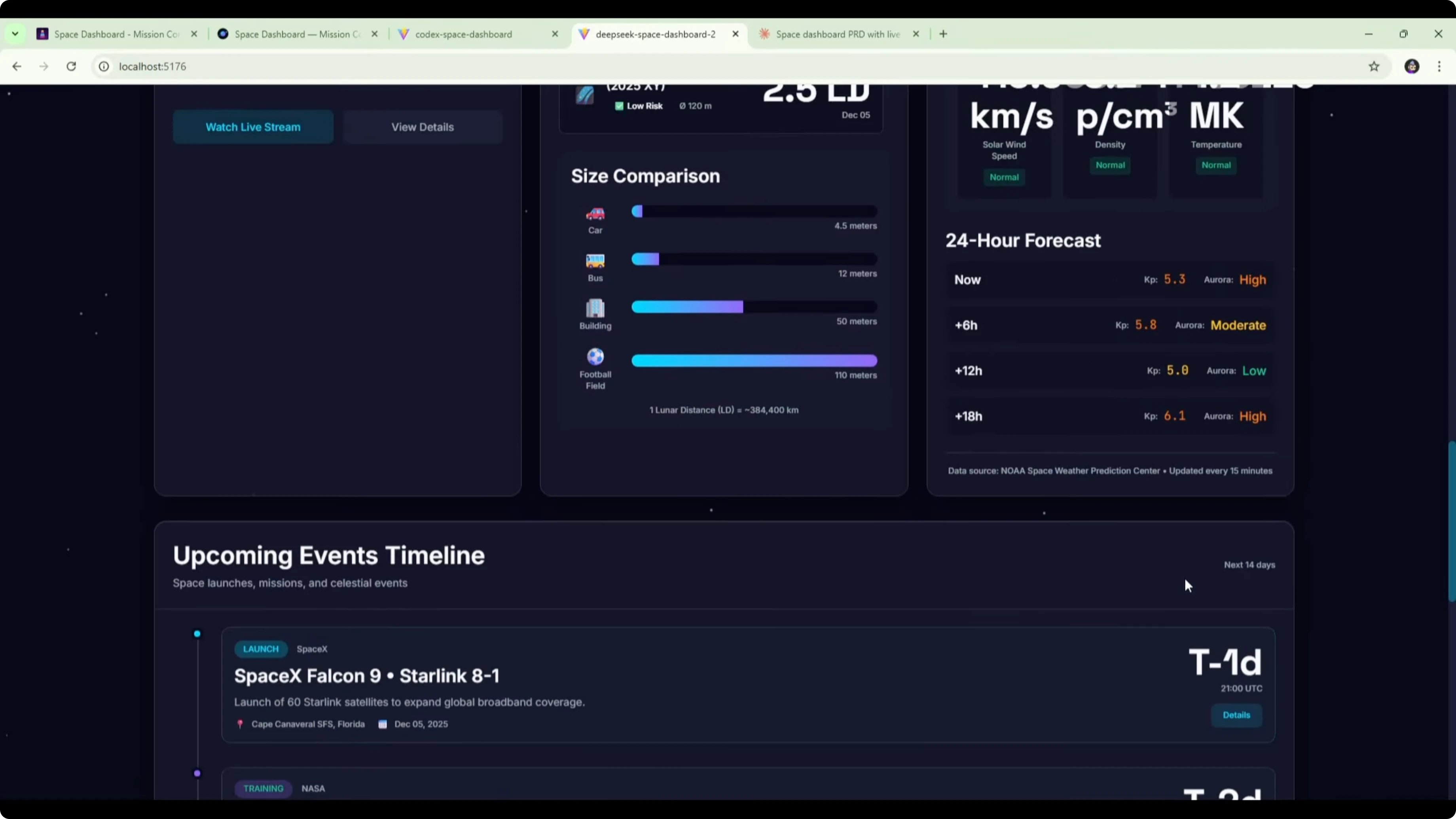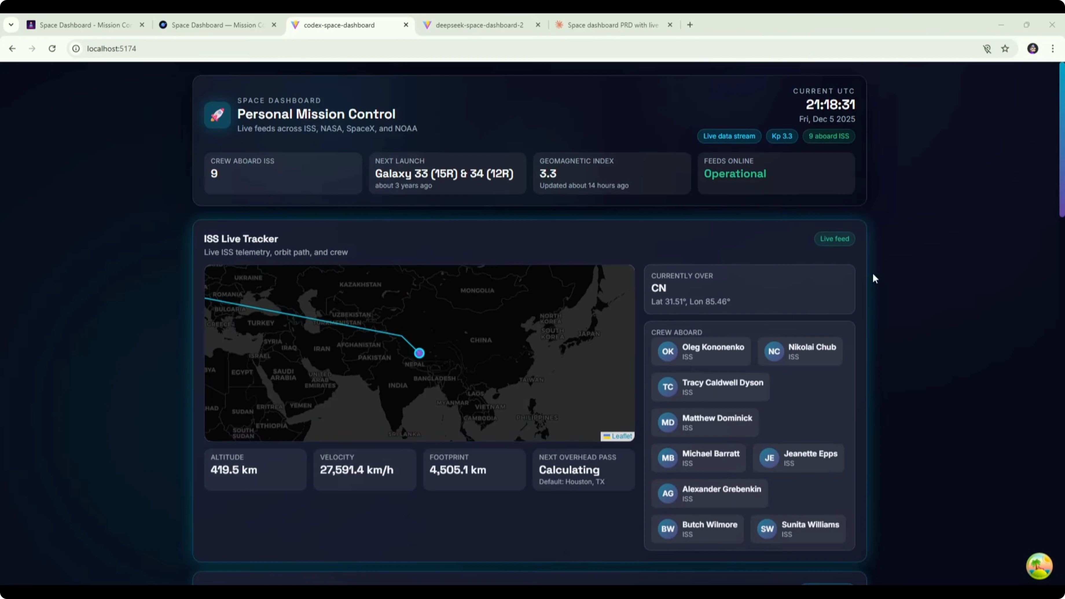 It did not nail how those three sections should work together. The ISS tracker section was solid. The mission control section at the top was also good.