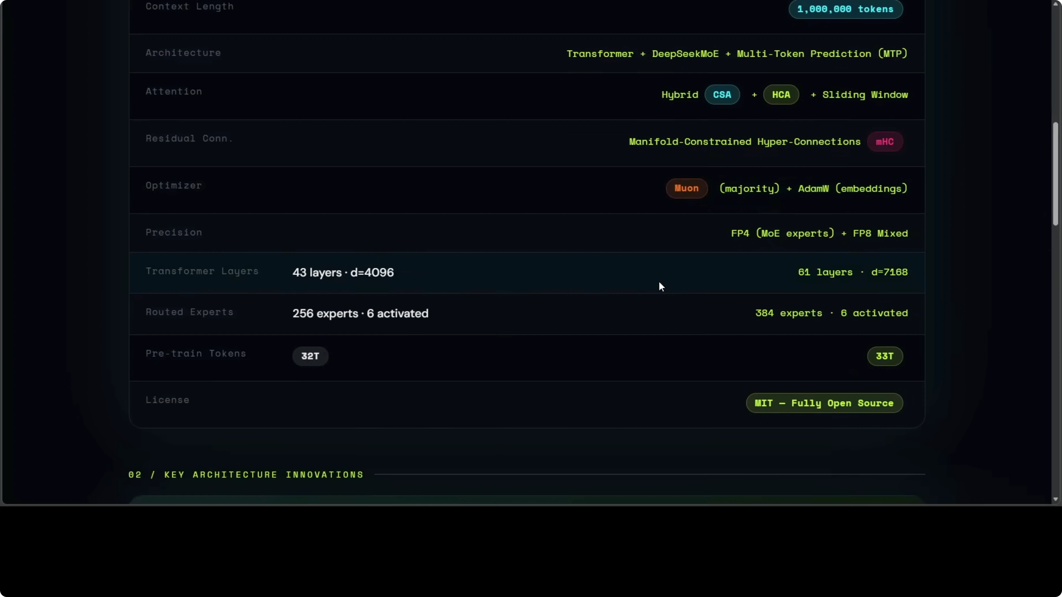 The Flash variant at 284 billion parameters is a mixture of experts with only 13 billion firing at once and it already beats DeepSeek 3.2 across most benchmarks while being far cheaper to run. The Pro variant at 1.6 trillion total parameters is currently the strongest open source model on the planet across multiple measures. Training also brought a new optimizer, a new residual connection system, and a post training pipeline that breeds specialist experts then distills them into one unified brain.