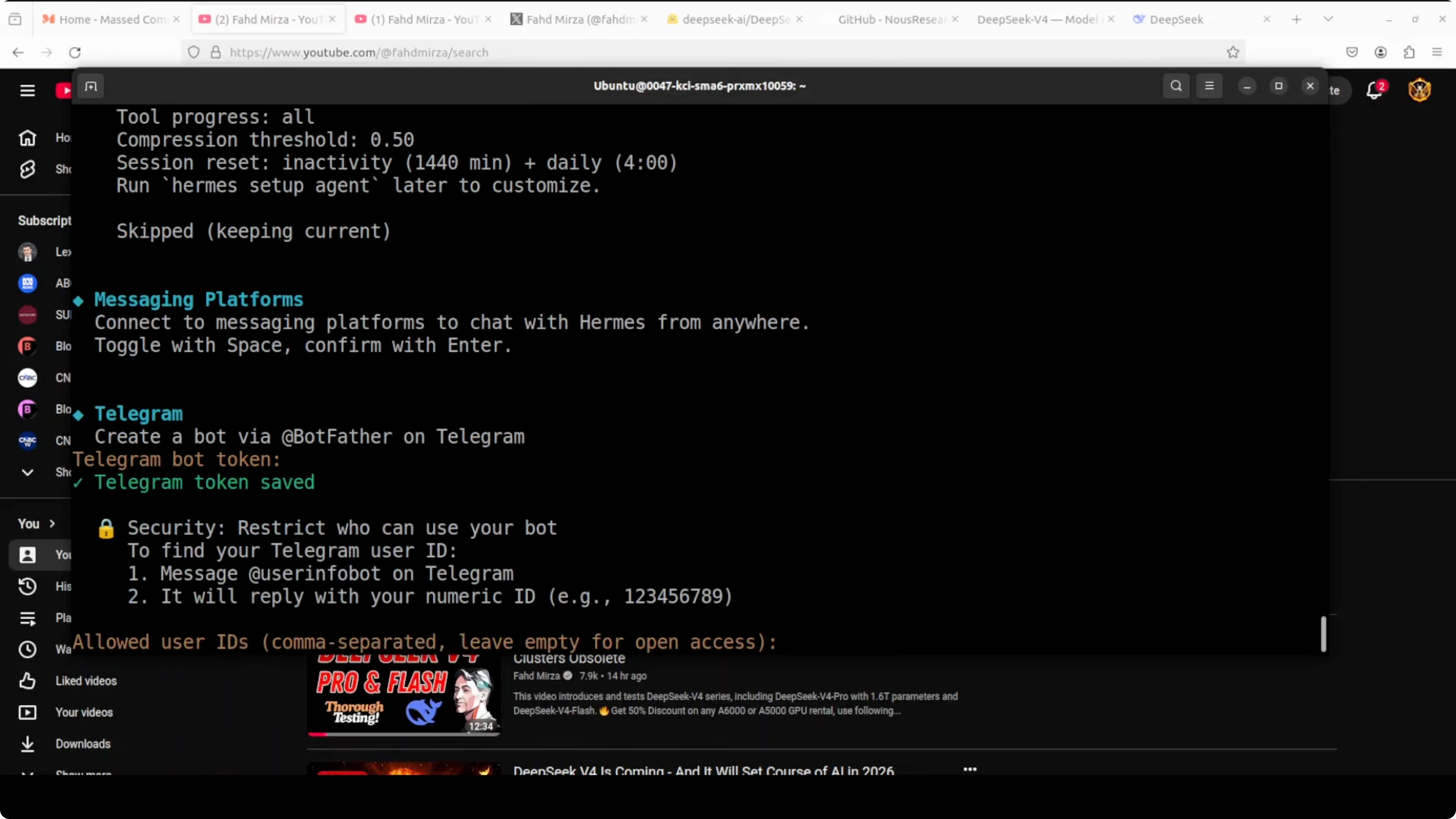 I am not done with DeepSeek V4 Pro, not even close. I wired it into OpenClaw and watched it fix a broken full stack app across multiple files. Today I am using the same model with a different agentic framework called Hermes Agent by Nous Research that lives in Telegram and adds a built in learning loop with skills that persist across sessions.