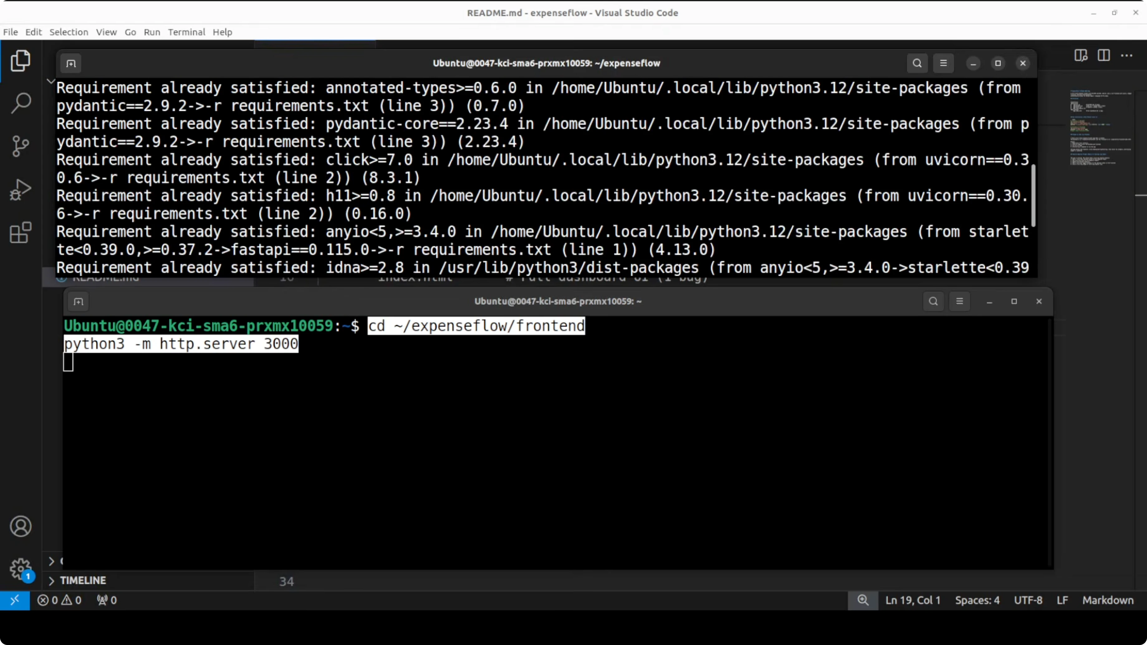 I opened another terminal for the frontend. I installed dependencies and started the dev server.