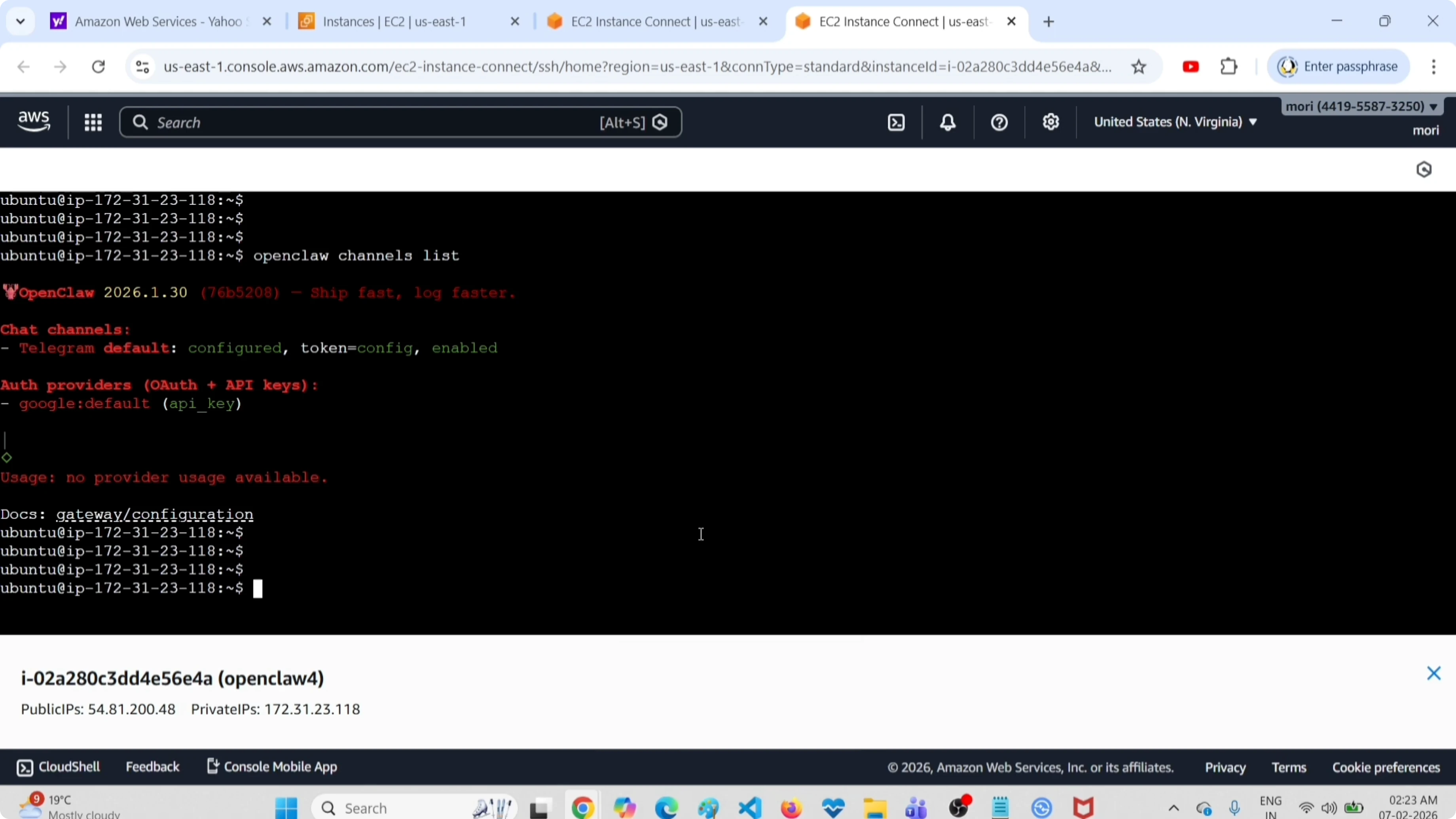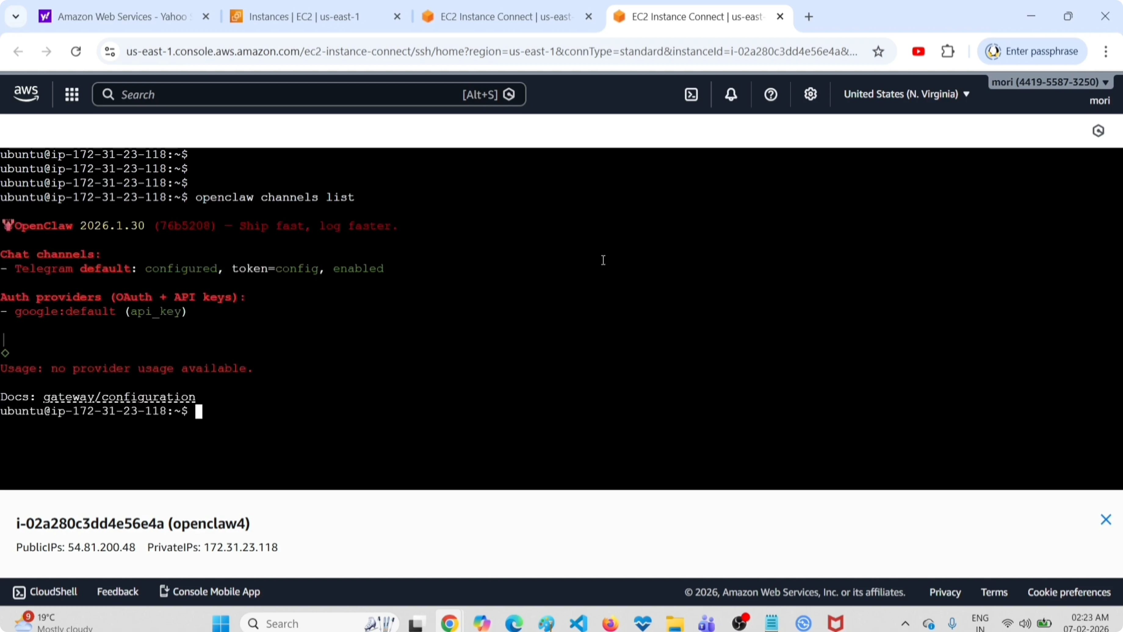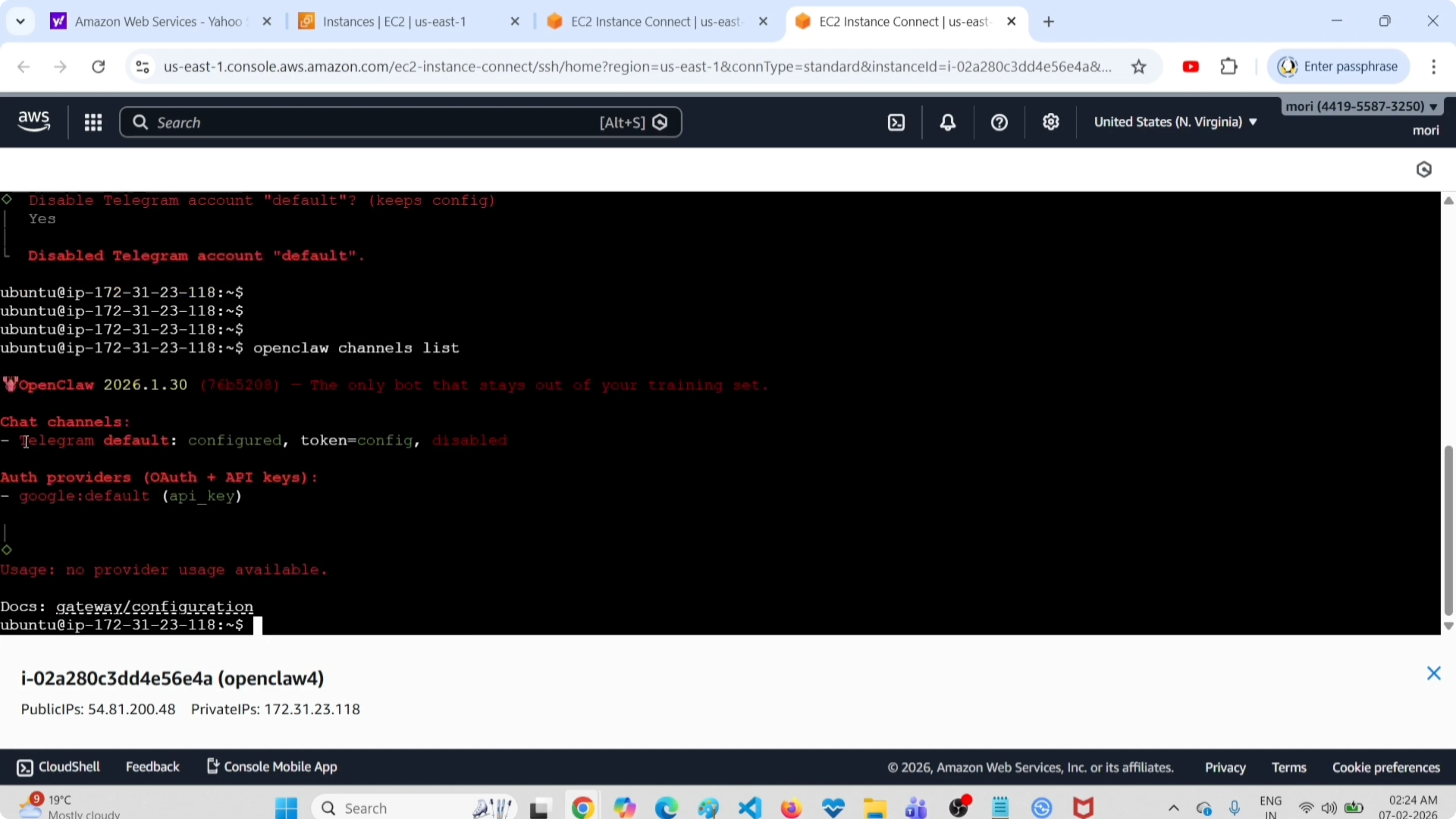 openclaw channels listIt shows the Telegram channel, and it is marked as disabled. Earlier it was enabled.