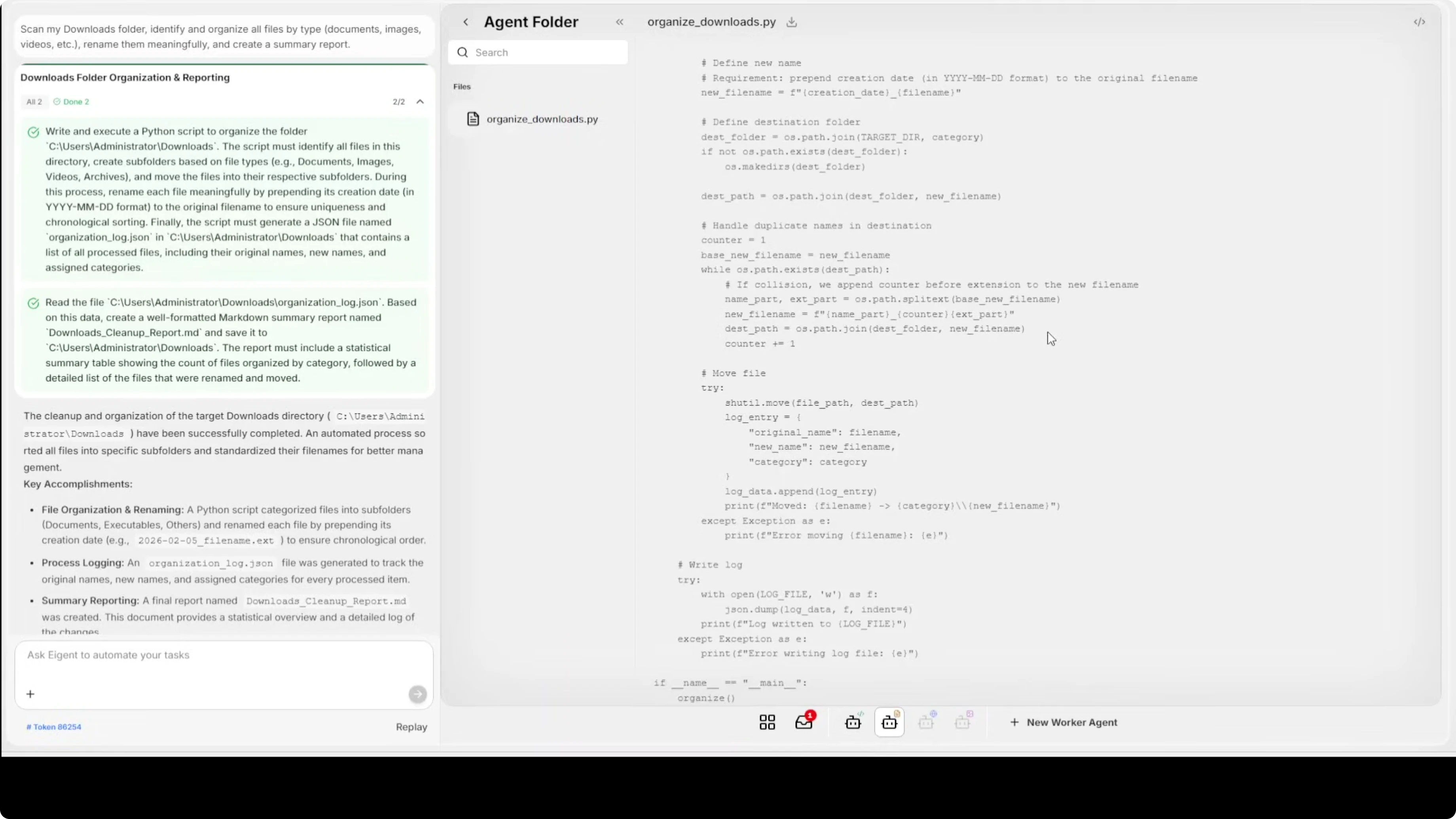 - I ask it to scan my Downloads folder, identify and organize all files by type, rename them meaningfully, and create a summary report.