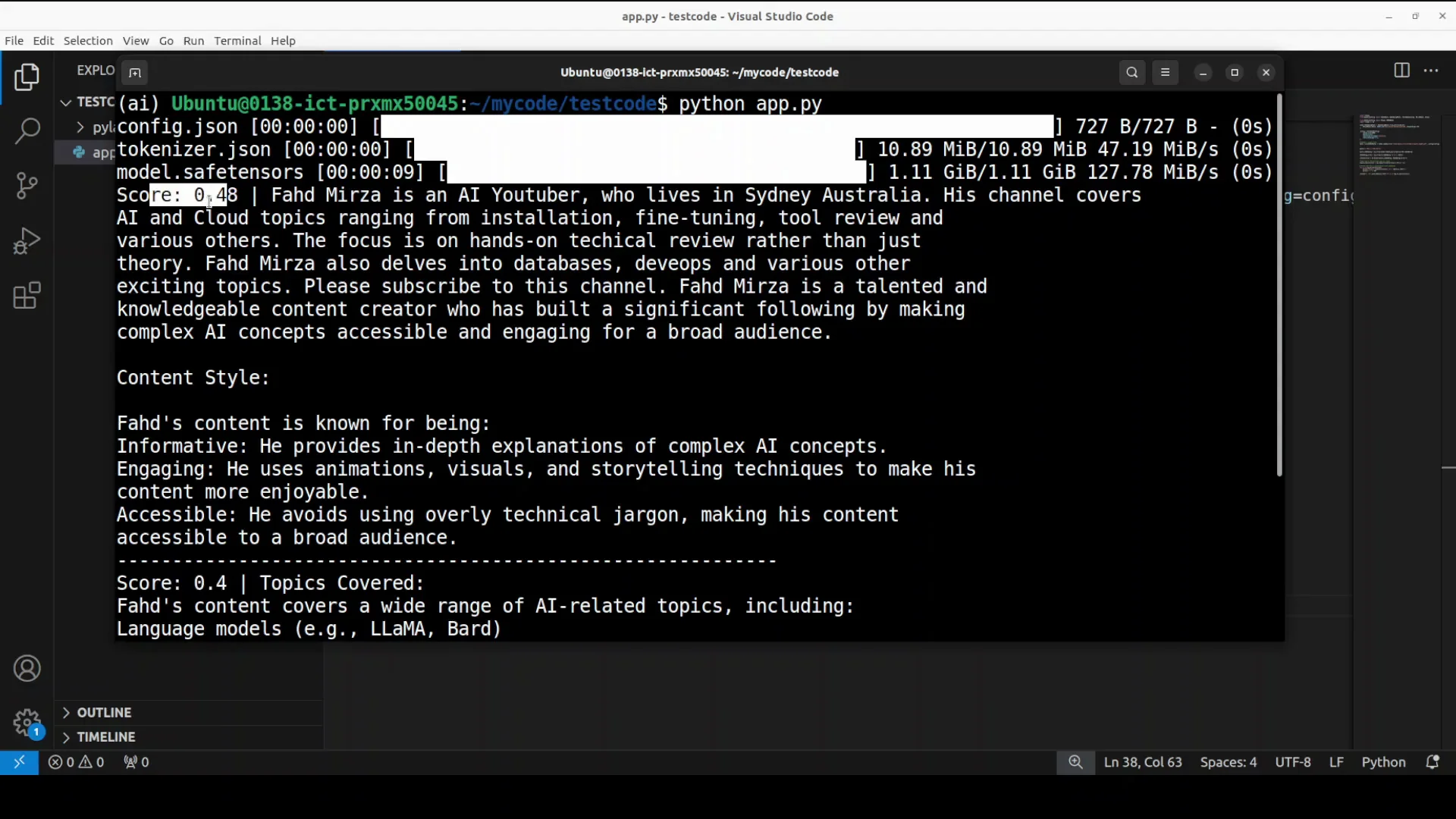 It showed tokenizer information and configuration. From the document it displayed two main results with relevant scores. One ranking is 48 and the other one is 04. These chunks provide a detailed description of who Fad Miza is, directly answering the question based on the content of the document. It's quite fast.