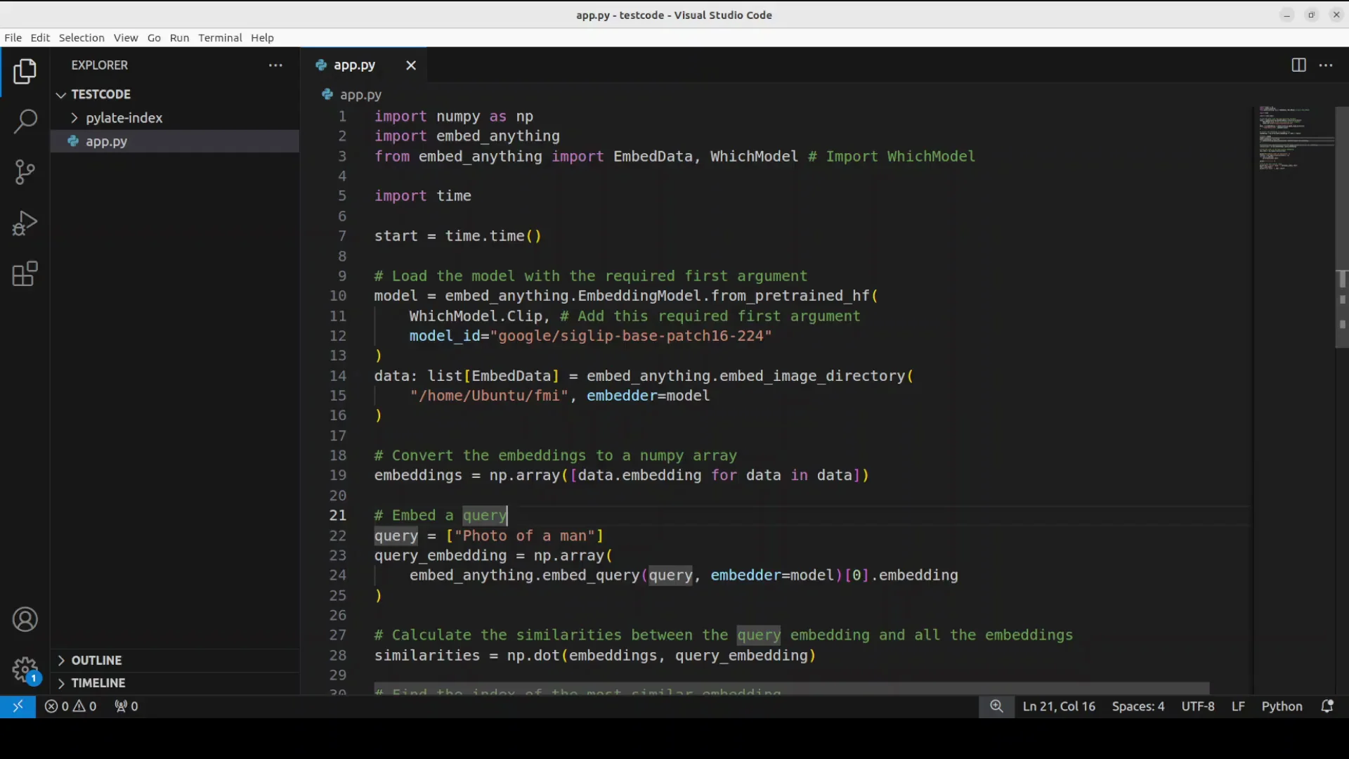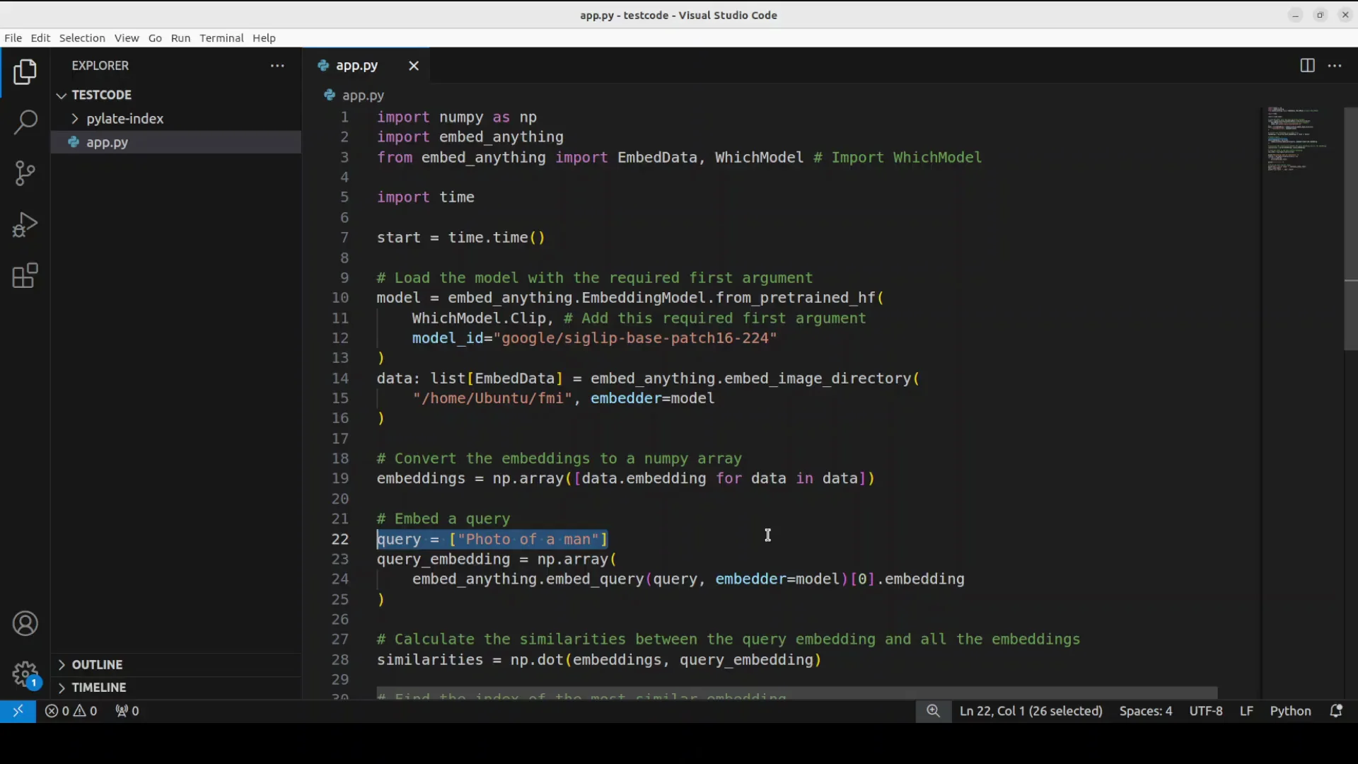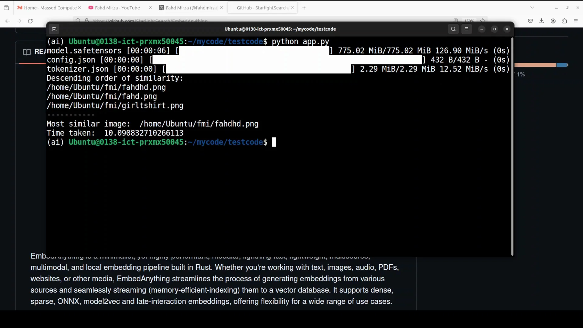 It downloads the model which is a very lightweight model and most of these embedding models are small. It reports the most similar image with a high score after going through all three images. The results are very impressive.