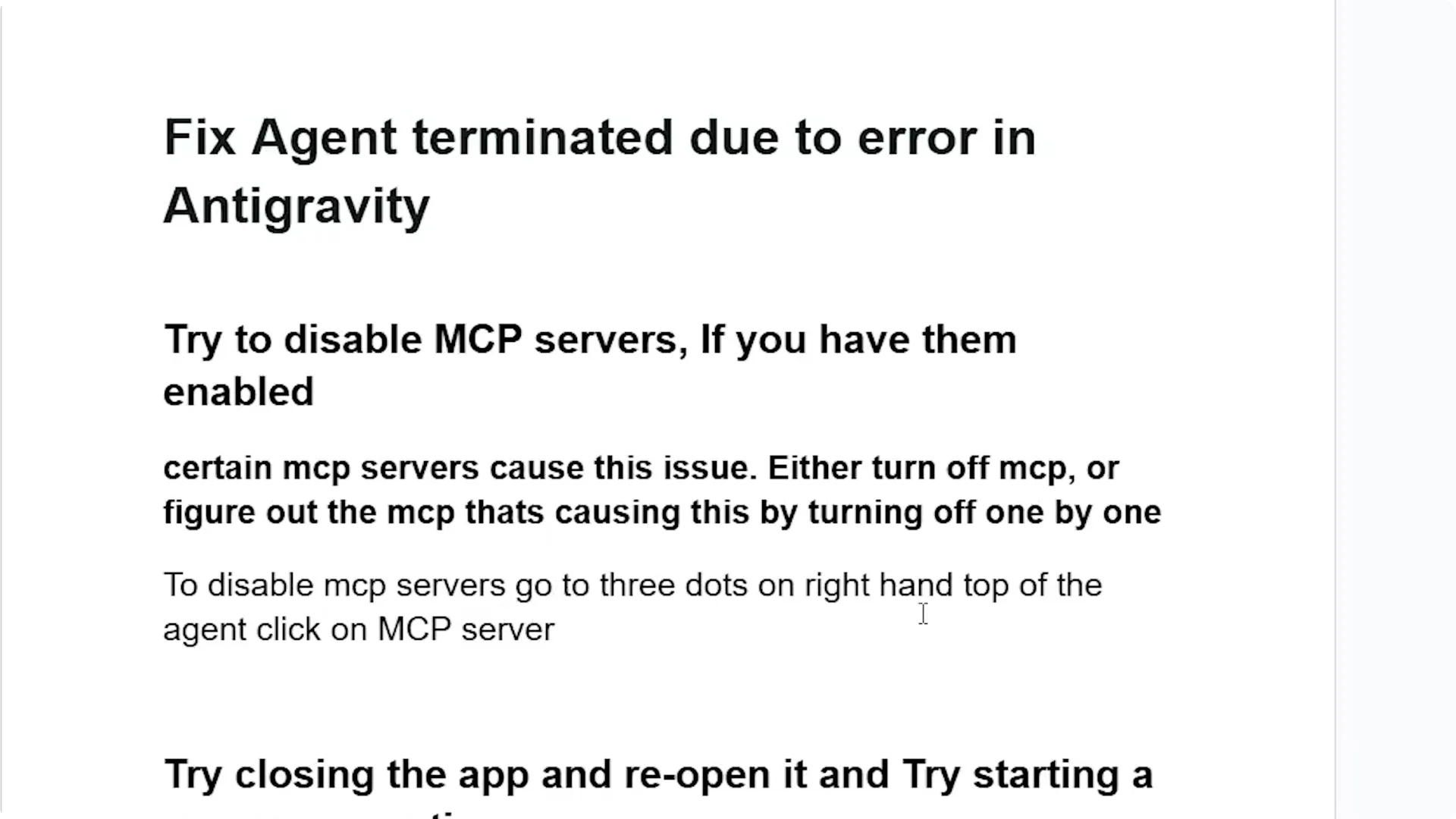 - Step 1: Disable MCP servers — Fix Agent Terminated Due to Error in Antigravity?