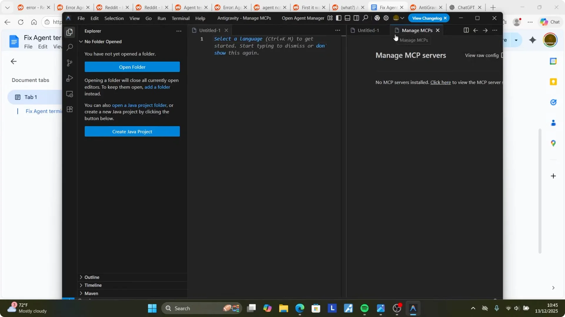 Step 1: Disable MCP servers — Fix Agent Terminated Due to Error in Antigravity?