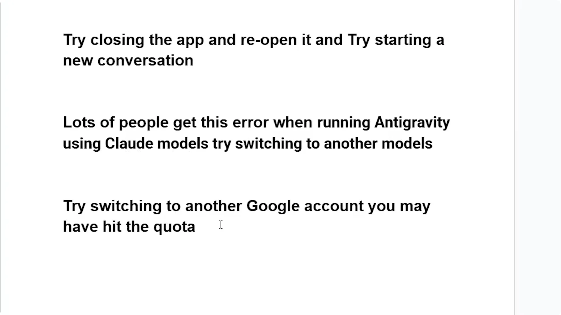 - Try Gemini 3 Pro or other models like GPT and check if the problem is resolved.