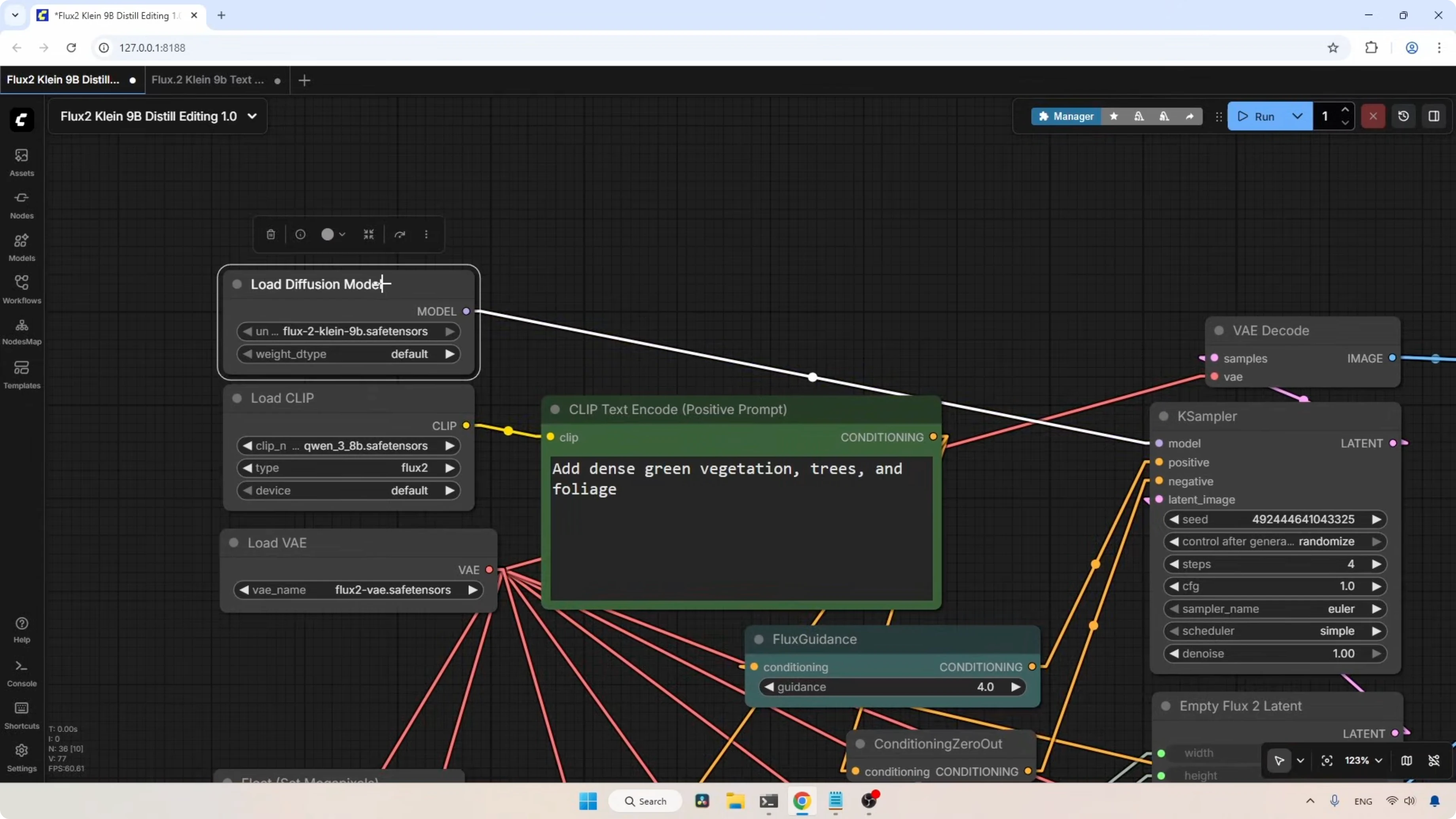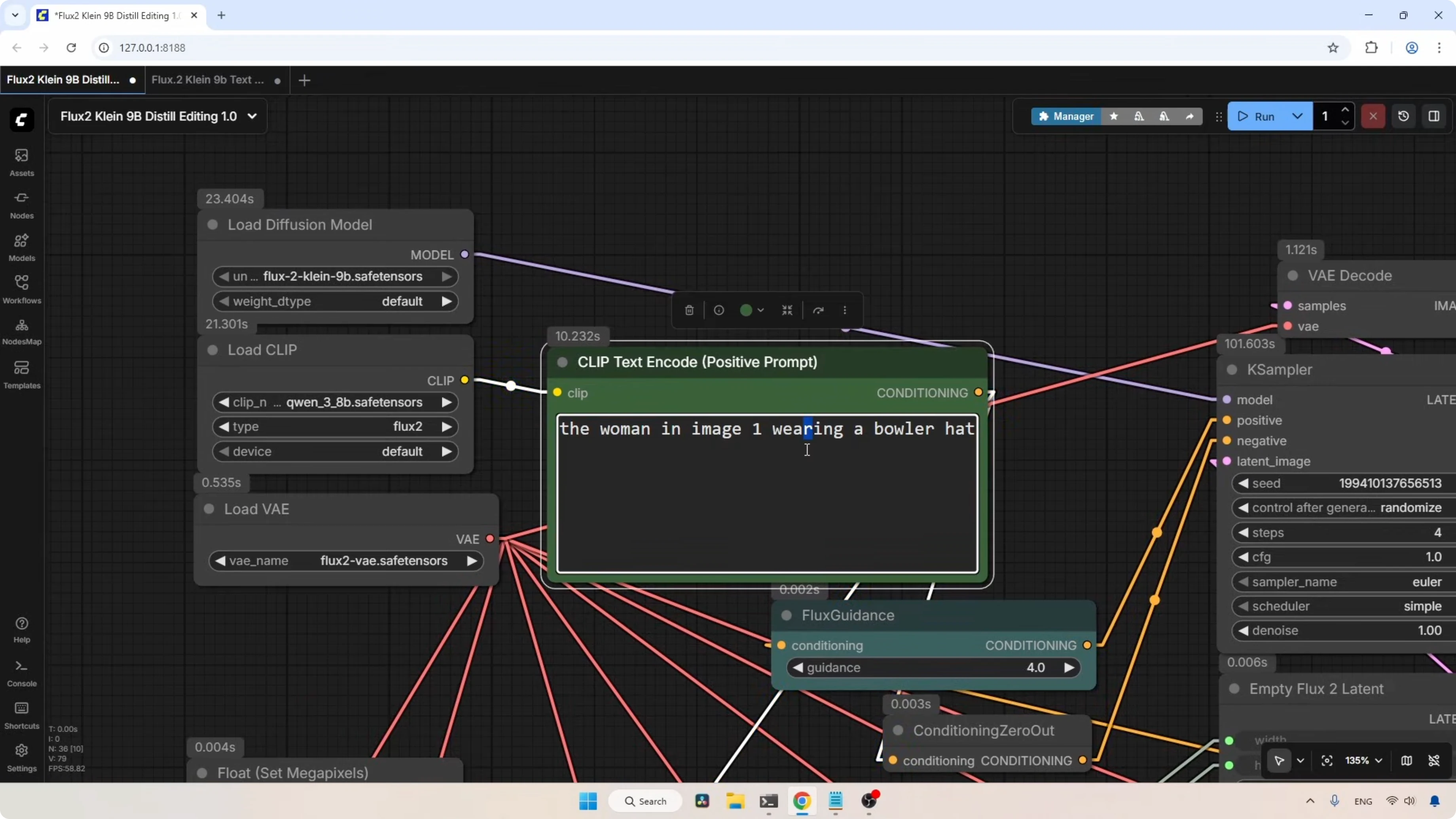 The workflow I'm using here is the same one I used for the Flux 2 dev model, but with some changes I added to support the new Klein model.