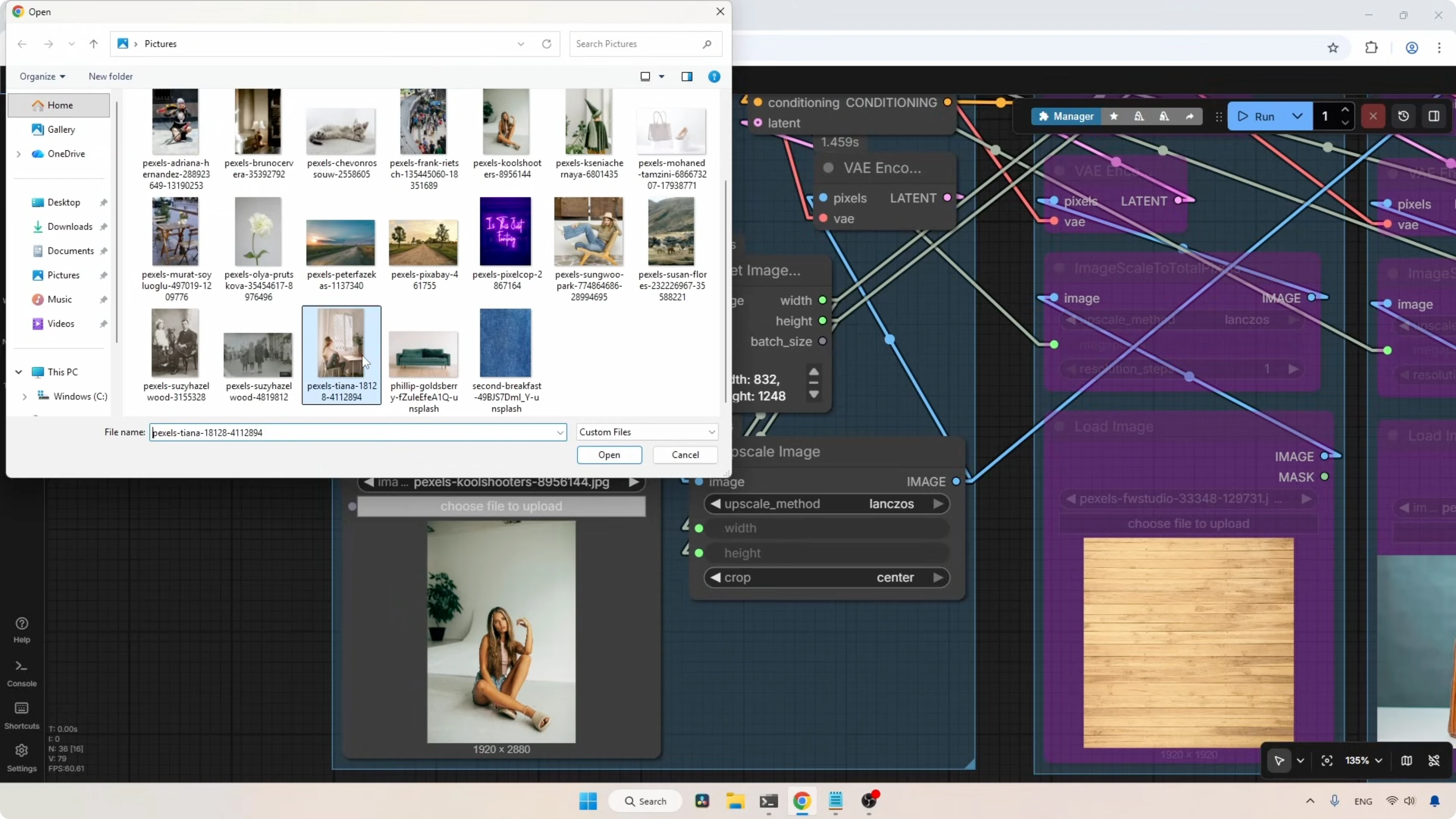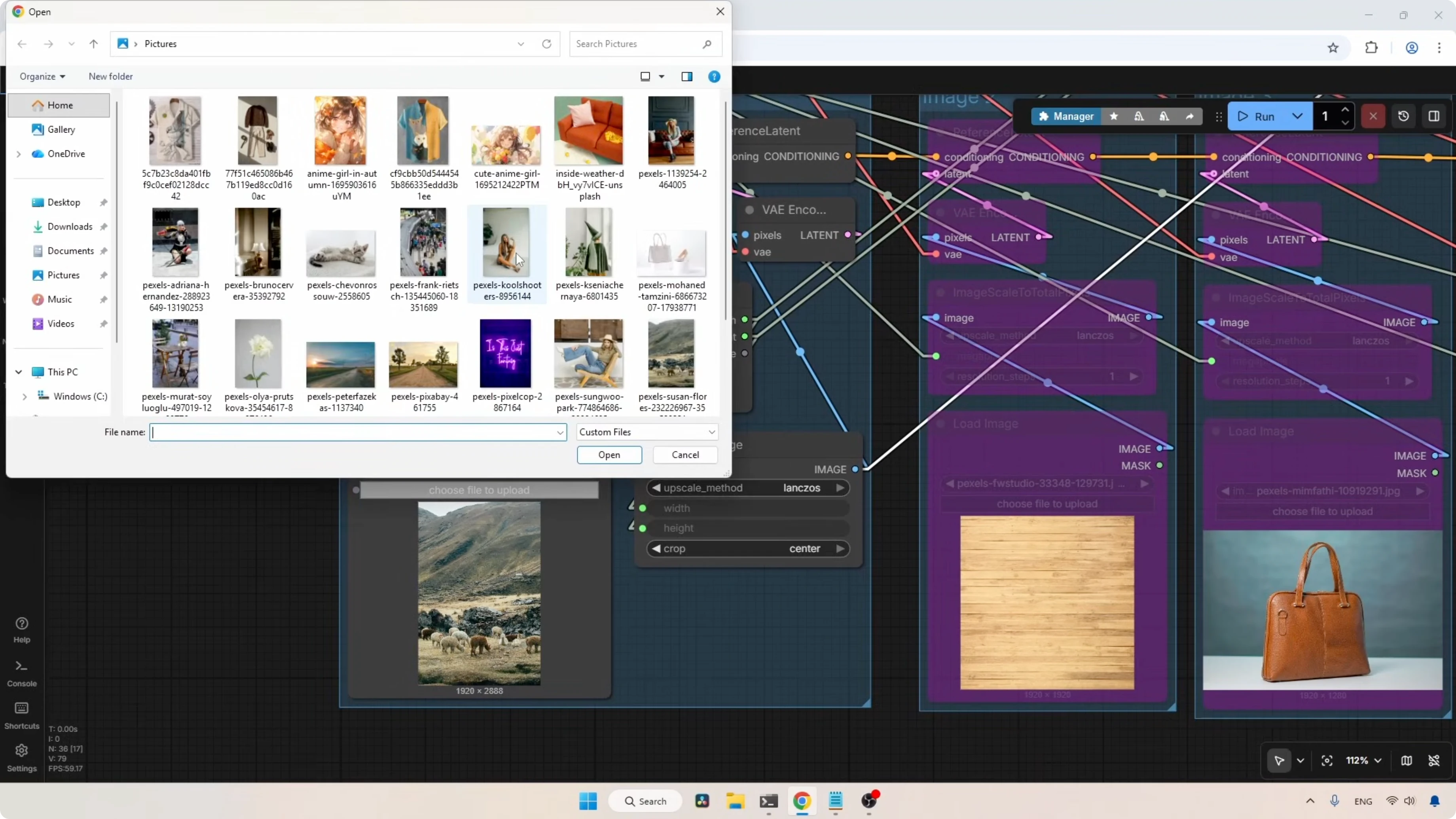 - Each group has a Load Image node. The loaded image is rescaled using the Image Scale To Total Pixels node.