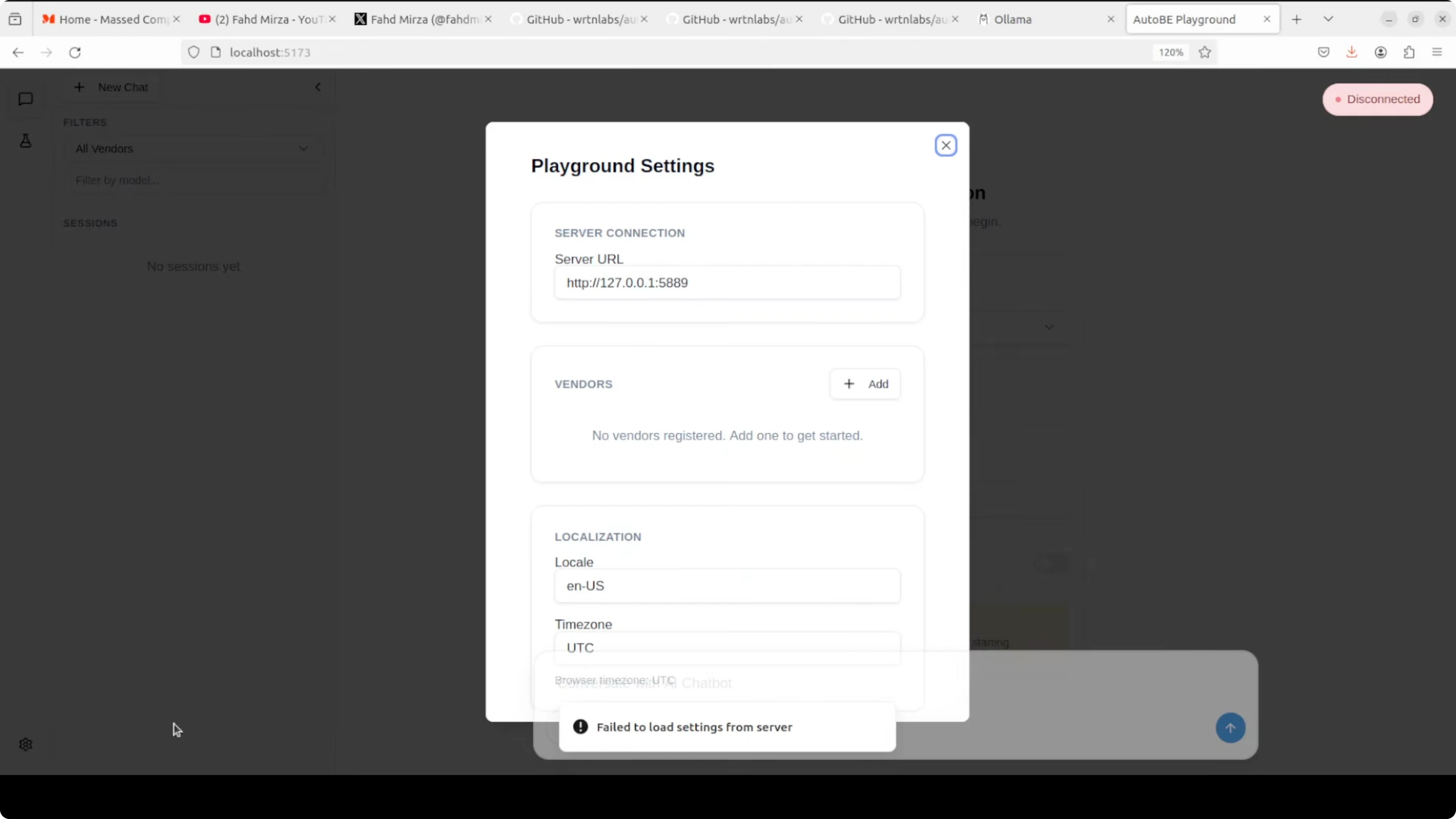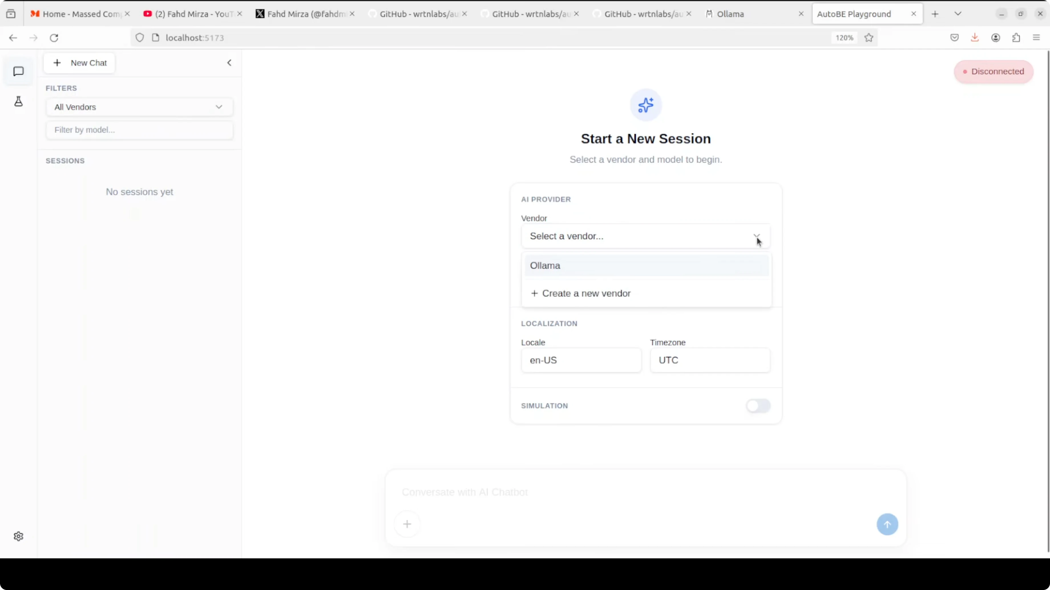 - Configure the Ollama vendor