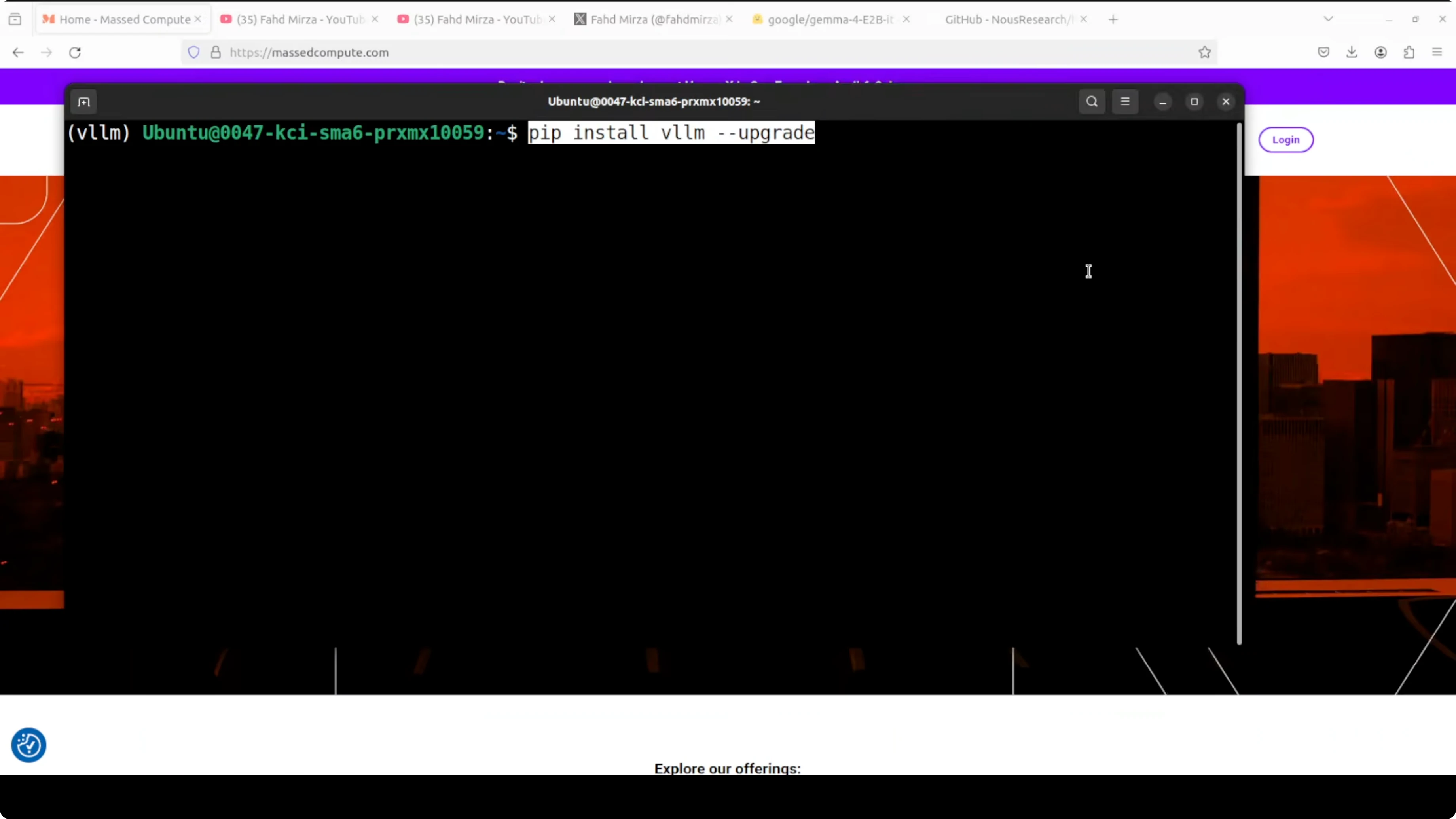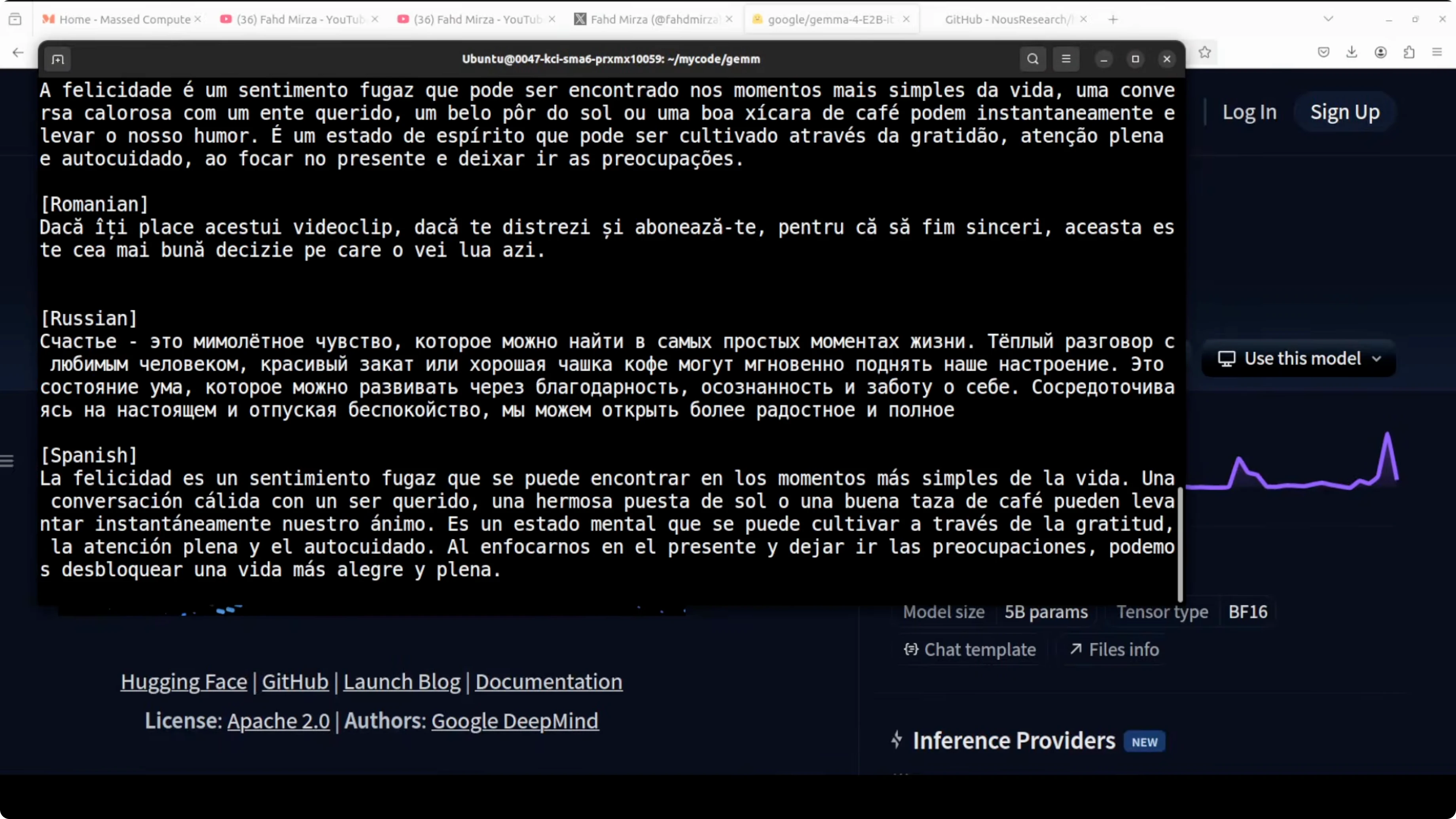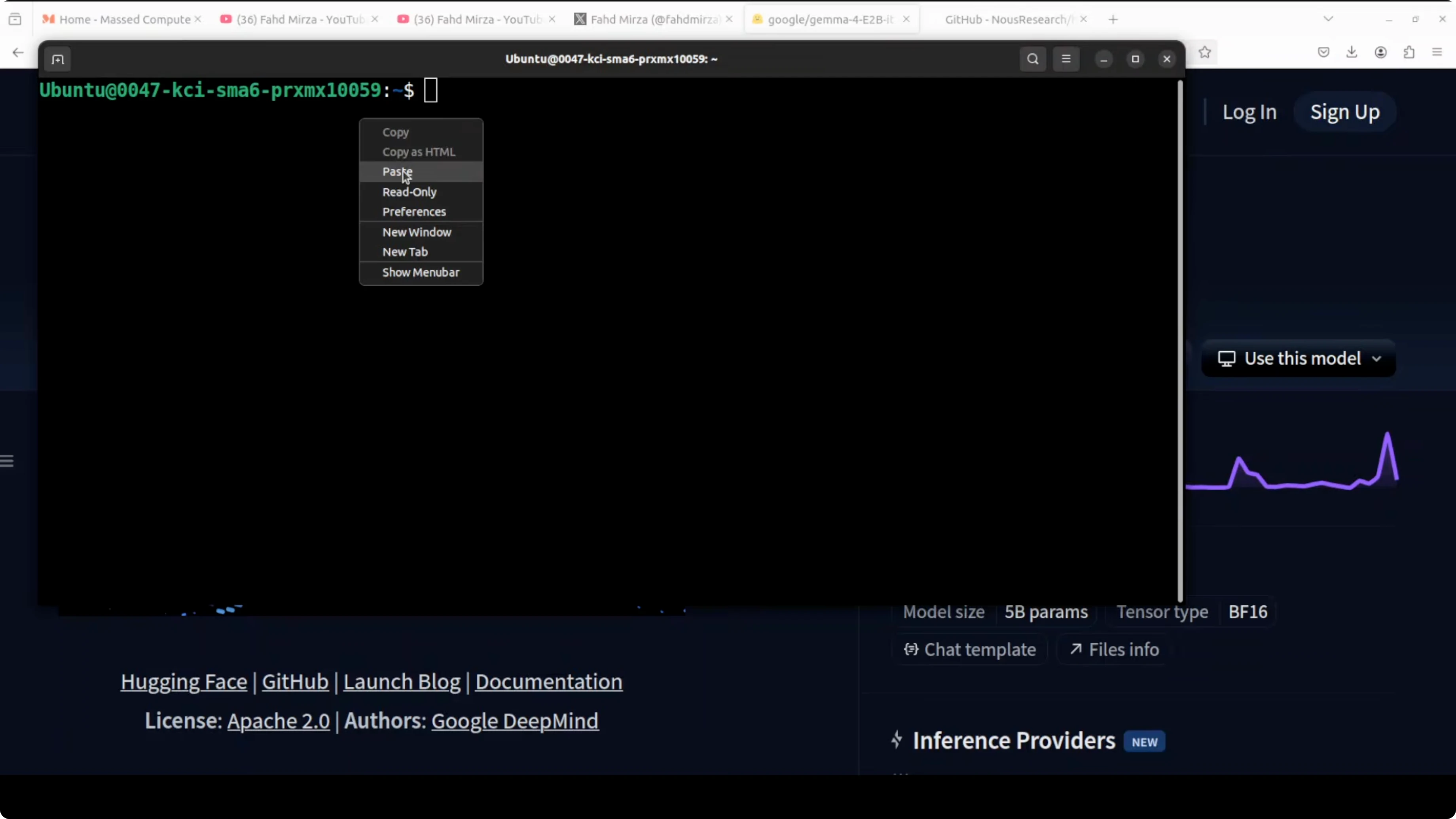 I installed and integrated Gemma 4 E2B from Google with Hermes Agent on Ubuntu, serving the model locally through vLLM. I used an Nvidia RTX 6000 with 48 GB of VRAM. This setup gives me text, vision, and audio support from a small instruction-tuned model running on a single GPU.