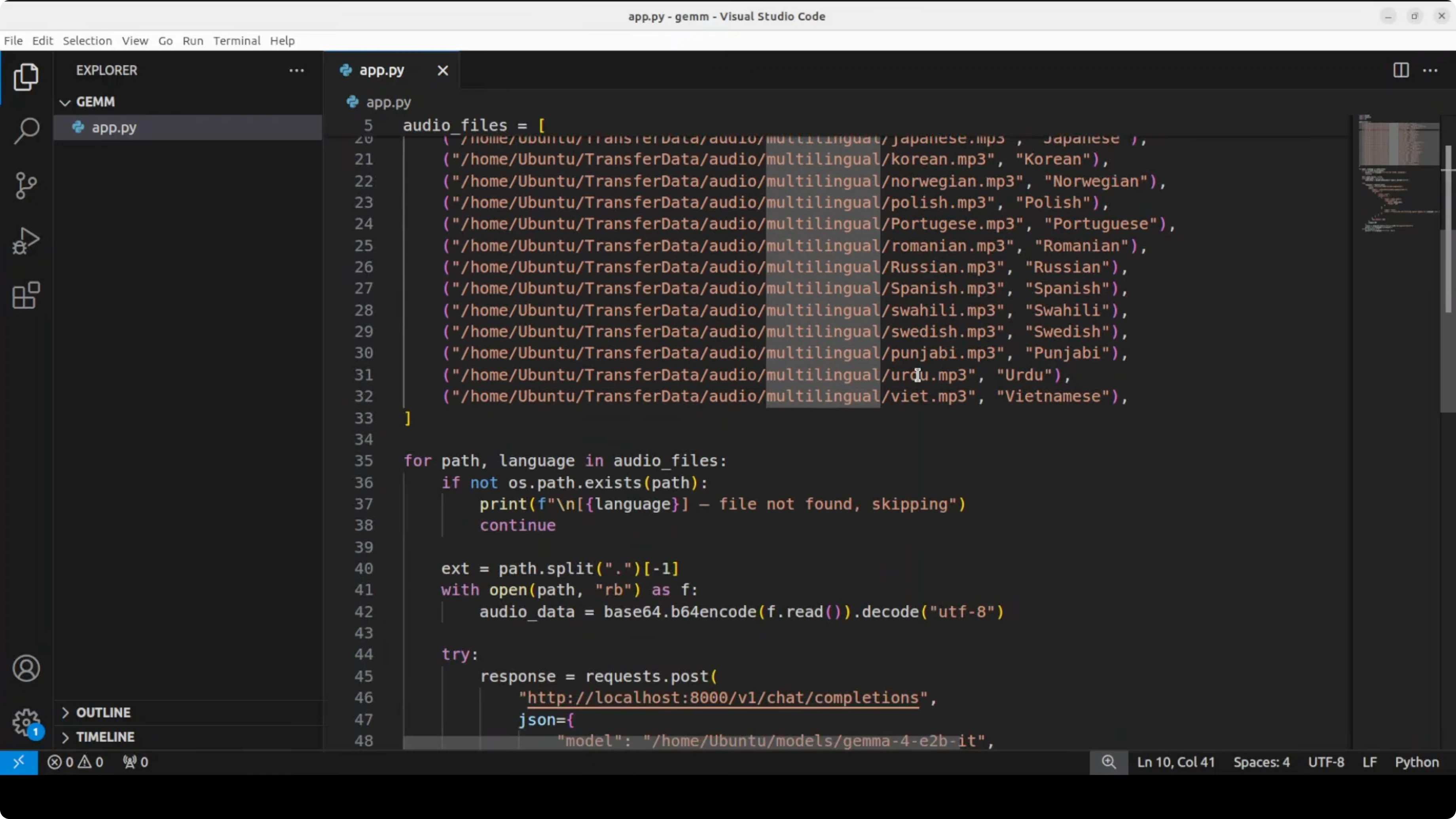 The model supports more than 100 languages for speech inputs. I used the OpenAI-compatible client against vLLM for transcription-style prompts.