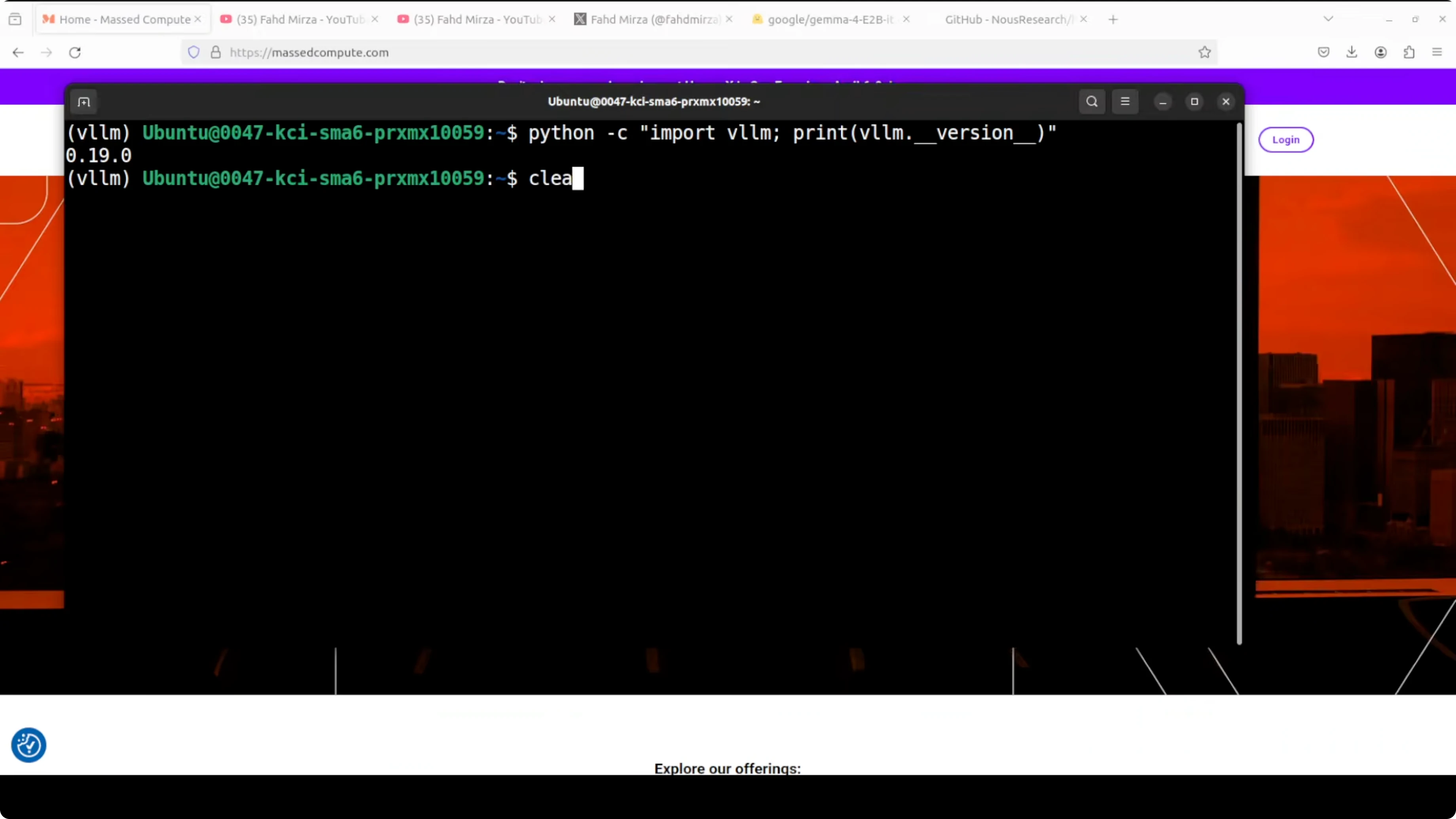 I used the latest vLLM because Gemma 4 support landed recently and older builds may not expose all modalities. Some modalities might not work right away in fresh releases, and you can usually resolve that by upgrading vLLM again in a couple of days. Most of it works well already, and the model loads comfortably for local experimentation.