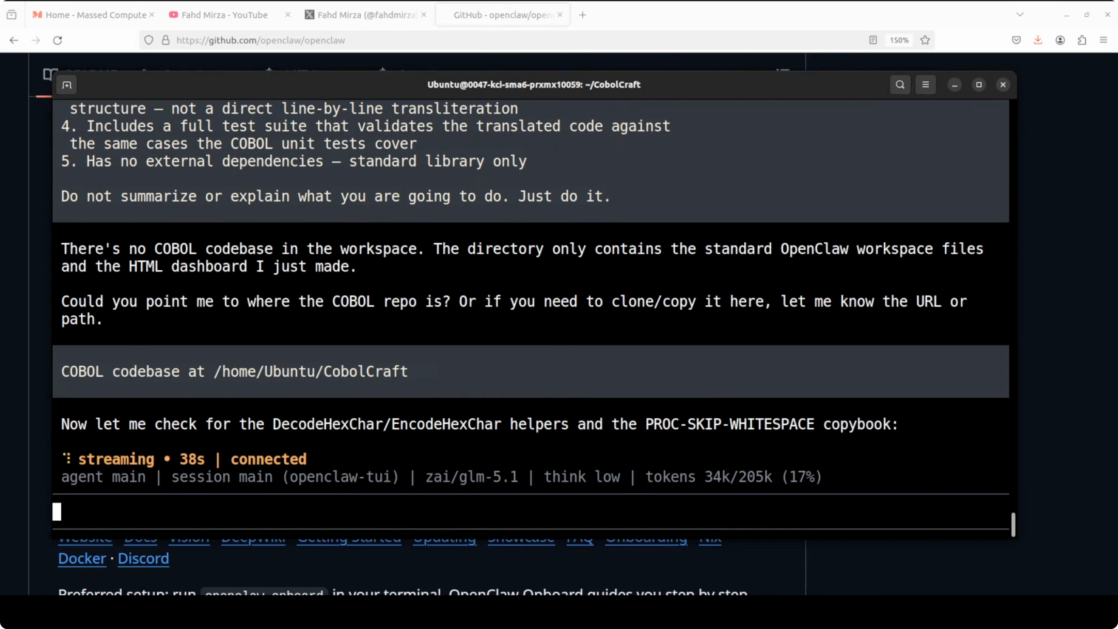 Initially, GLM could not find the repo because OpenClaw agents operate in their own working directory. I provided the full path to both models and restarted the task.