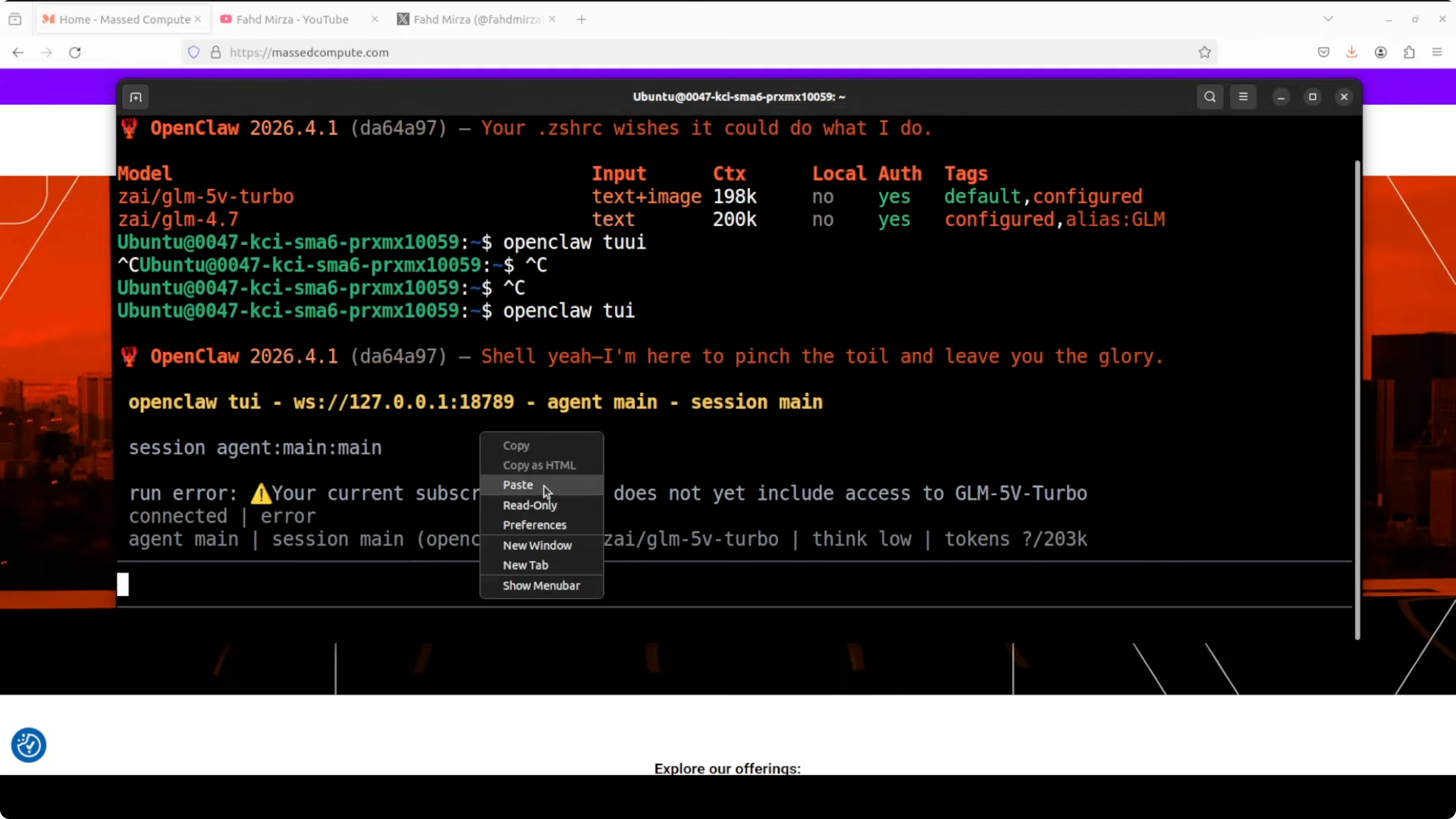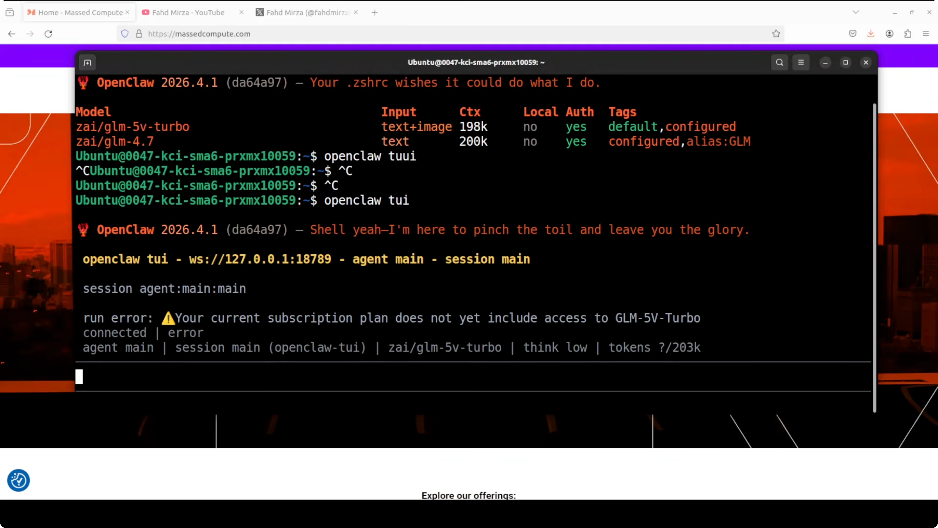 openclaw tuiSelect your provider as zhipu.ai. Enter your paid API key for the coding plan.