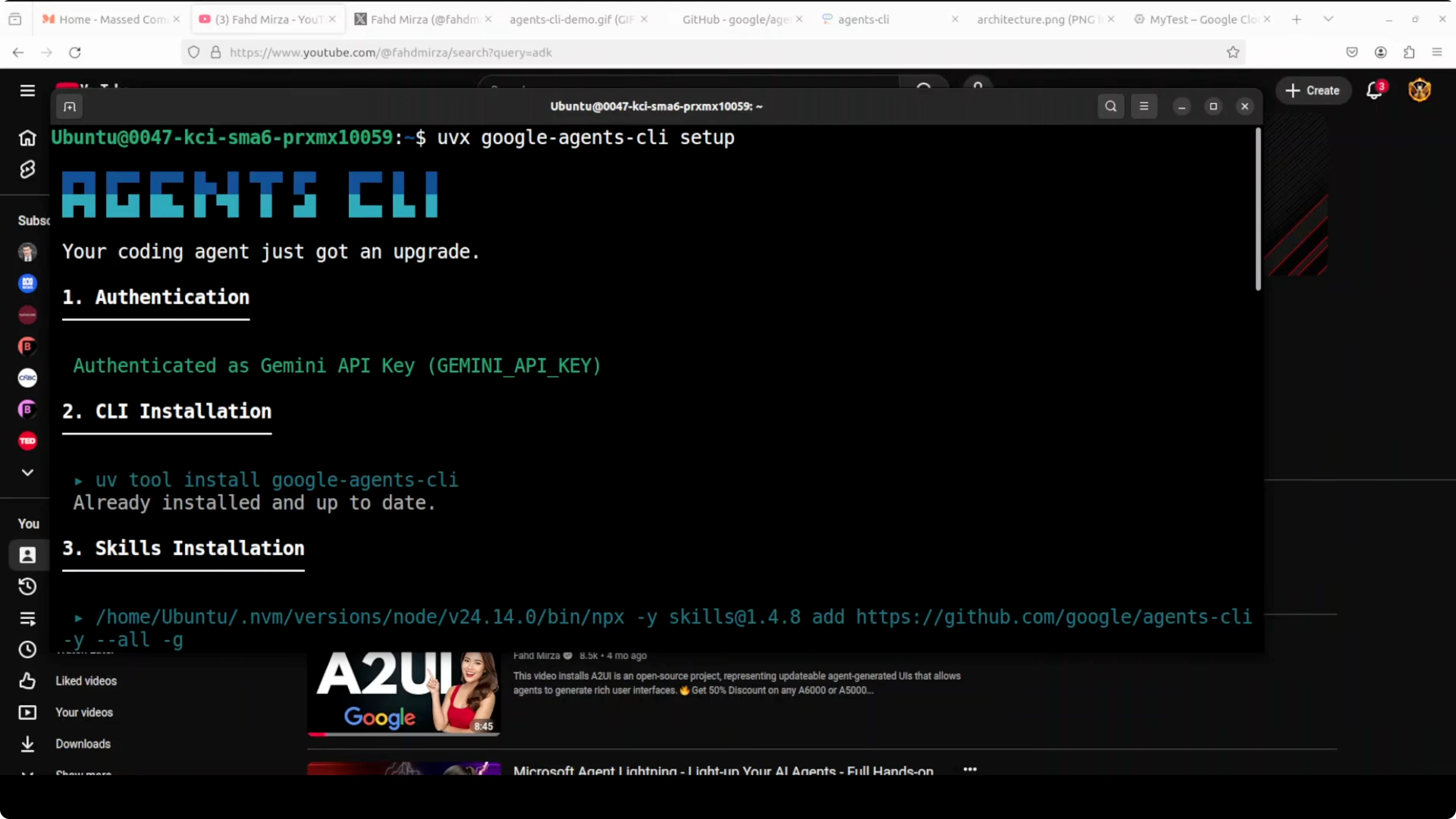 You need Node.js, uvx, gcloud CLI, Gemini CLI, and a Google AI Studio API key. gcloud is the CLI that gives you easy access to Google Cloud. I use the latest version.