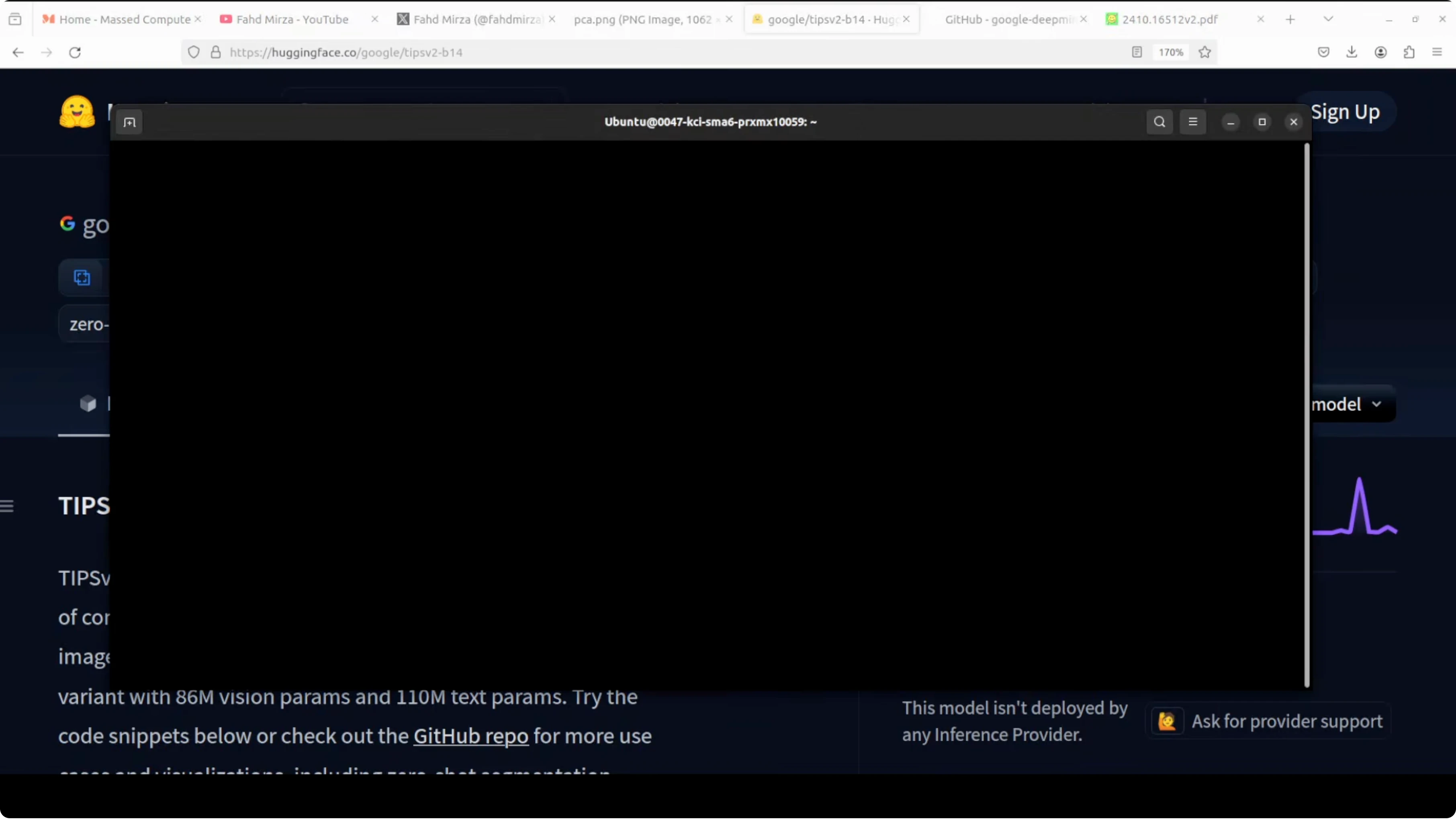 I am running it locally on Ubuntu. The system has a single Nvidia RTX A6000 with 48 GB VRAM, though the model also runs on CPU. The checkpoint is small at about 784 MB, which makes local work straightforward.