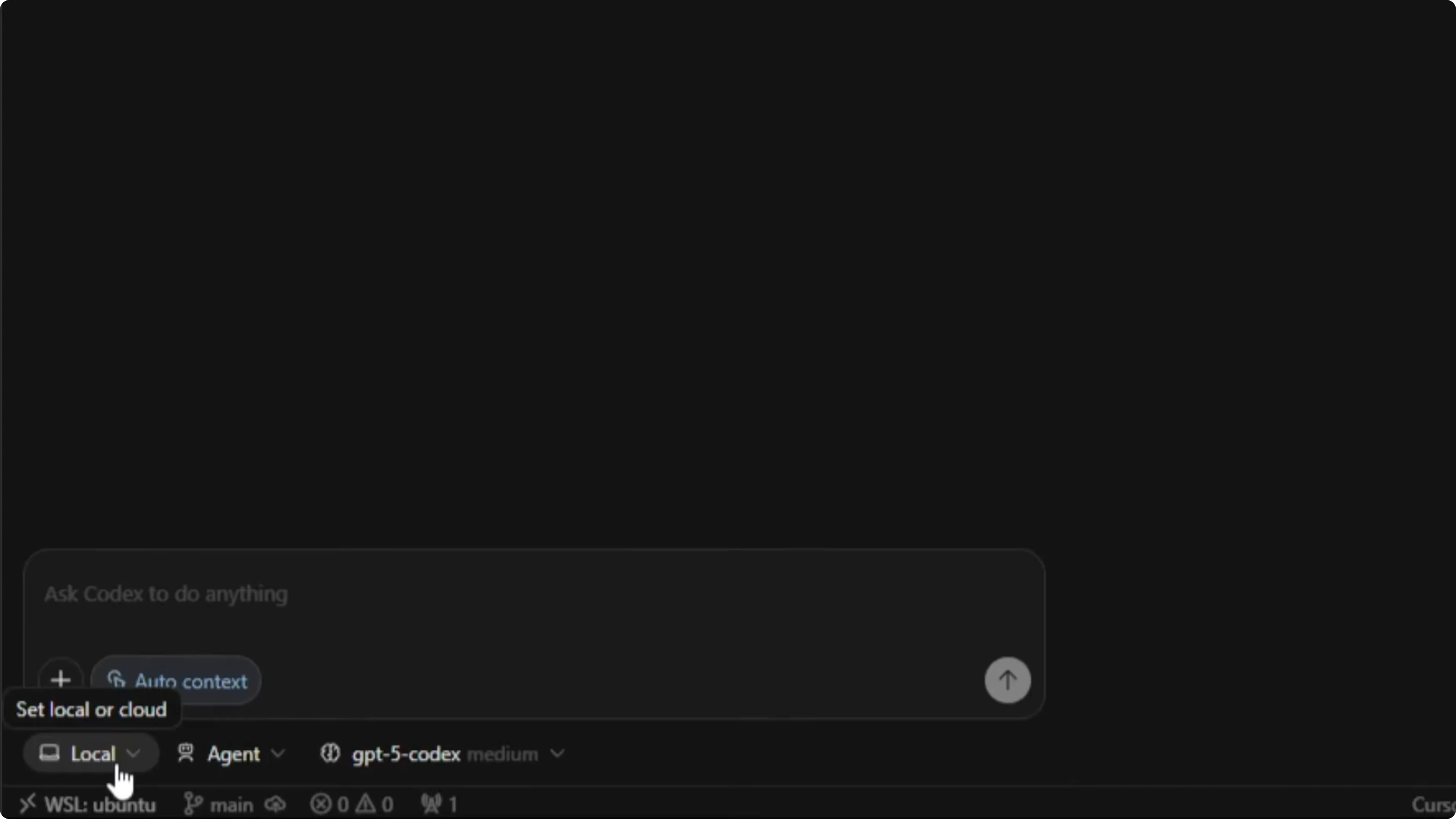 I kept Codex in Chat or Plan mode first, with GPT-5 Codex High selected. Once the plan was approved, the next step would be switching to Agent mode for implementation.