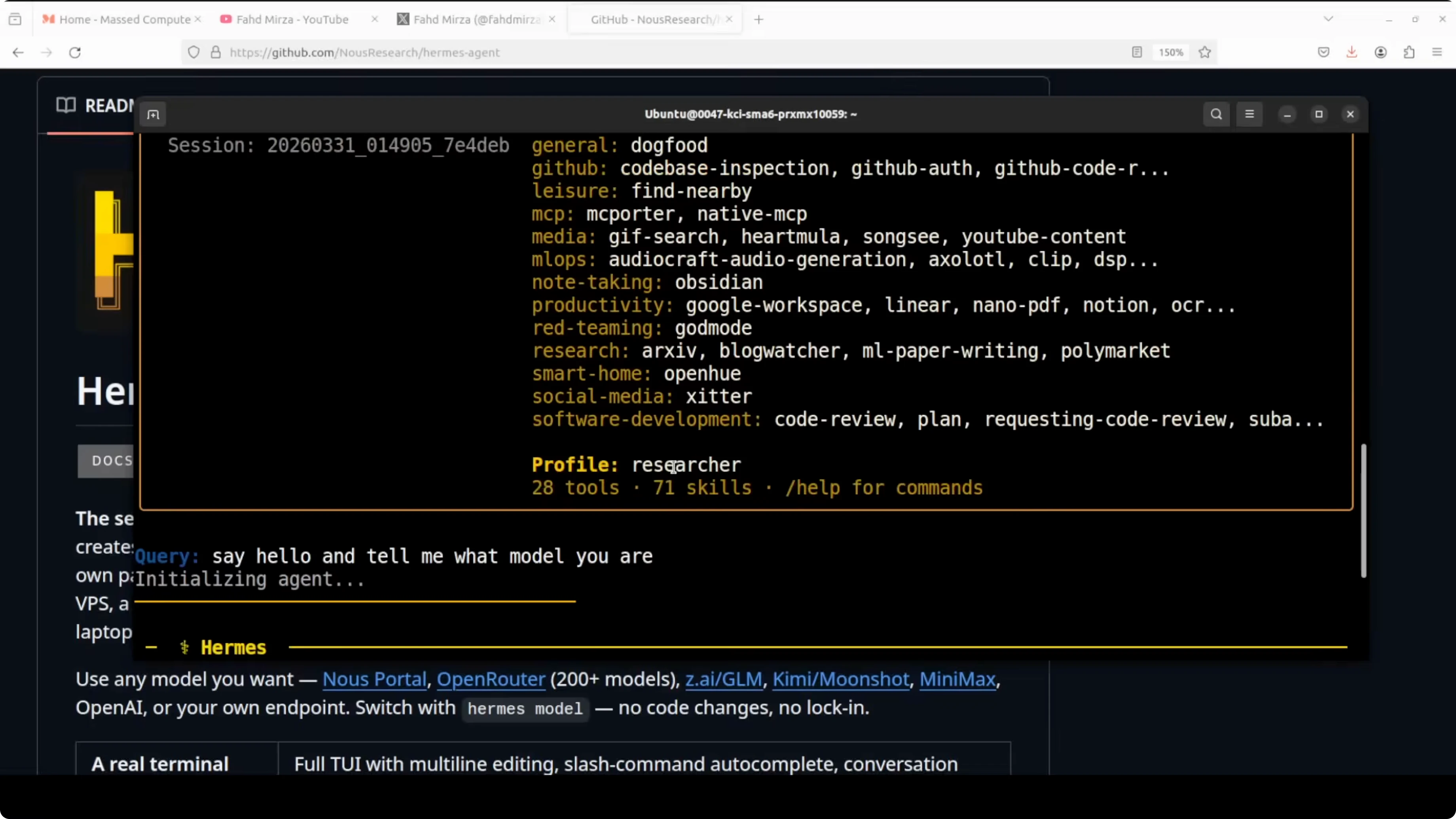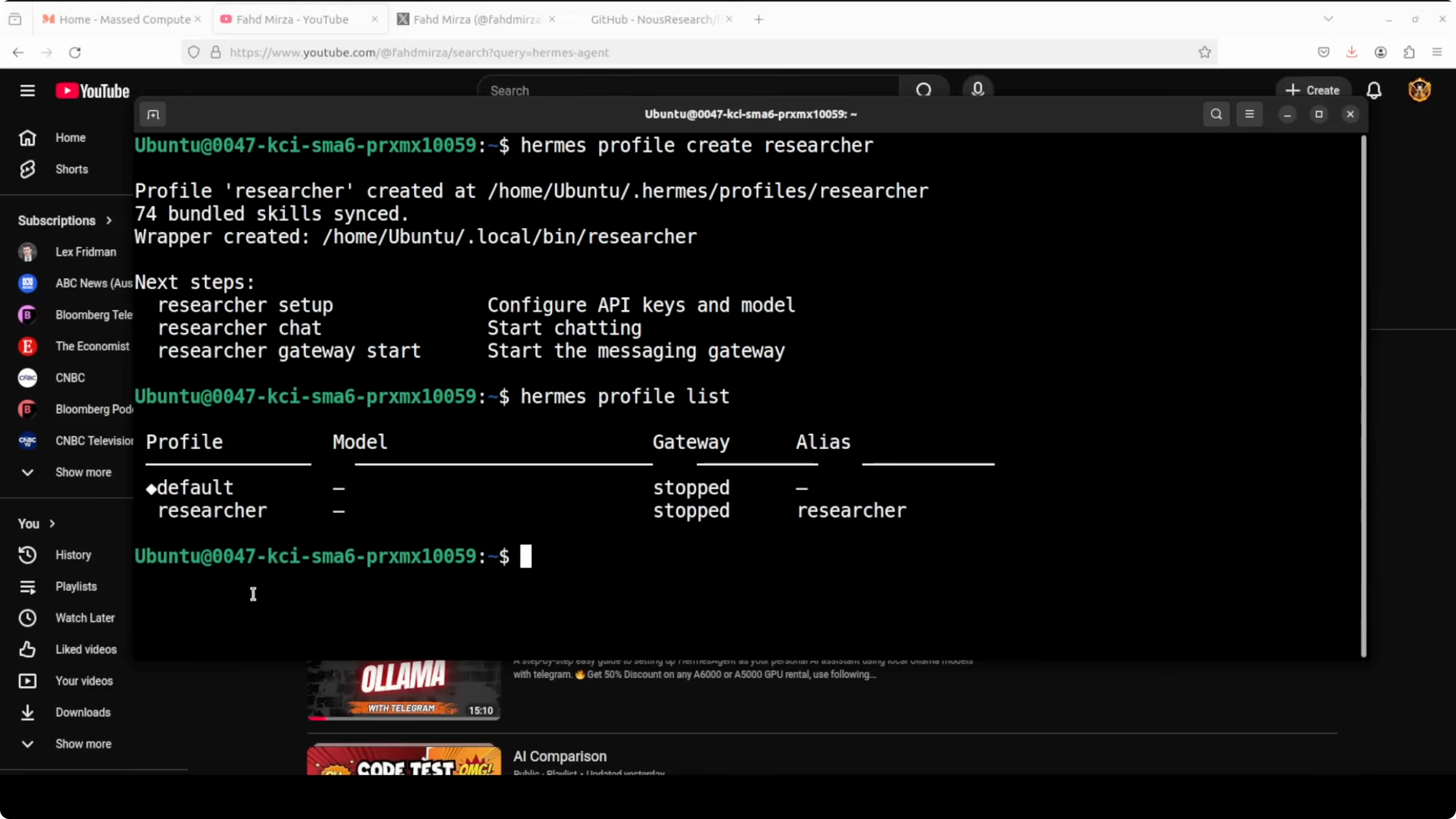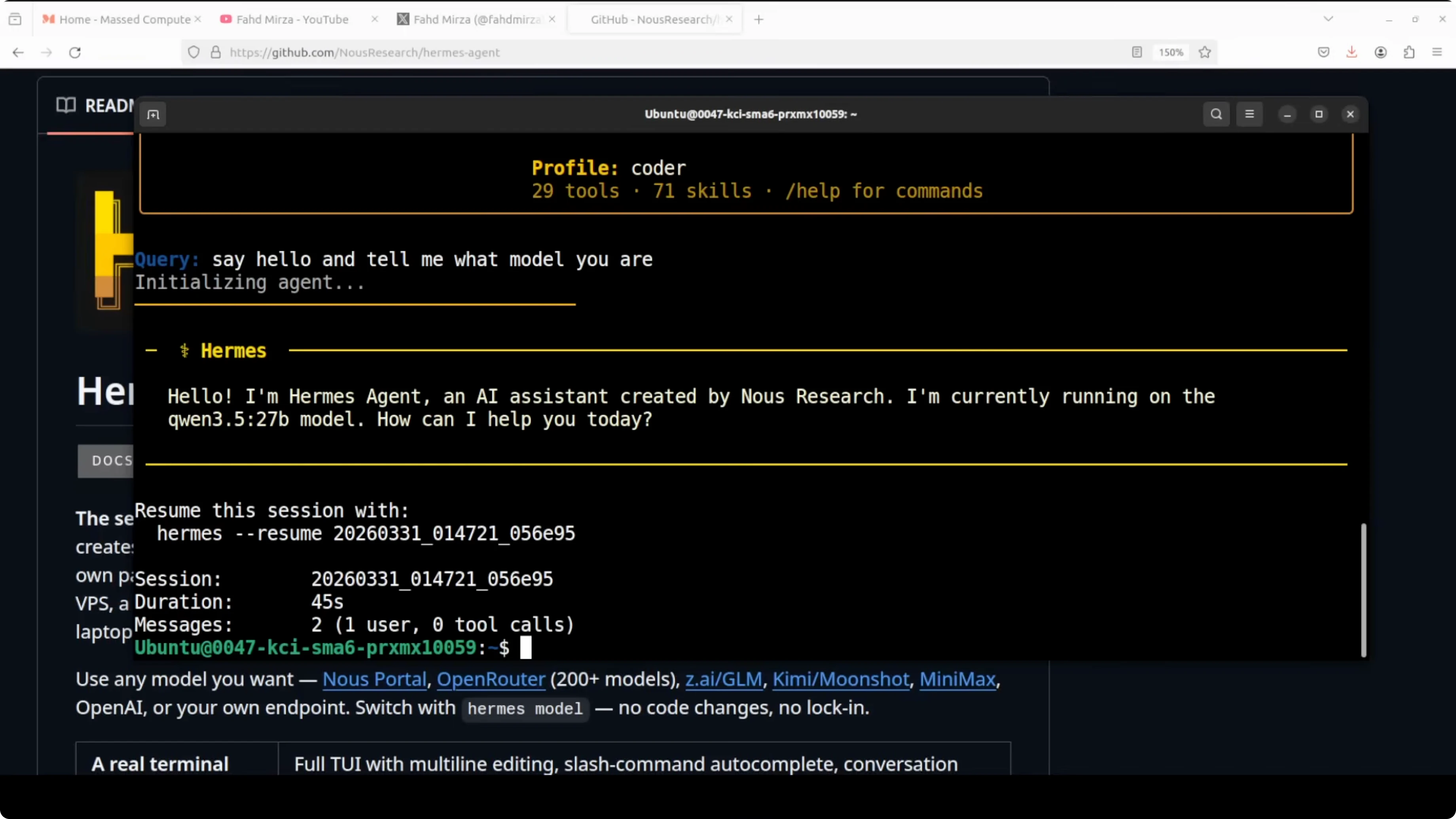 Hermes Agent now supports multi-agent profiles, which means I can run separate AI agents for separate purposes without them interfering with each other. I set up three independent Hermes agents on the same Ubuntu machine at the same time. One runs GLM 5.1 in the cloud, one runs a local Qwen 3.5 27B with Ollama, and one runs MiniMax M2.7, with zero data leaving the machine.
