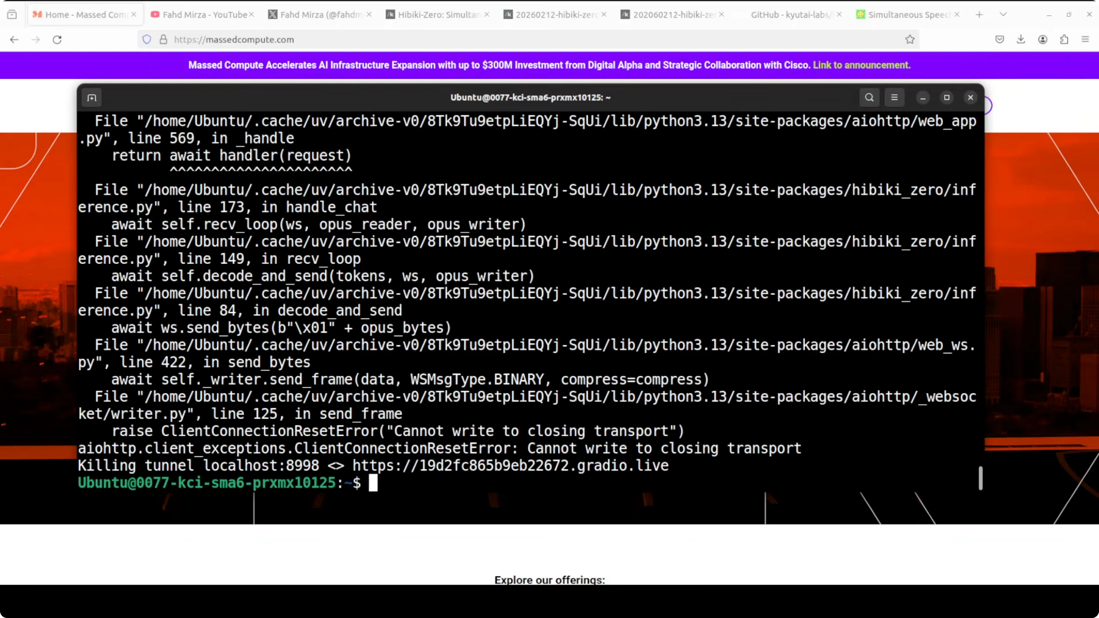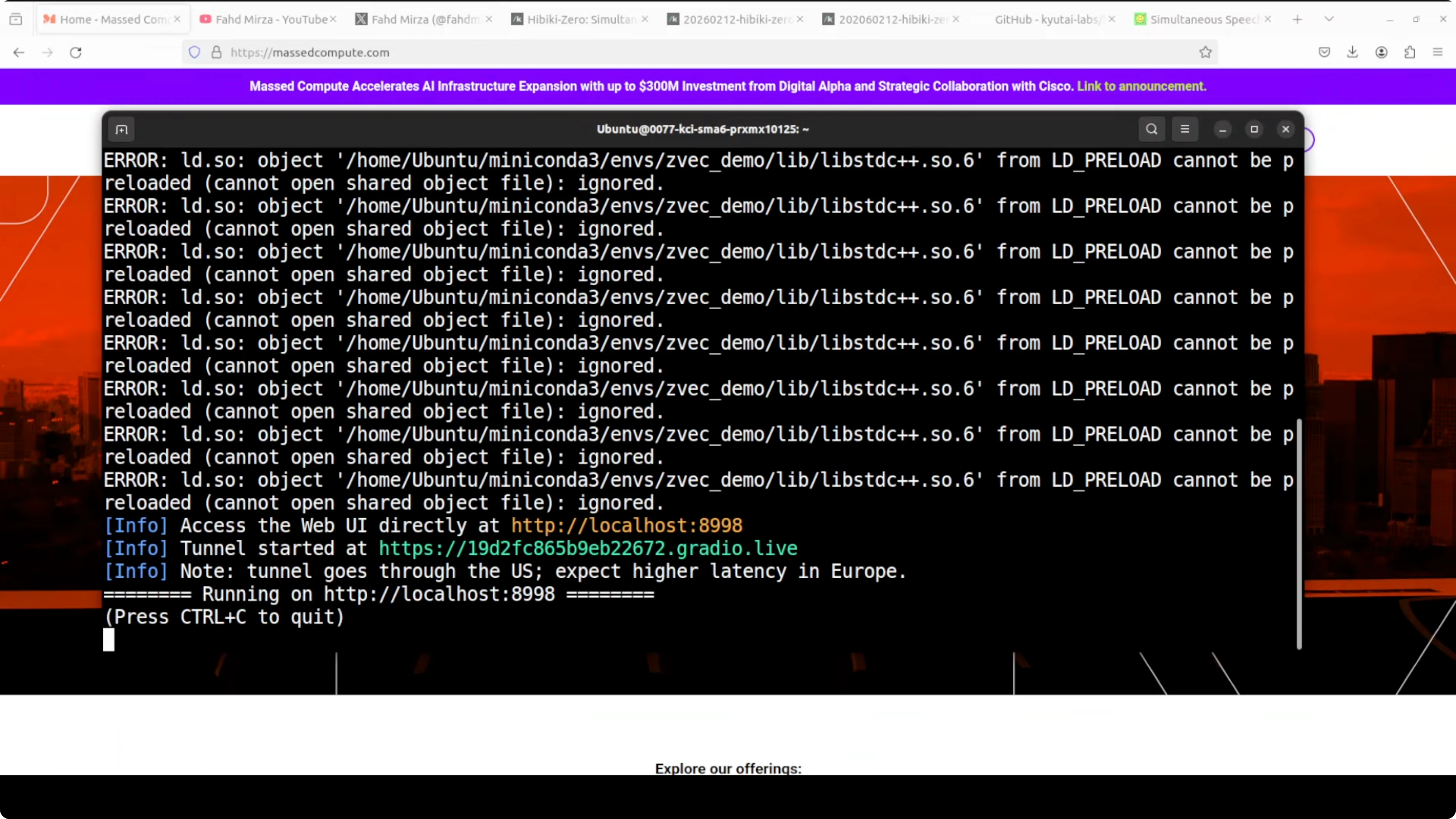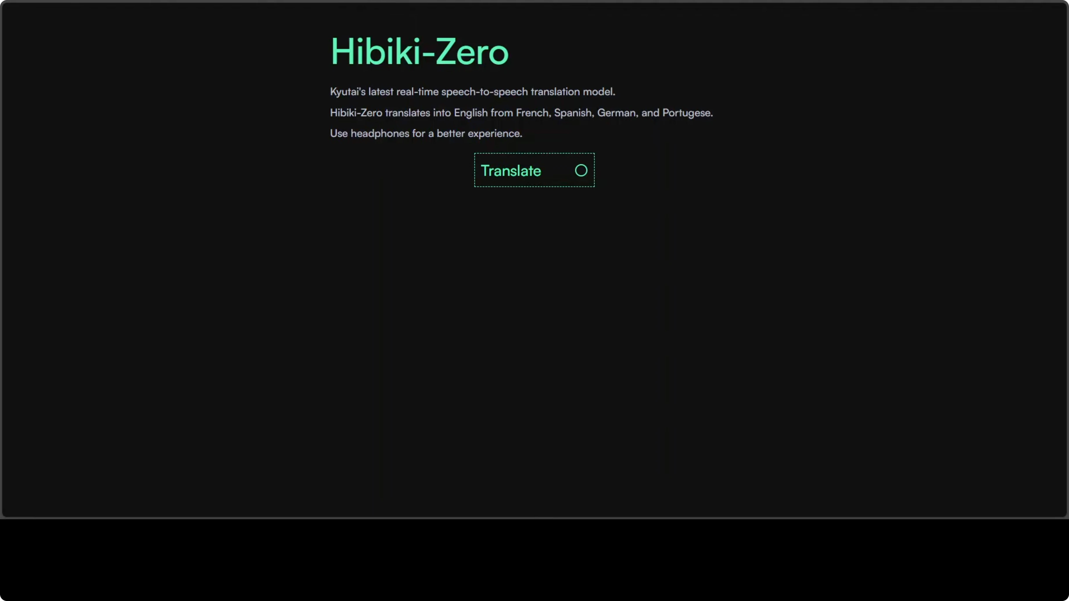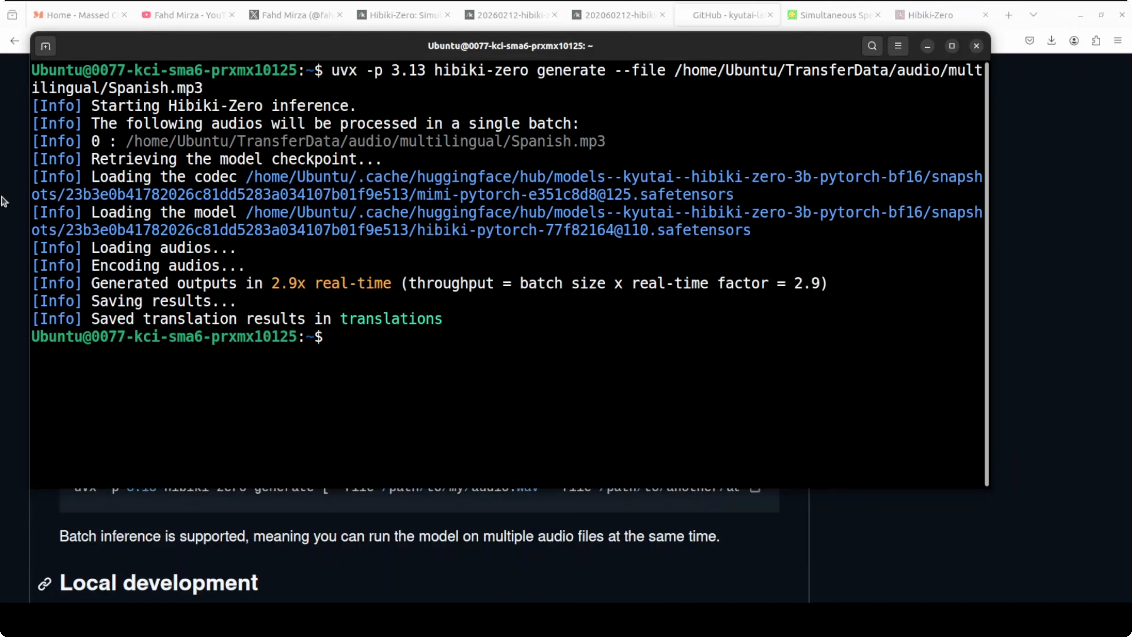- Run the UV command that serves the Hibiki Zero model locally and exposes a Gradio demo for testing.