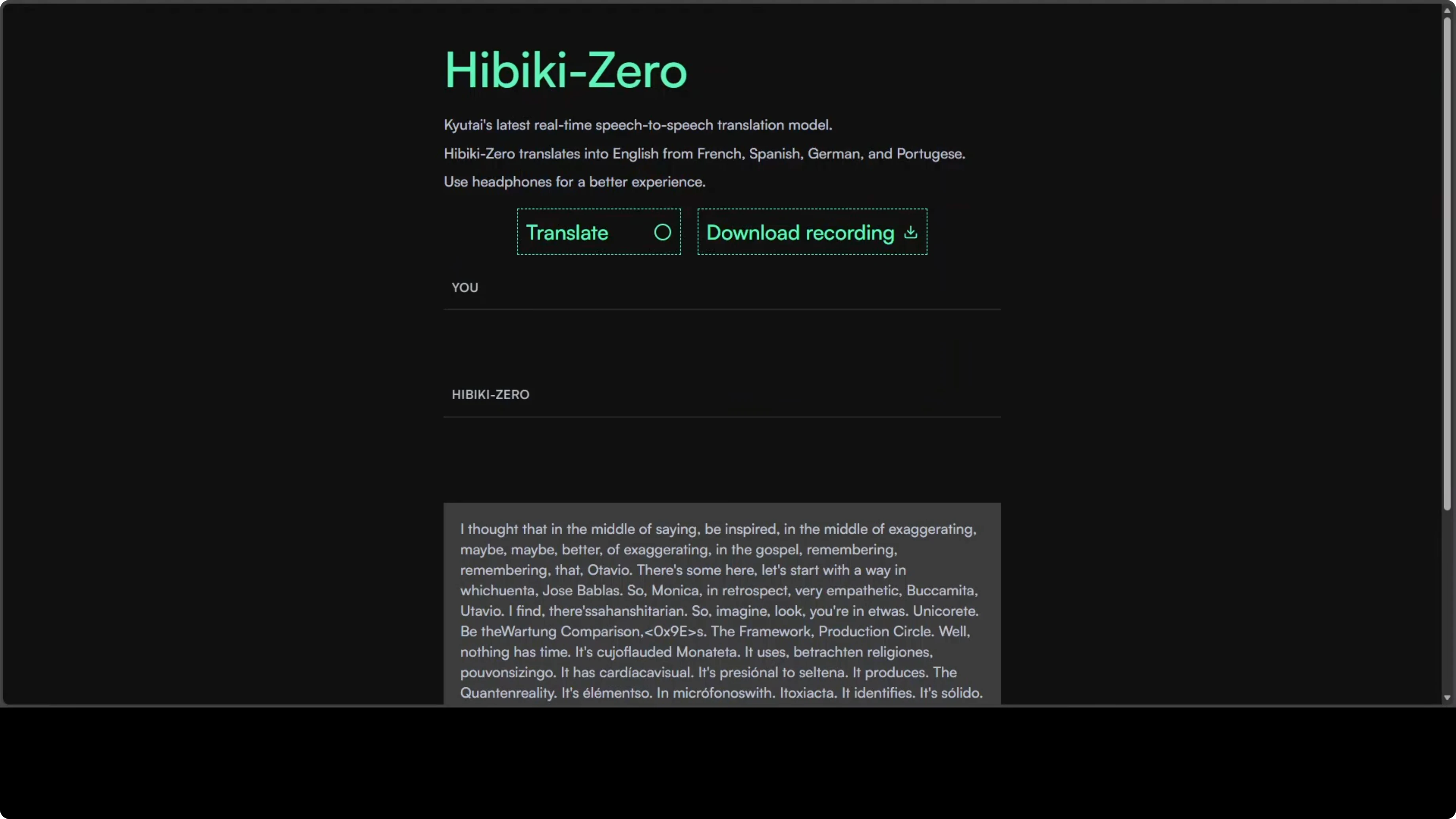 - Live speech-to-speech translation from French, Spanish, Portuguese, and German into English.