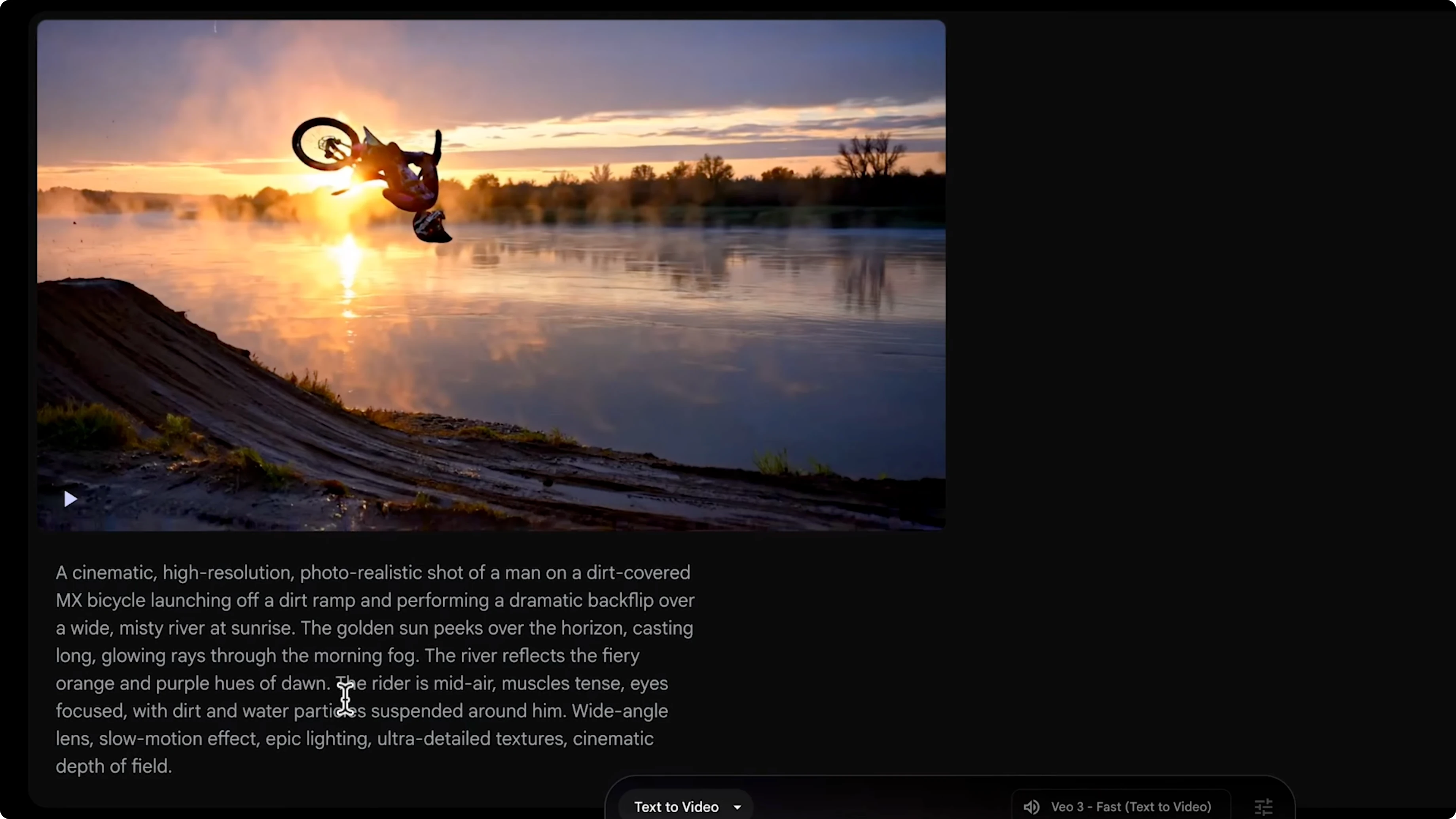 - Simple example prompt idea: jumping over a river at sunrise doing a back flip.