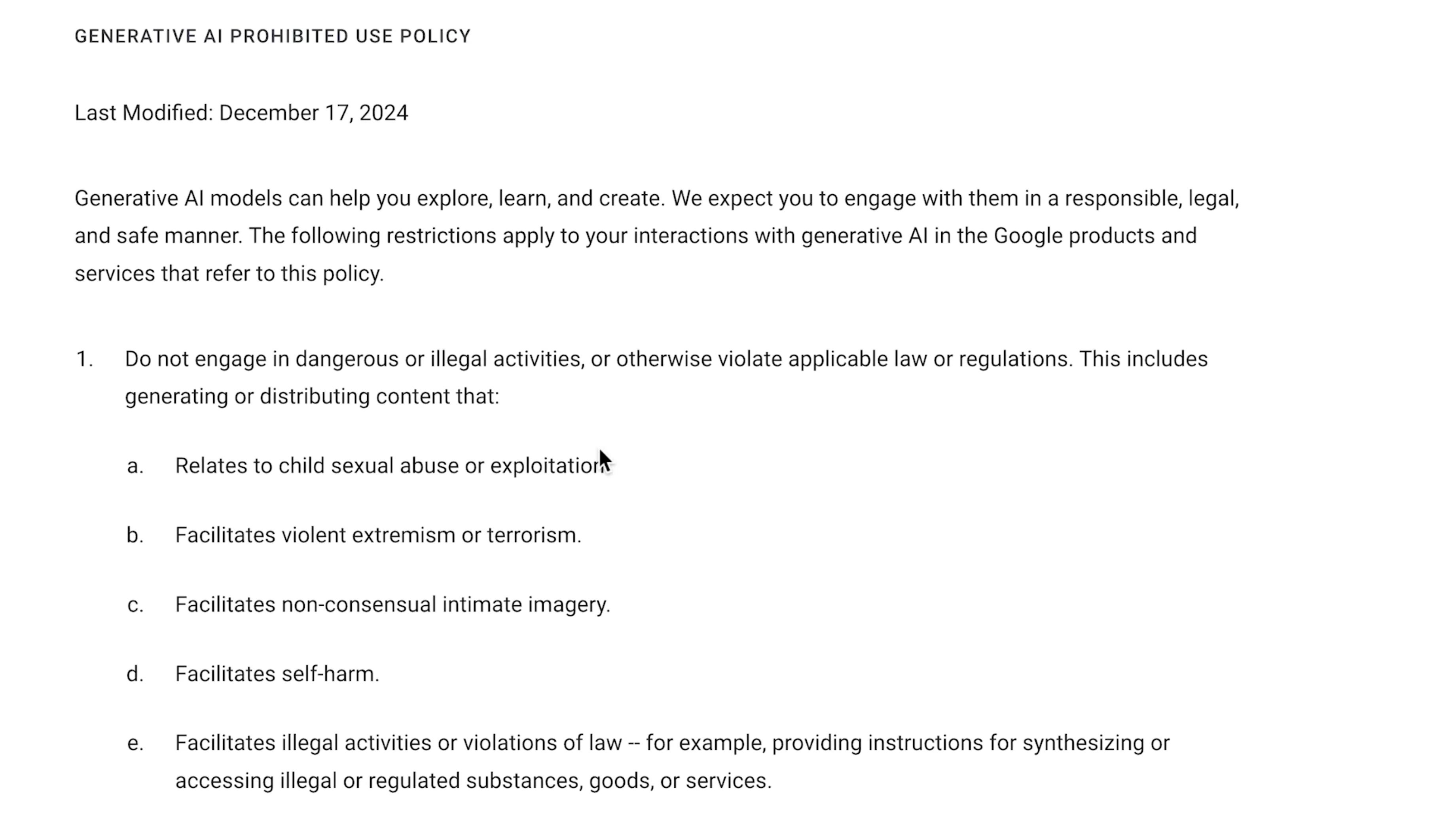 - Content that relates to child sexual abuse or exploitation.