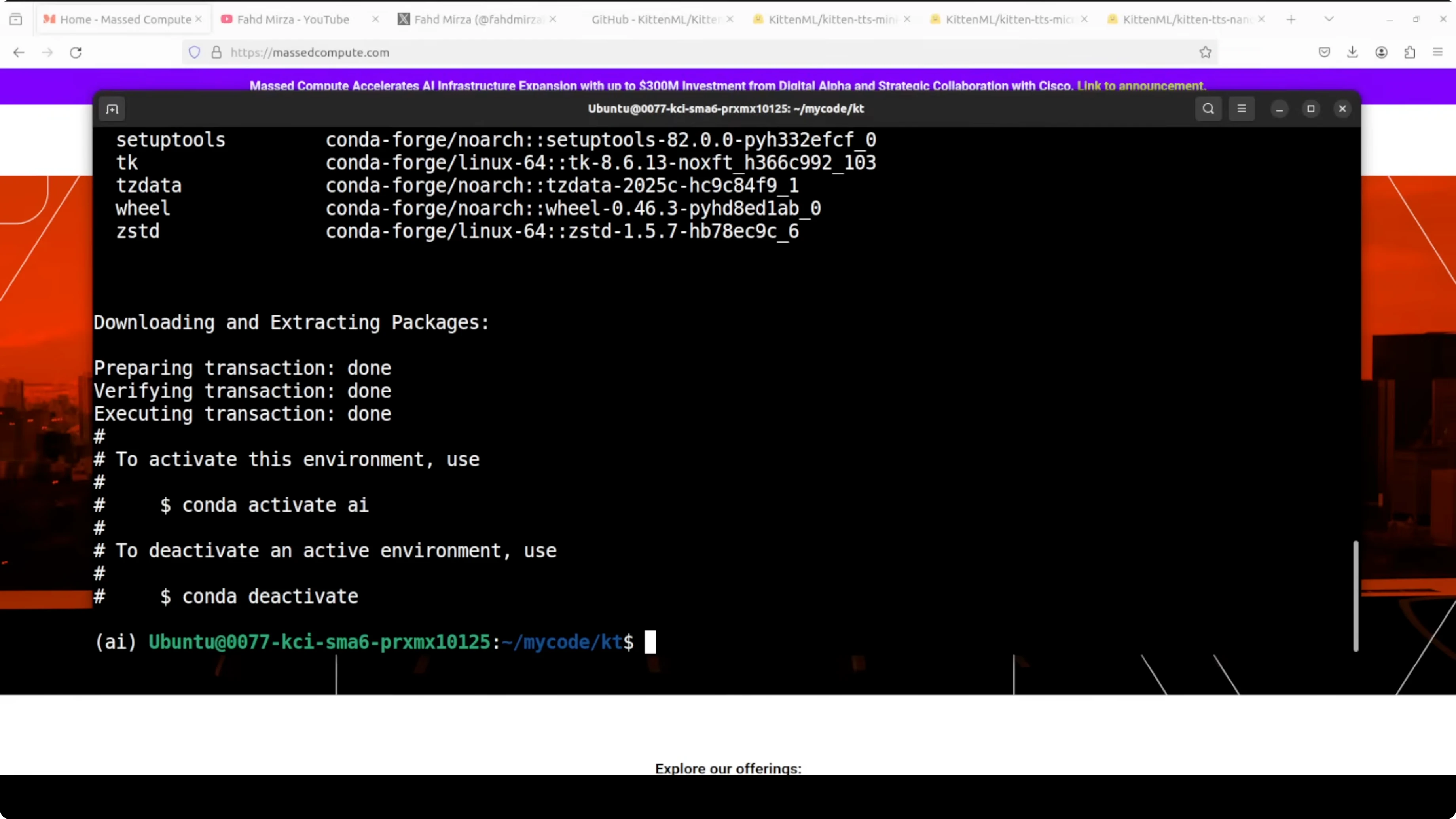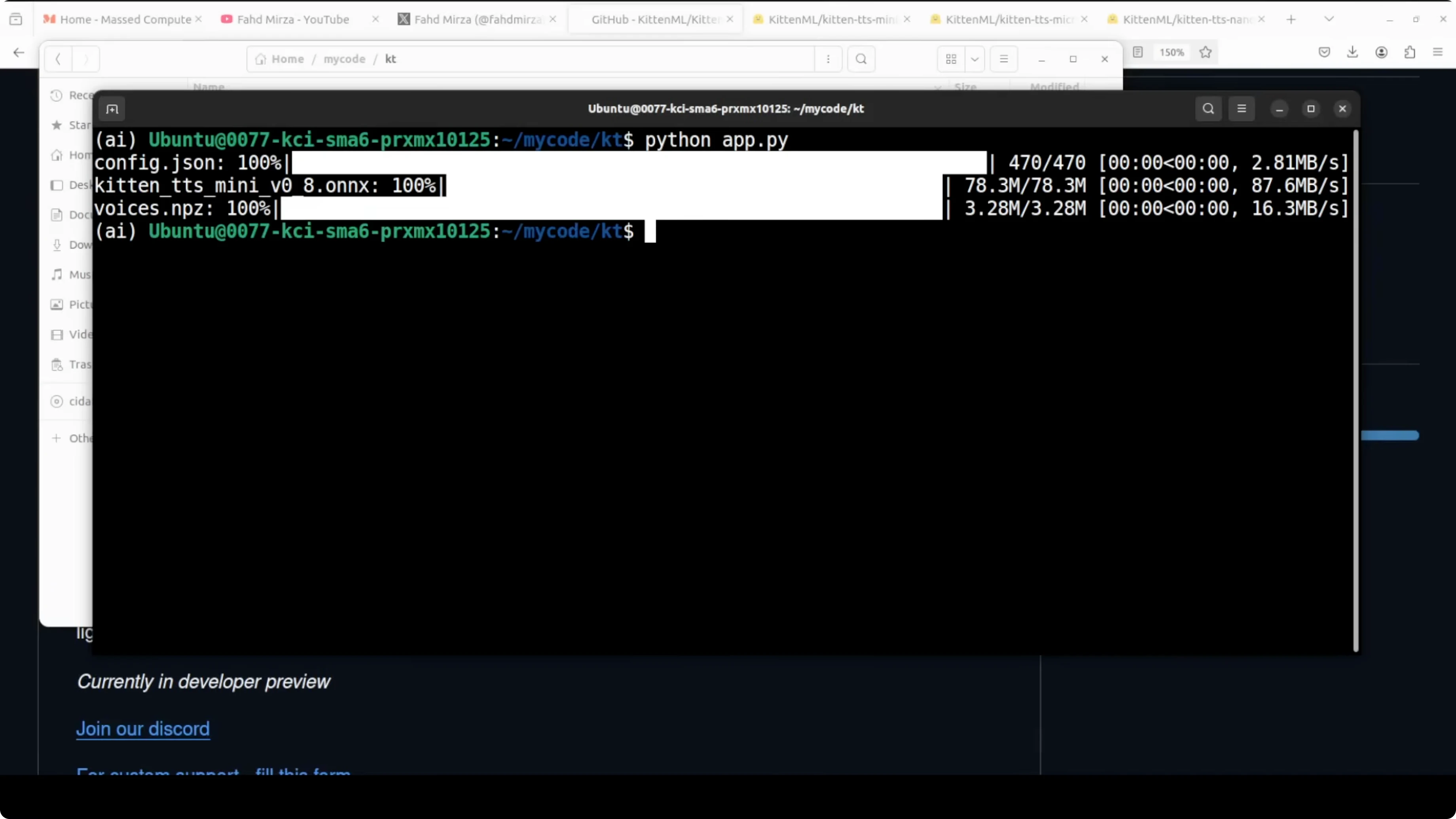 I am using an Ubuntu system. I do have a GPU card on this machine, but I am using CPU only and will show that shortly. The installation of KittenTTS is quite simple.