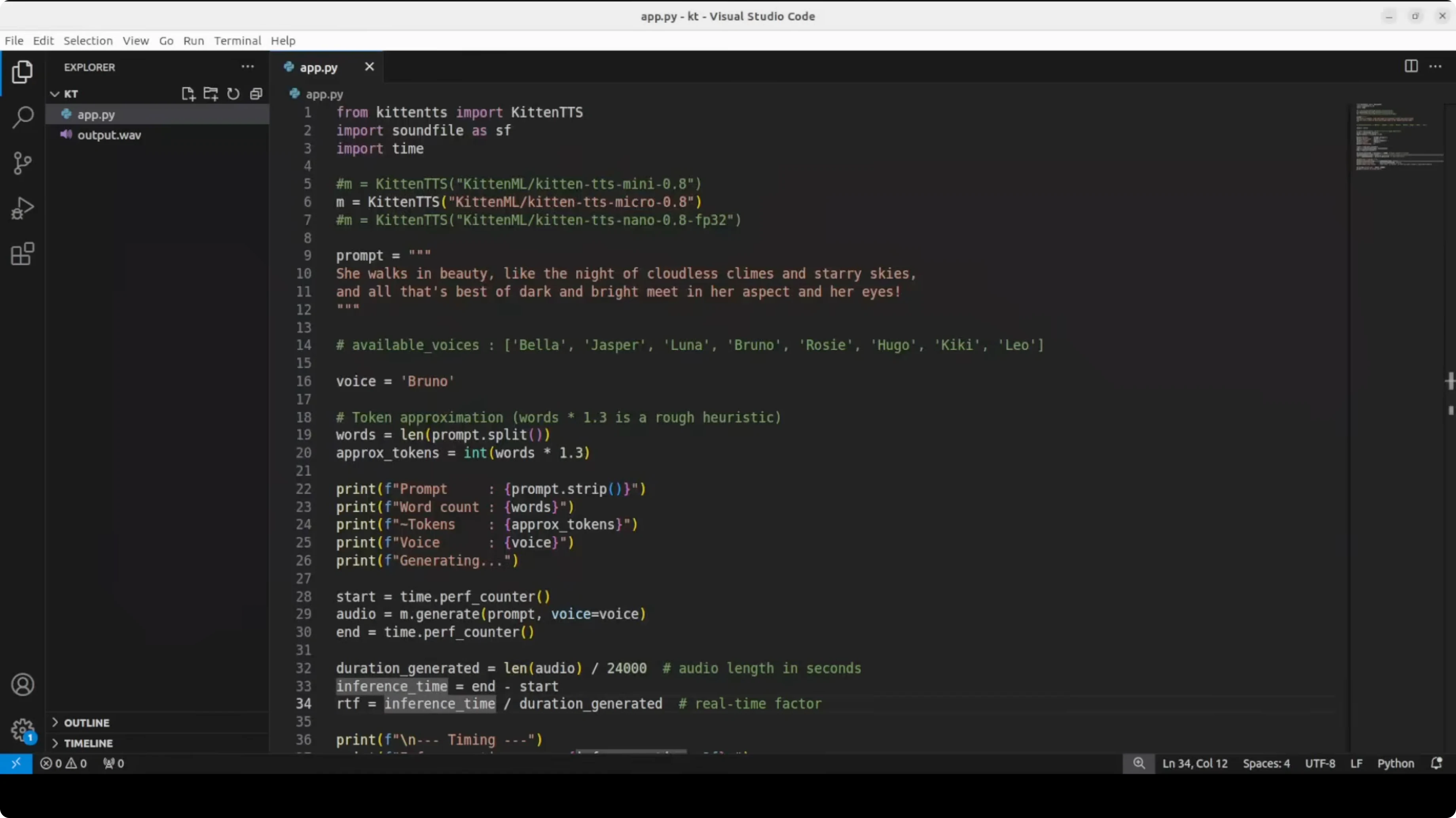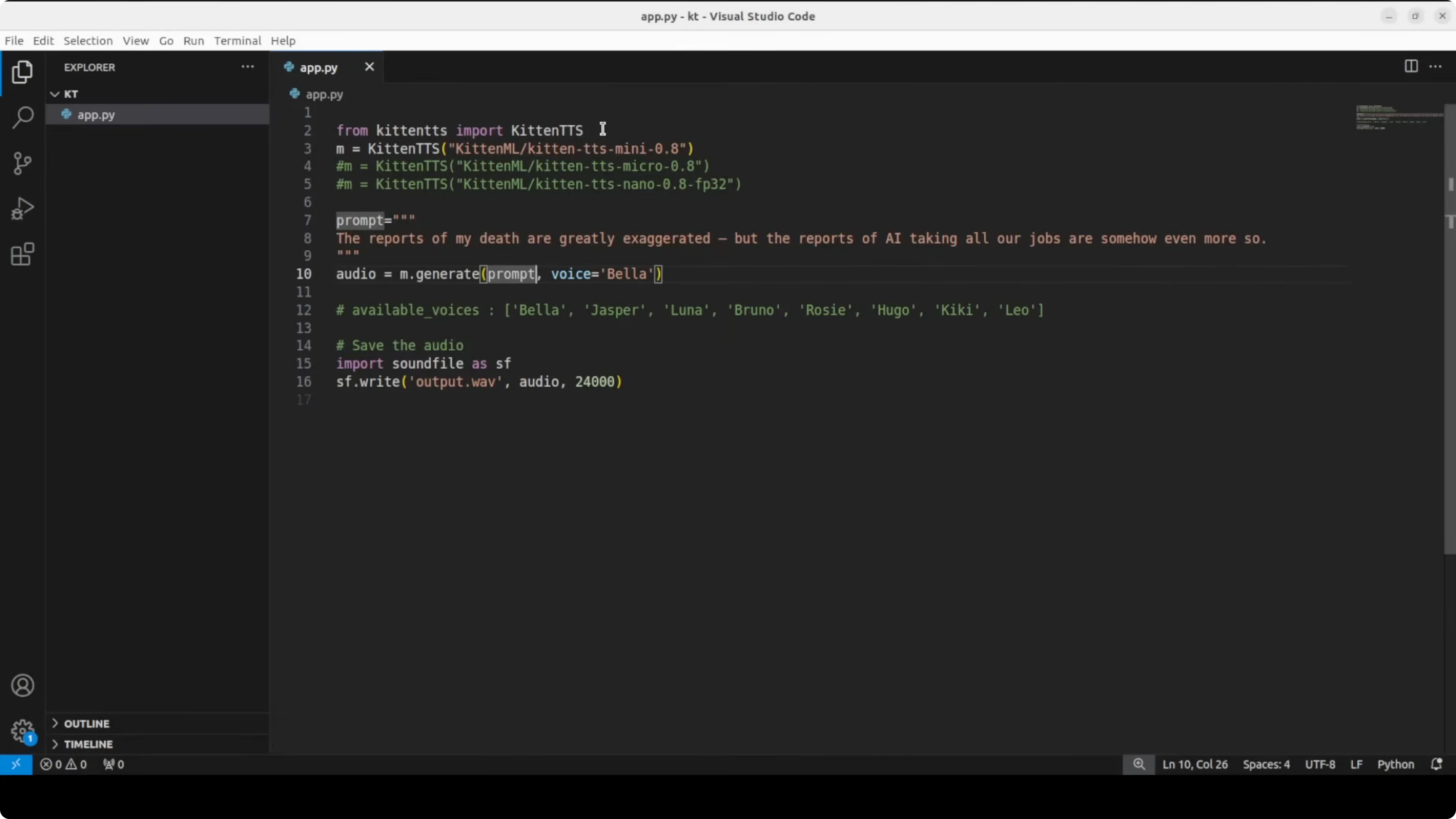 I wrote a simple app.py where I first import the library we just installed. First up I am going to test the mini model, and I will test the others later.