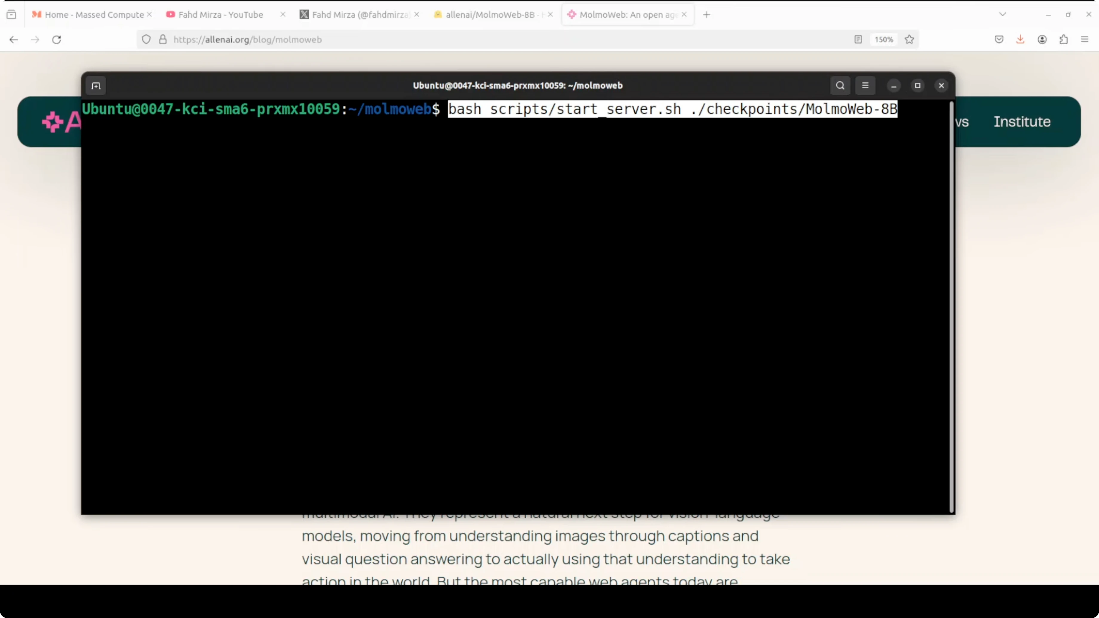 uv run python scripts/serve.py --model "$MOLMOWEB_MODEL" --port 8001Confirm the server is running and listening on 8001. Keep this terminal open while you run client requests.