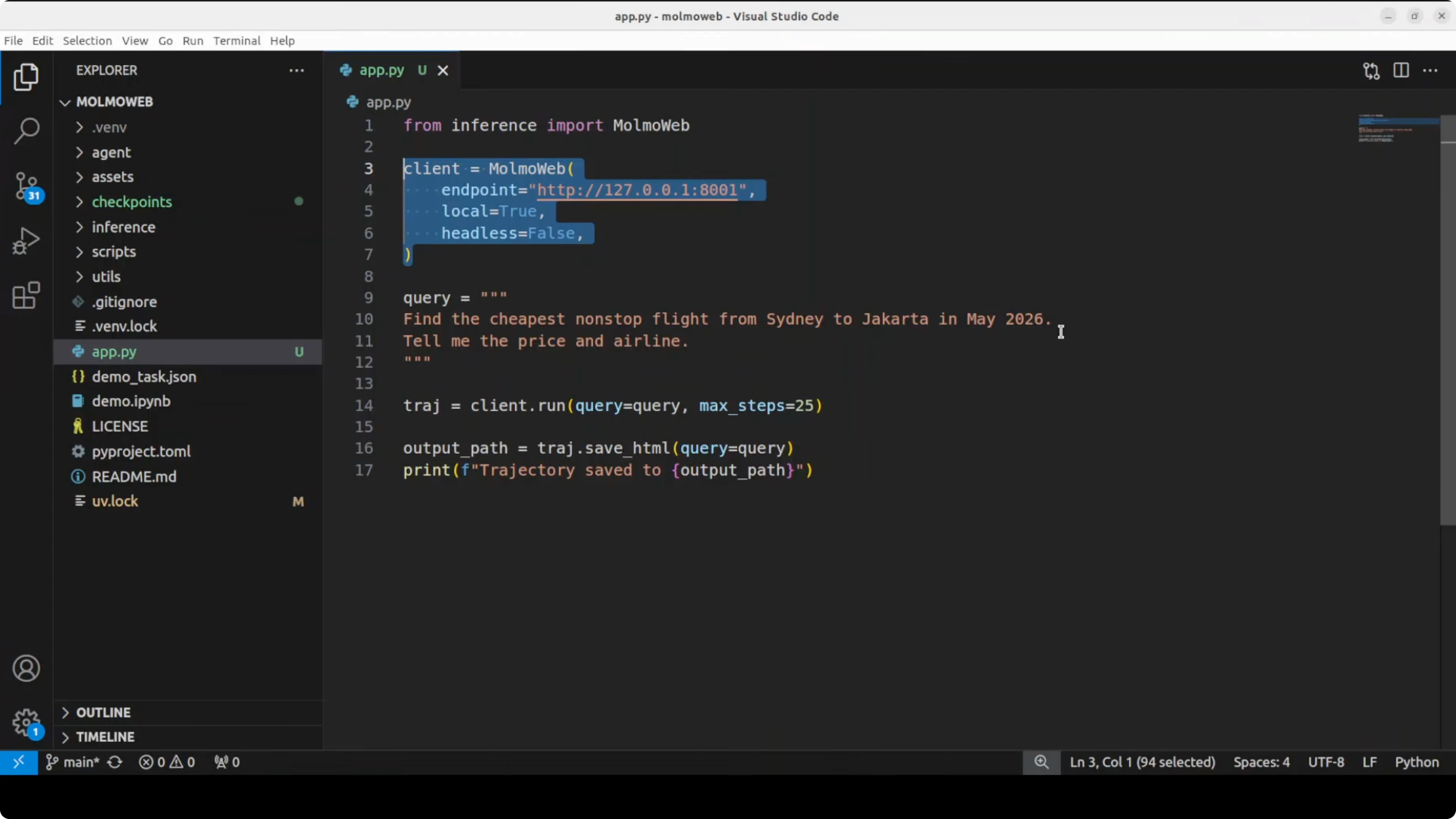 Install MolmoWeb: Open Multimodal Agents for Local Browser Control