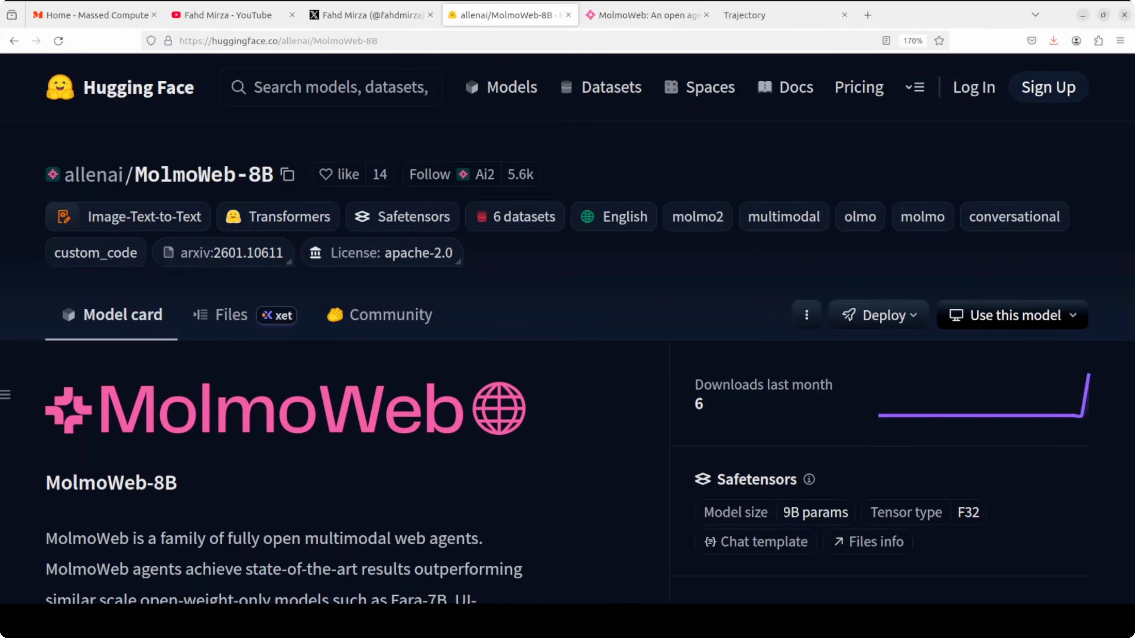 MolmoWeb is fully open and straightforward to get running locally. The weights, training data, and evaluation tools are all publicly available, which makes experimentation and benchmarking simple. If you work with multimodal agents that act through a real browser, this is a solid option to add to your local toolchain.