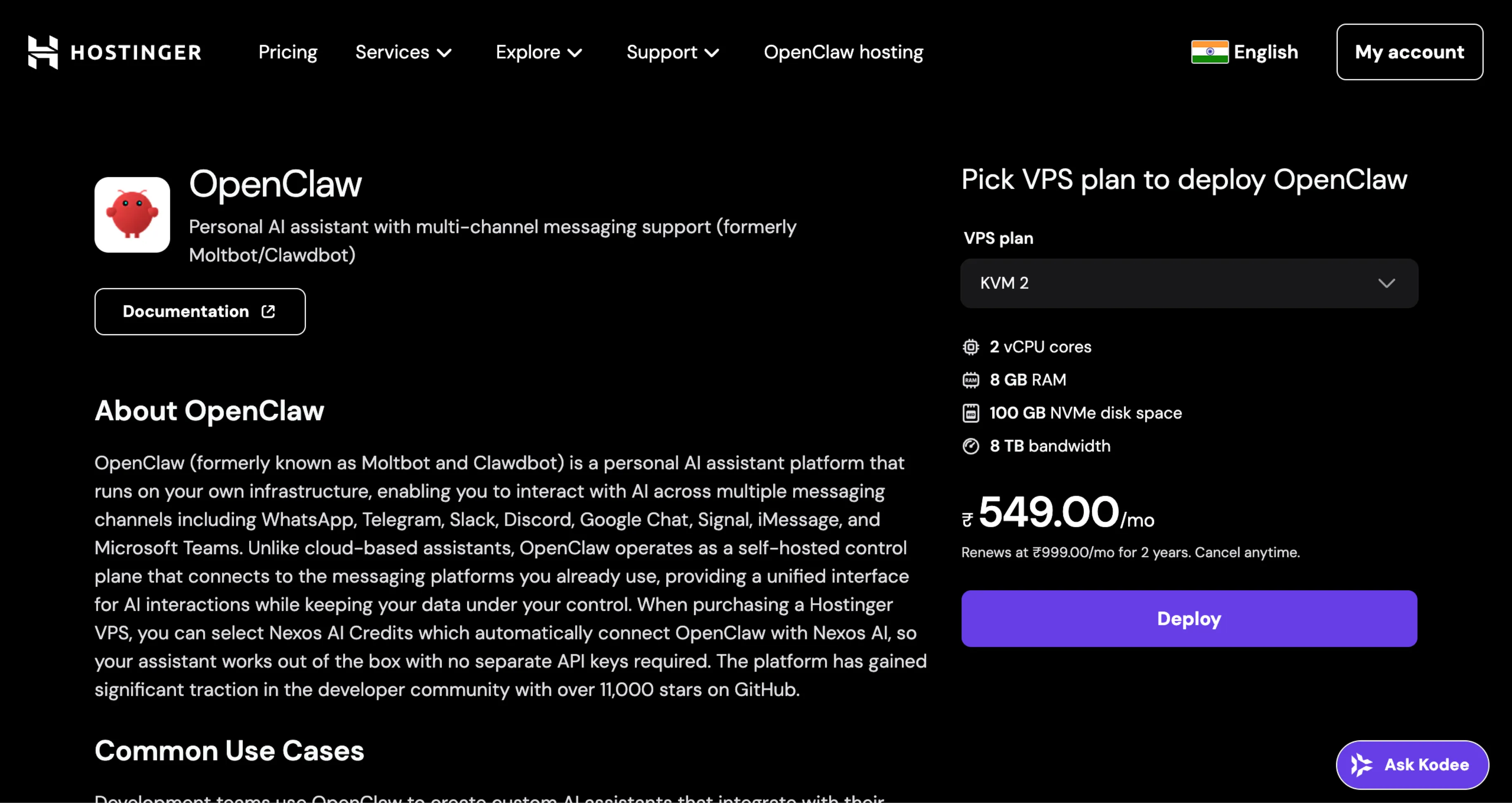 You can easily deploy OpenClaw on a VPS by simply clicking deploy.