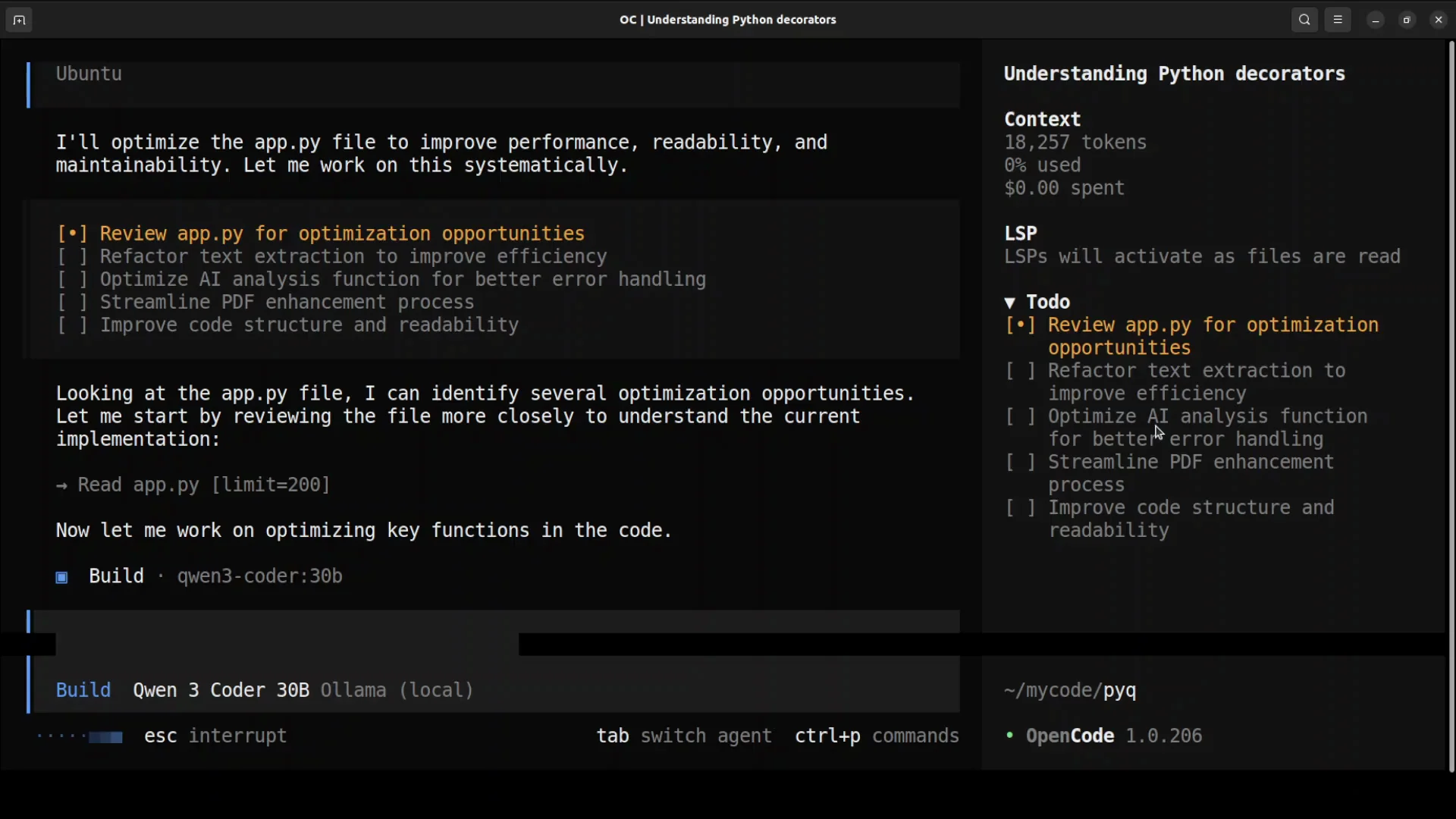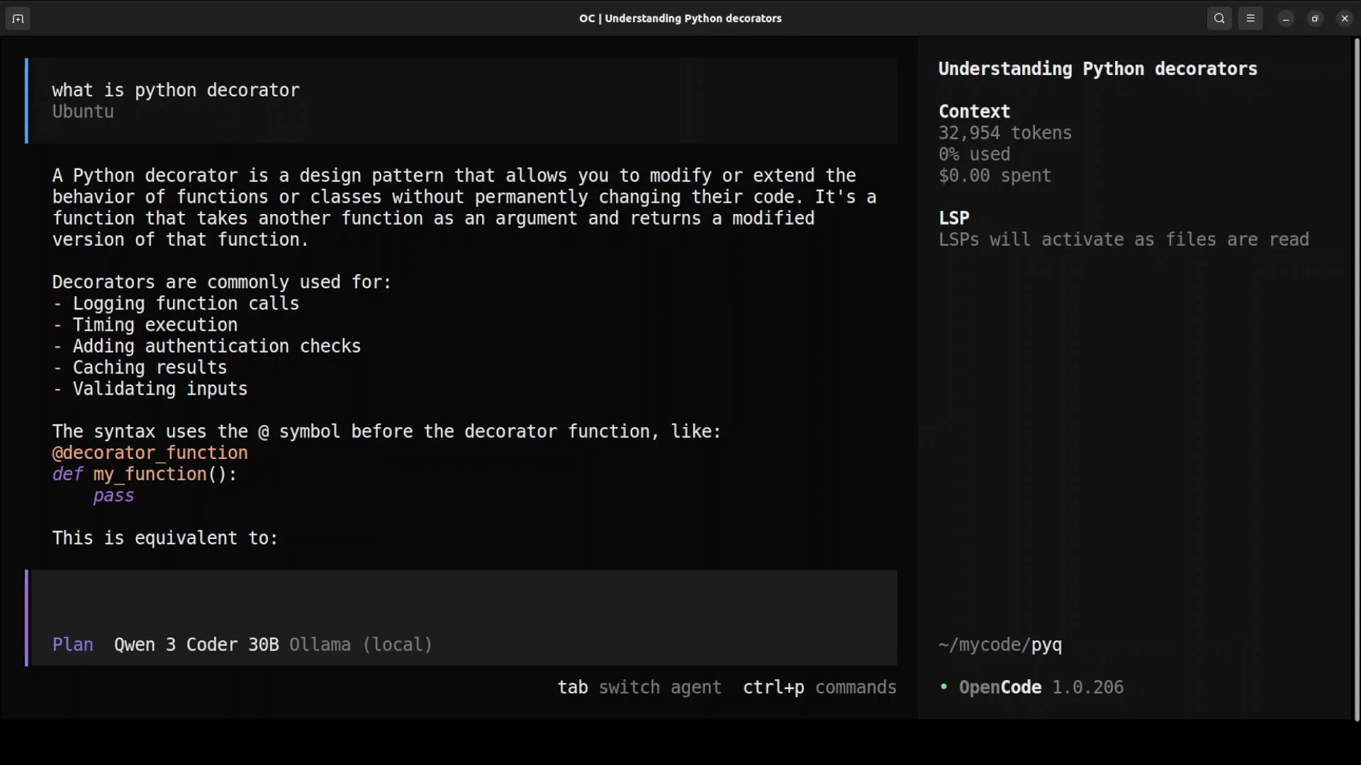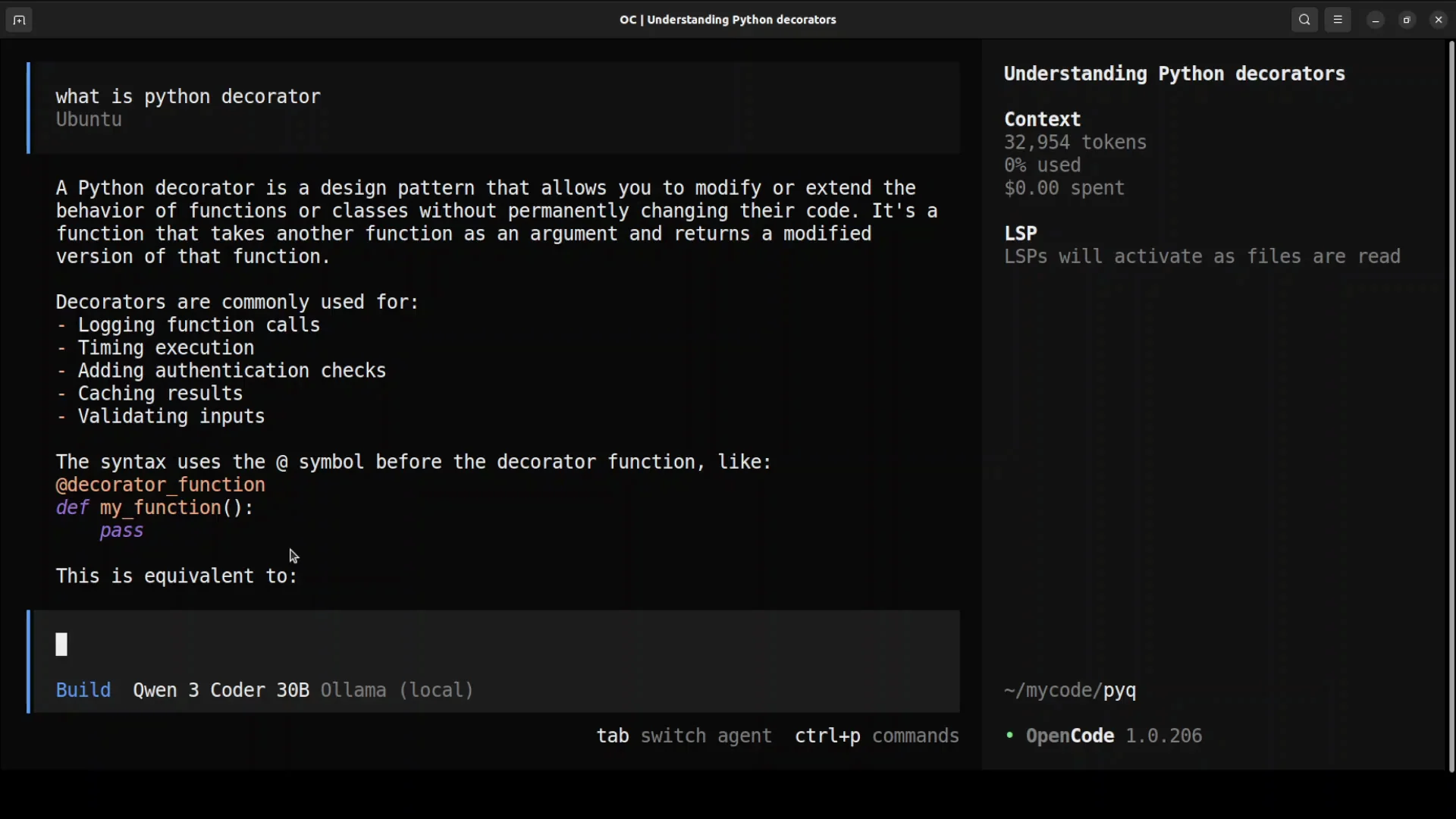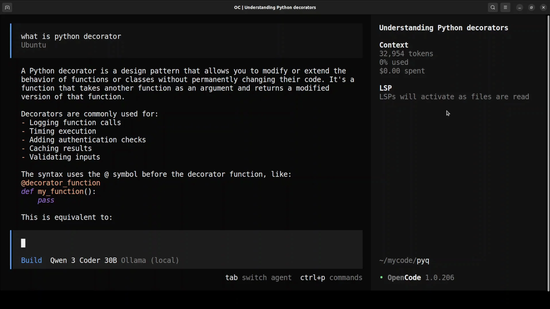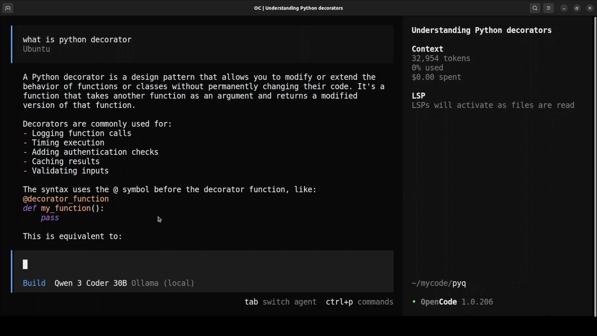 OpenCode is an open-source AI coding agent that I am installing with Ollama on an Ubuntu system with a GPU. I am using the Qwen 3 Coder 30B model, but you can use any model of your choice.