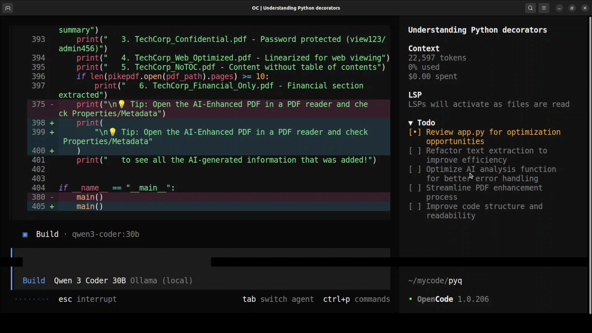 app.py. It will review and optimize it. - On the right side there is a to-do list. It tracks the steps and ticks them off as it proceeds.