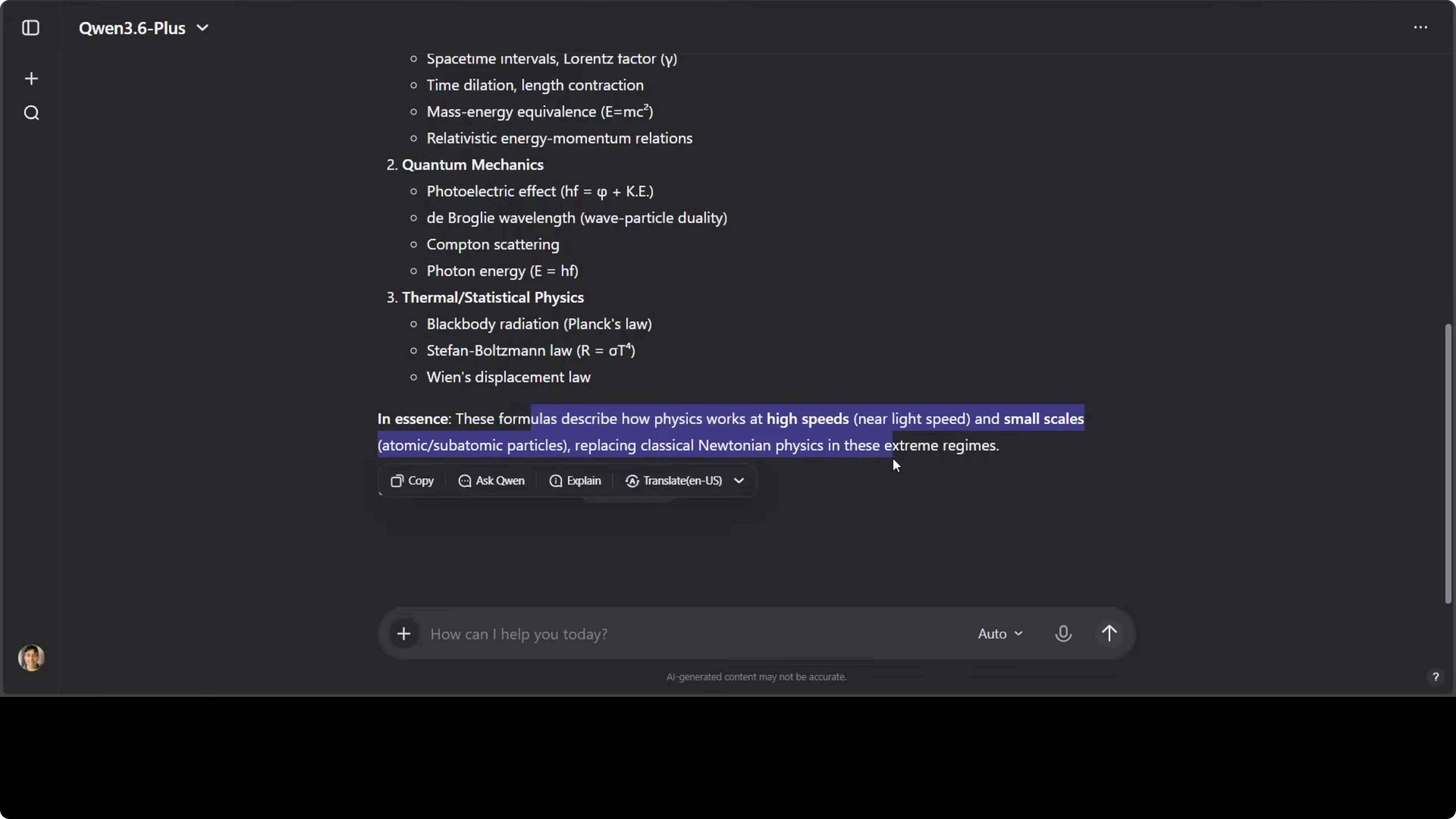 The model identified modern physics topics like special relativity, quantum mechanics, and thermal statistical physics. The short summary aligned with the notations in the image. It handled noisy handwriting reasonably well.