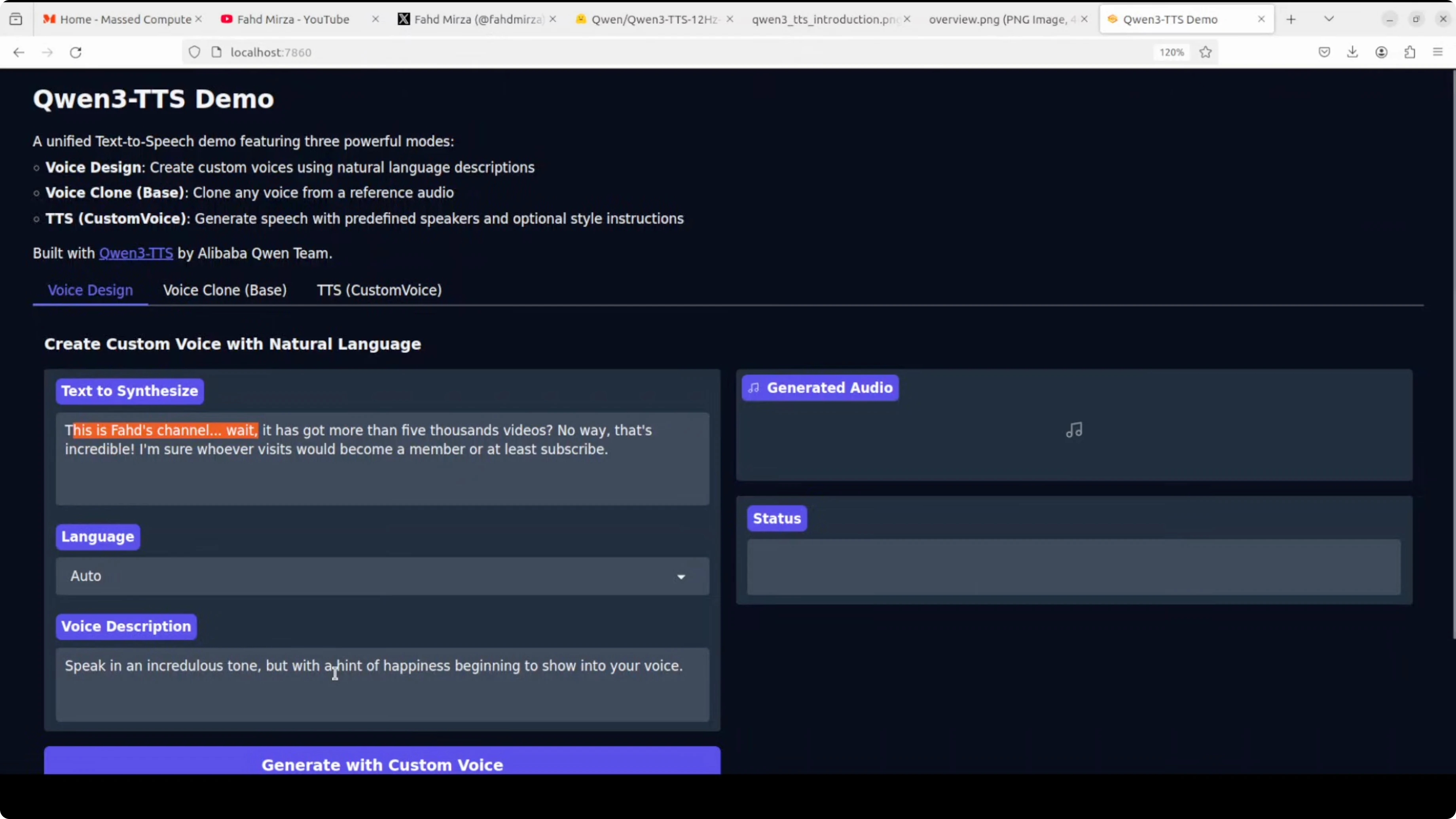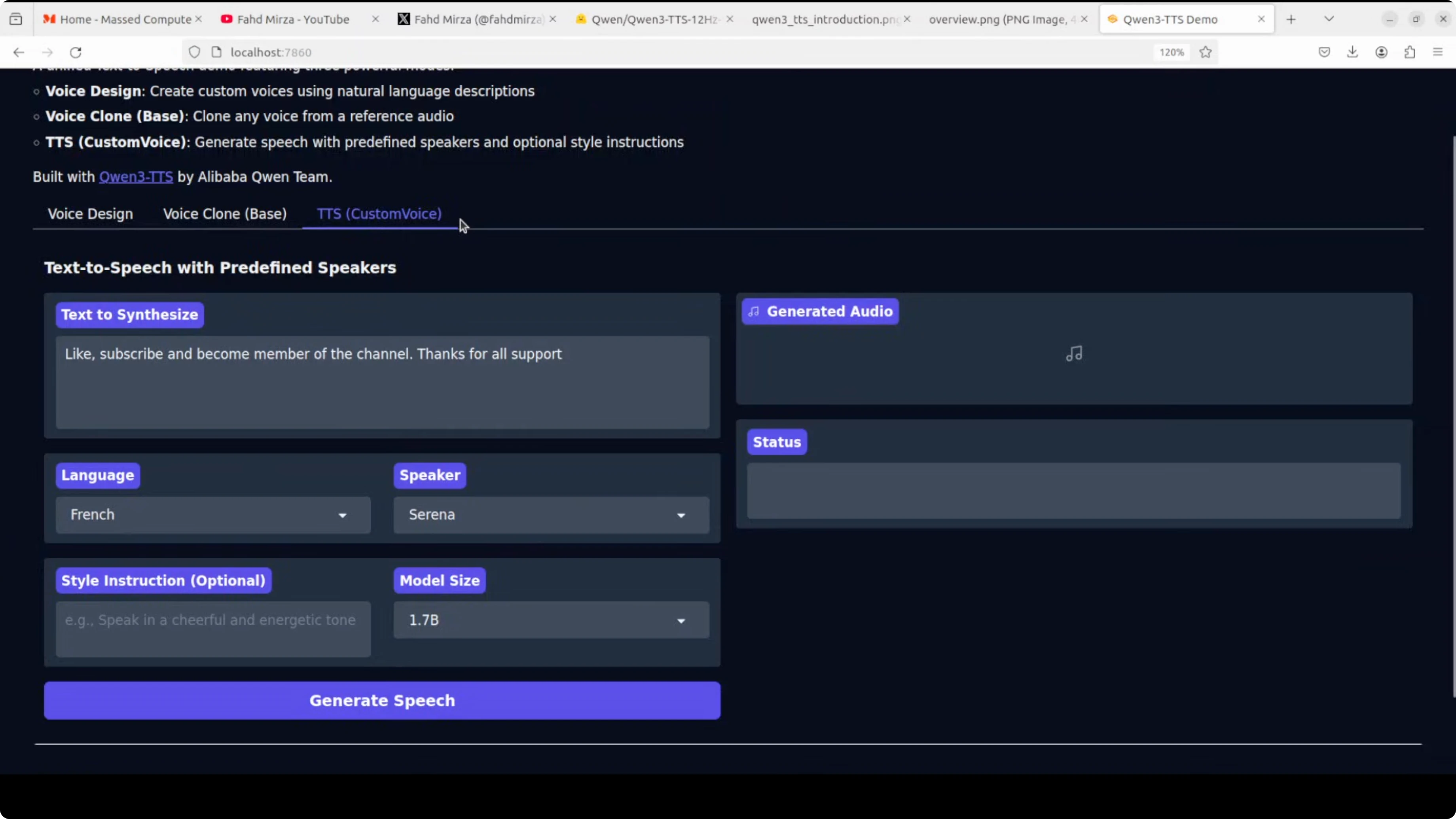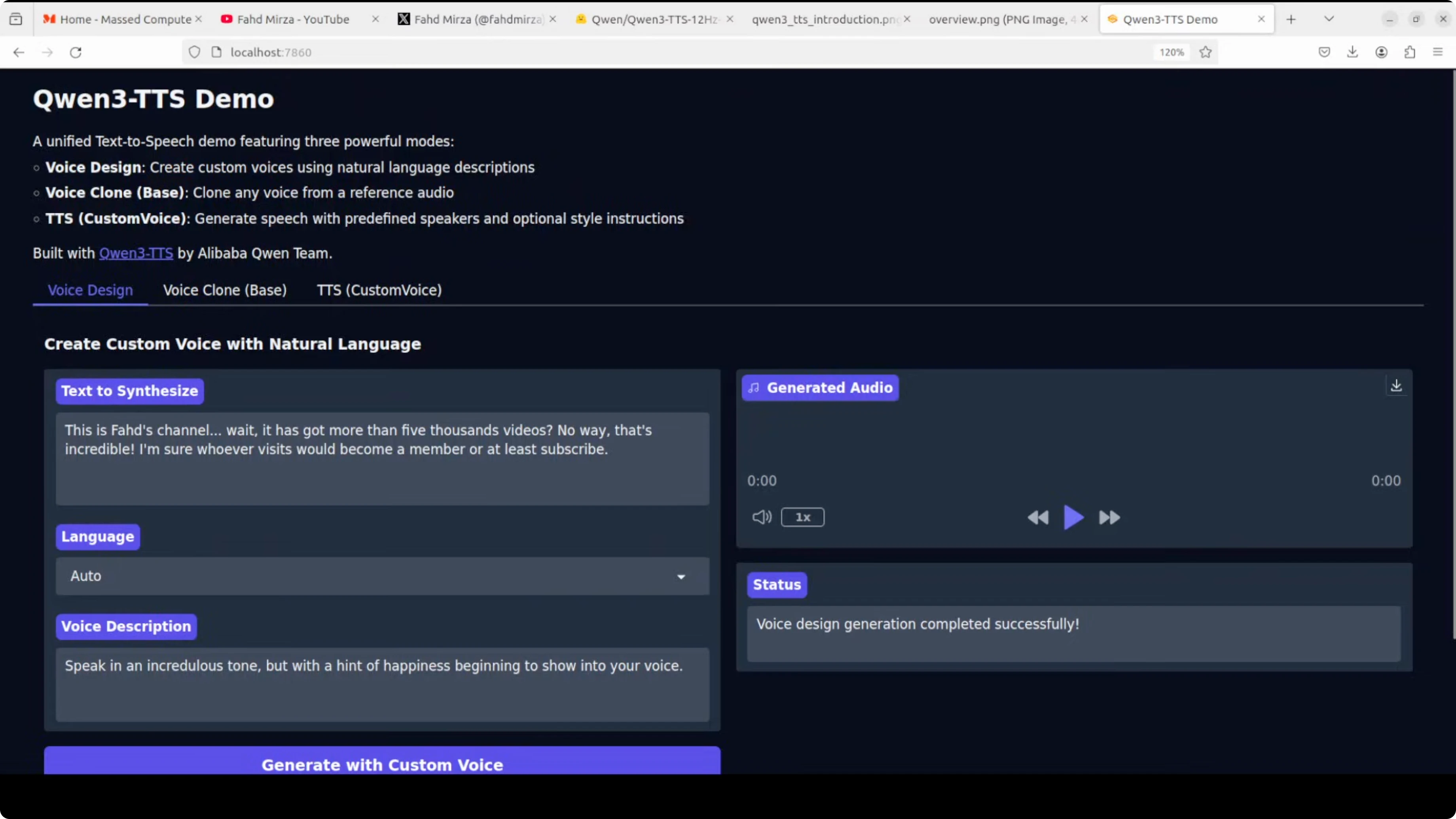 - My VRAM consumption during TTS was close to 5 GB, and I saw it reach about 5.7 GB during custom voice generation.