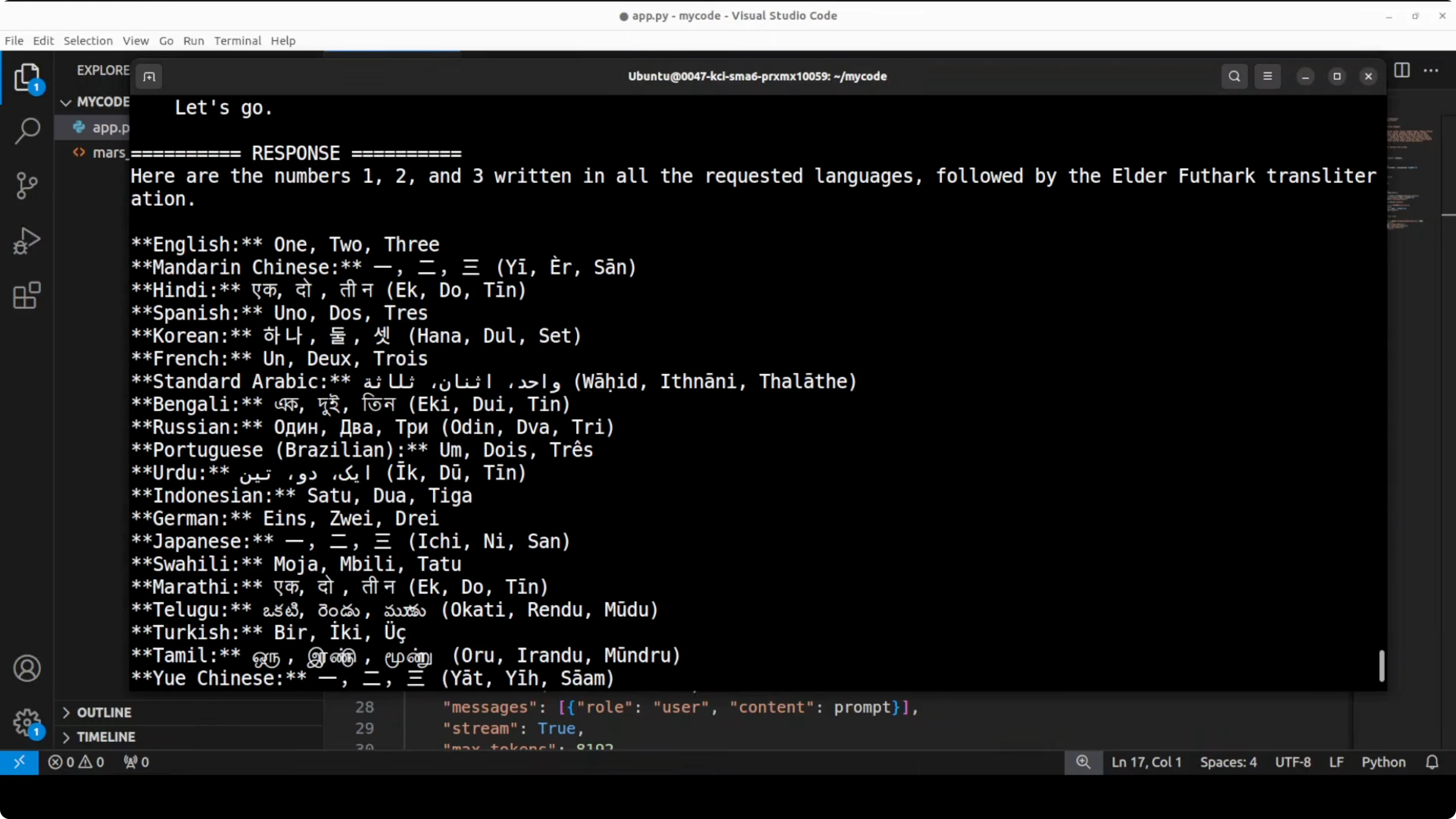 Spot checks for English, Mandarin, German, Turkish, Indonesian, and Urdu looked correct. It was clearly striving for accuracy. I encourage native speakers to verify the rest.