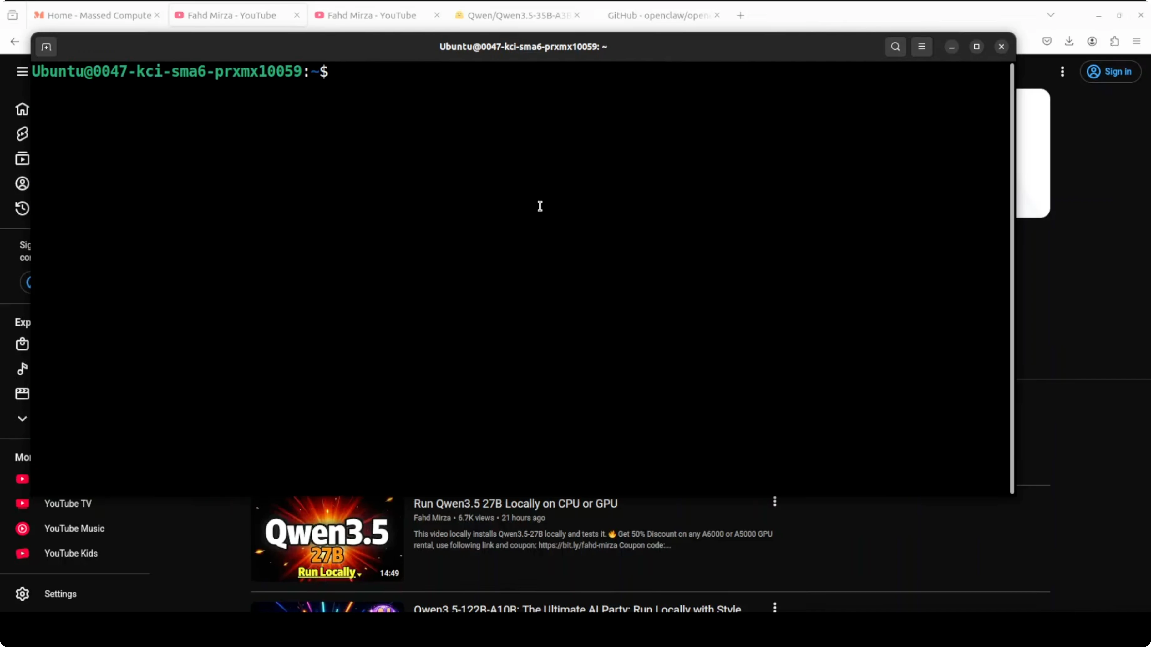 The machine here is Ubuntu with a single Nvidia RTX 6000 48 GB. The model is served on localhost, and I will show the exact steps, the configuration, and how to start the gateway. Once it is up, you can hook it into your channels.