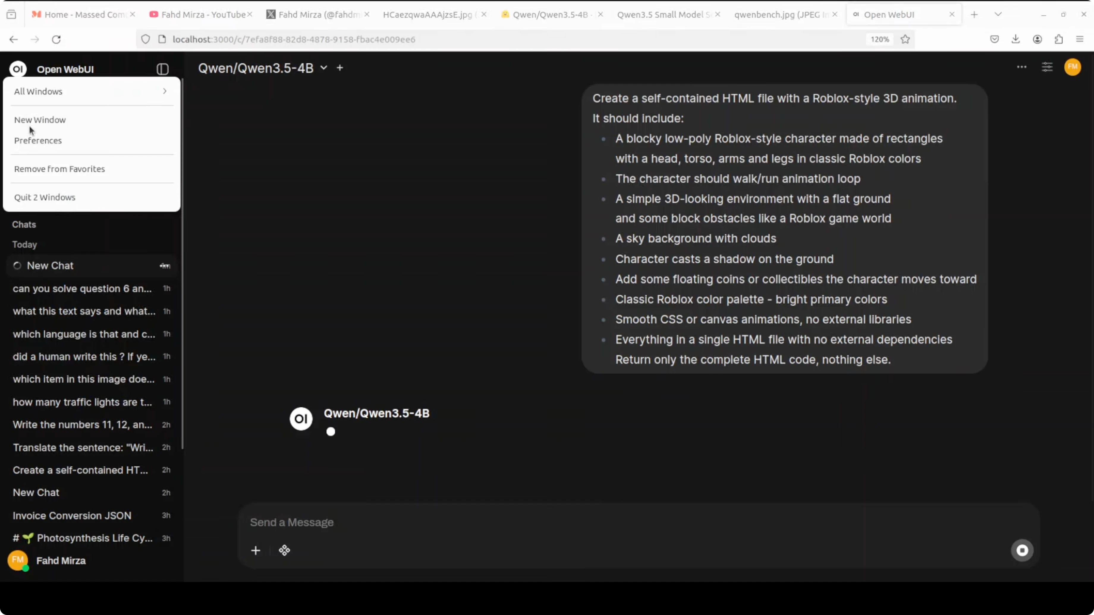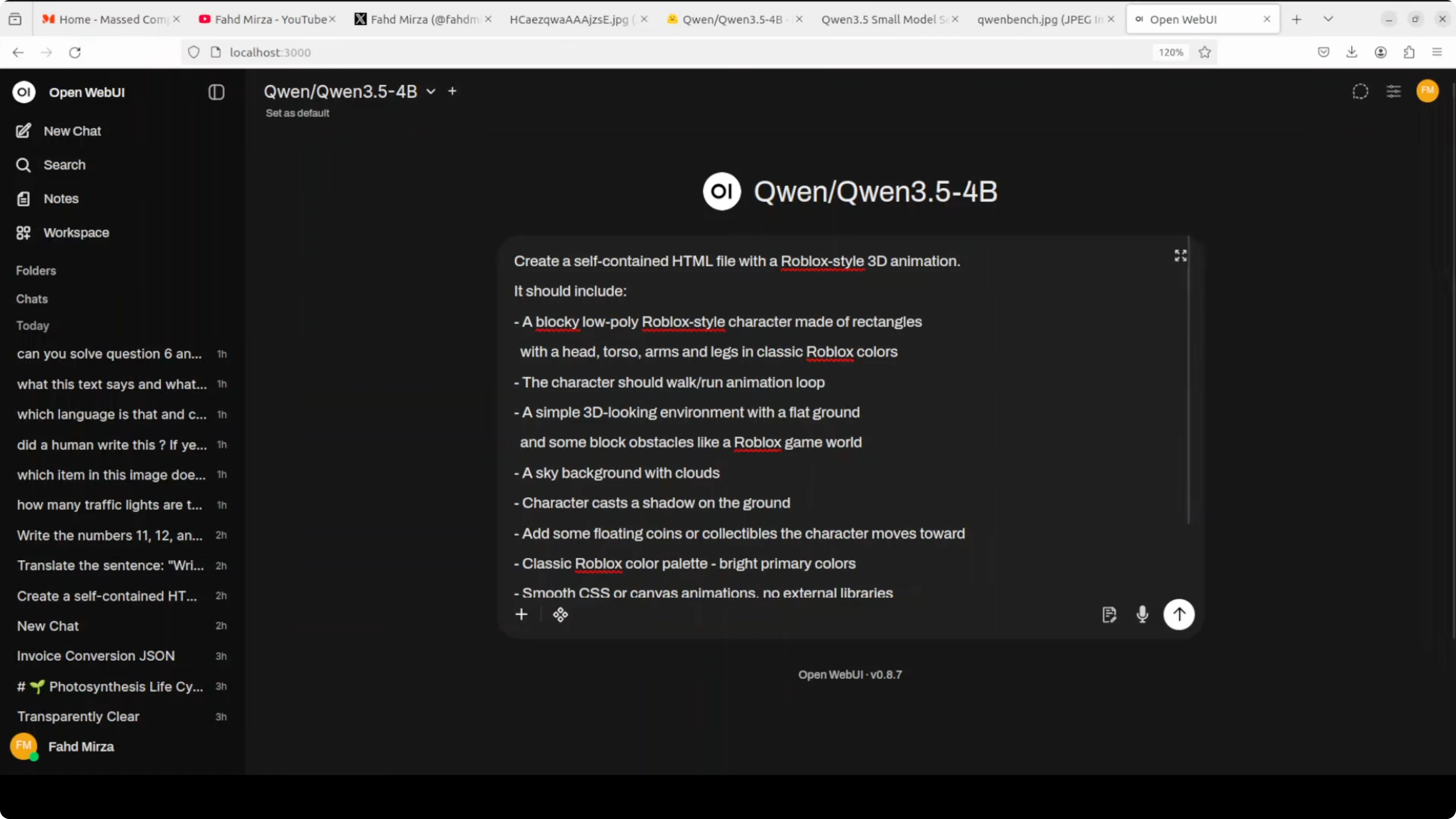 I started with a coding scenario. I asked it to create a self-contained HTML file with a Roblox style 3D animation.