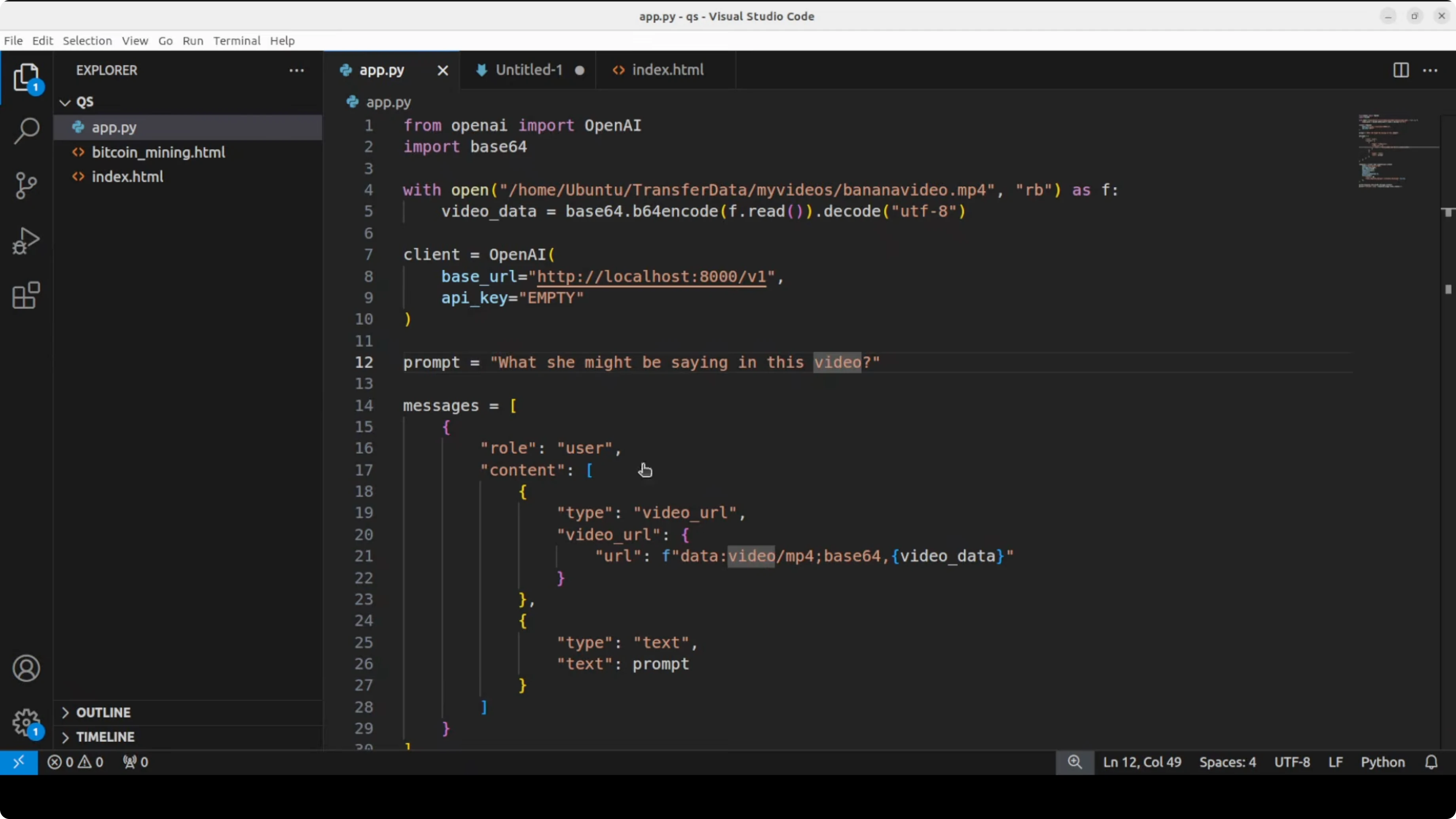 print(resp.choices[0].message.content)And here is a minimal Python example for a short video: