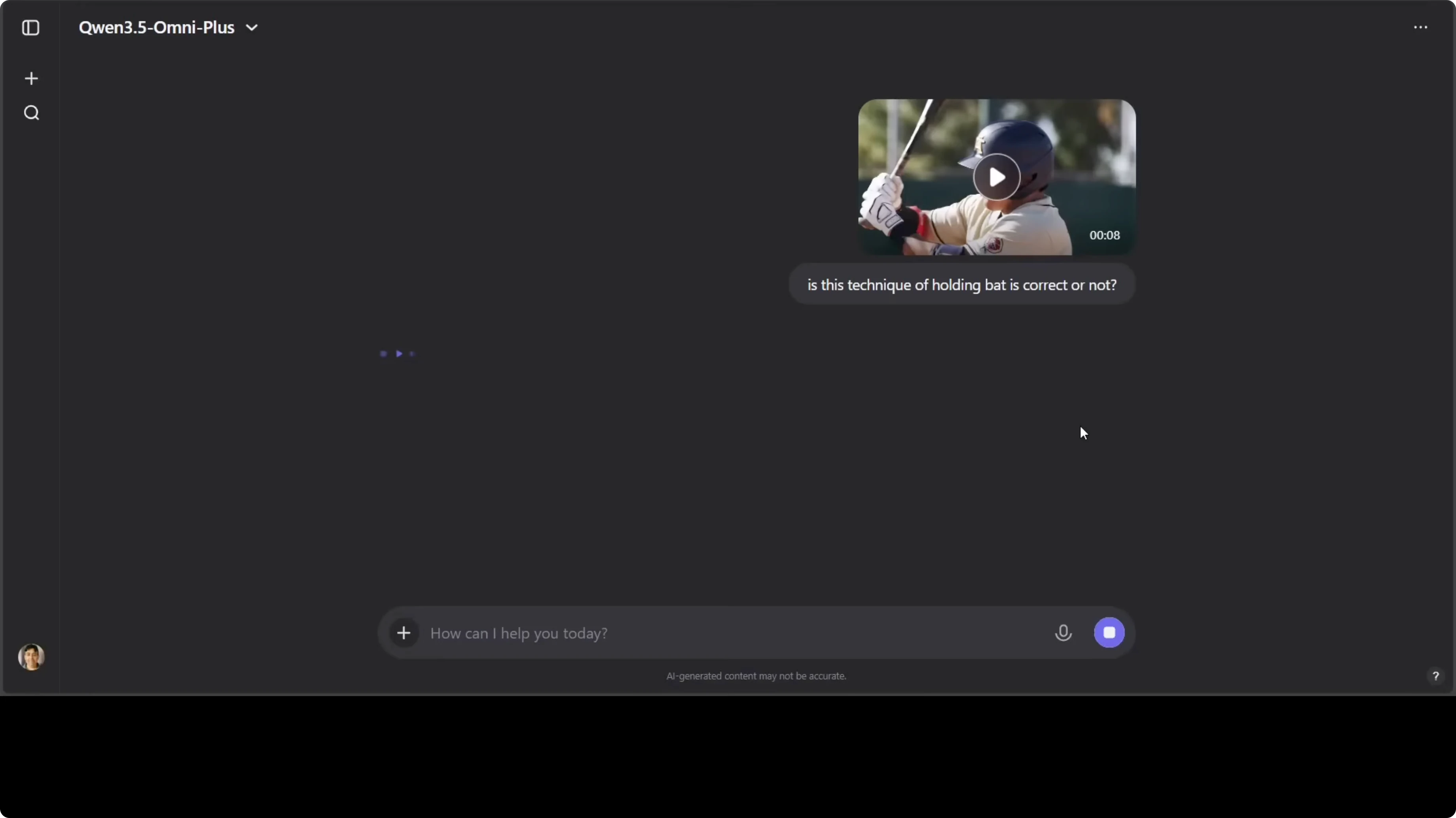 I also tested a clip of a batter holding a baseball bat to check if the grip technique was correct without naming the sport. The model identified it as baseball, described grip, stance, elbow position, and focus, and called it a technically sound approach to batting. The analysis reads like practical coaching notes.
